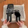 Chinelo de Strass Ovo de Pombo Feminino Verão 2023 Verão Novo Sandálias Slide Prateadas de Sola Reta