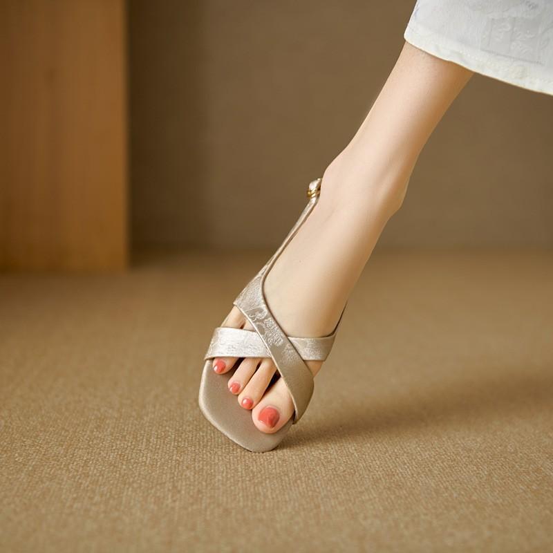 Sandálias Romanas de Tira Única Cruzada Femininas 2025 Novos Sapatos de Verão Femininos Novos Sapatos de Estilo Nacional Estilo Chinês Sapatos Rasteiros