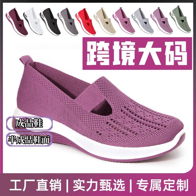 Sapatos Femininos de Malha Tamanho Grande Transfronteiriço Sapatos Slip-On de Comércio Exterior Bico Fino Sapatos de Mãe Semi-Acabados Sapatos Casuais Respiráveis