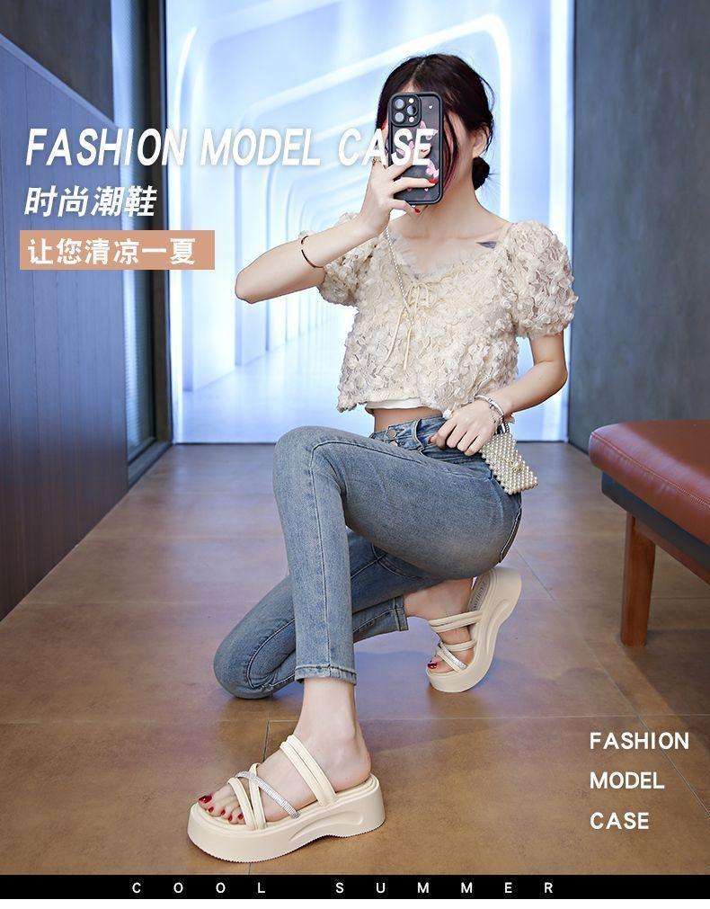 Sandálias Estilo Fada da Praia Duas Formas de Usar para Mulheres 2025 Verão Nova Moda Solado Grosso Uso Externo com Saia Chinelos Casuais