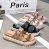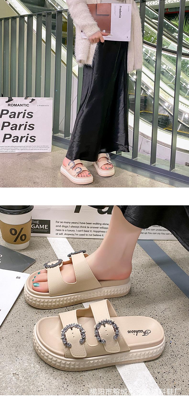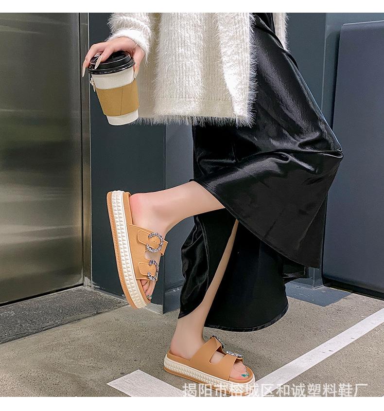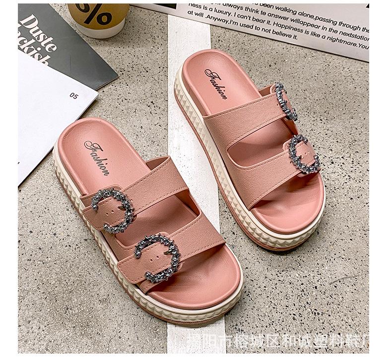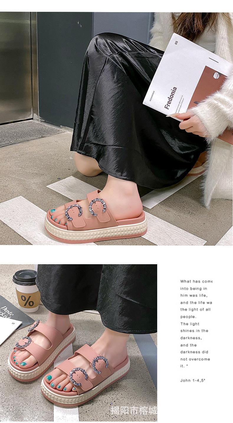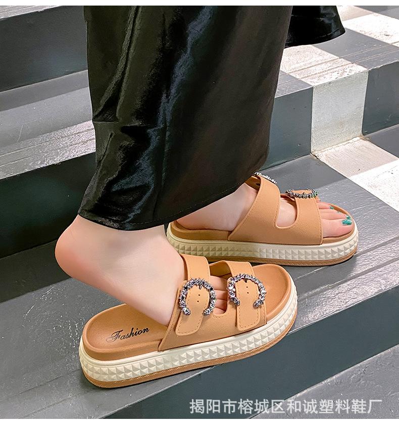 Chinelos Grossos de Verão Transfronteiriços Femininos para Uso Externo Novos Sandálias Rasteirinhas de Fivela da Moda Estilo Coreano Sandálias de Bico Redondo e Bico Aberto
