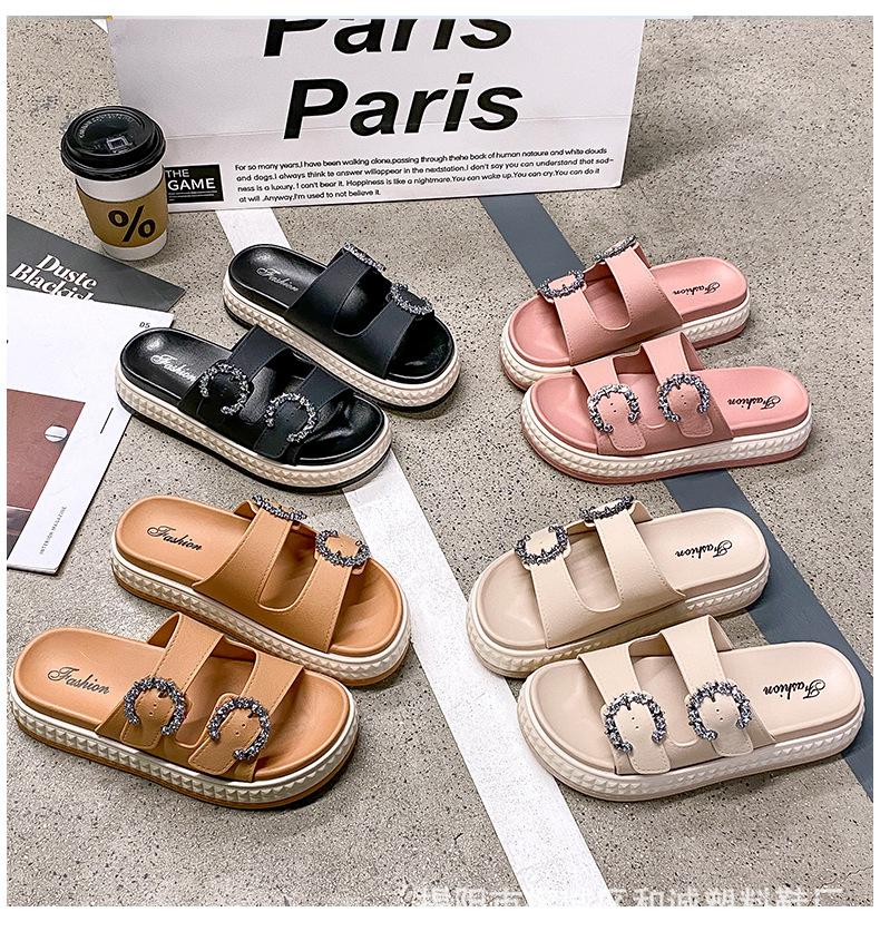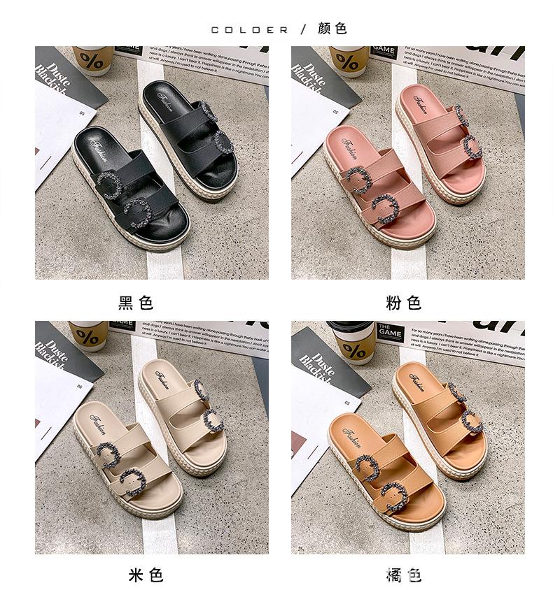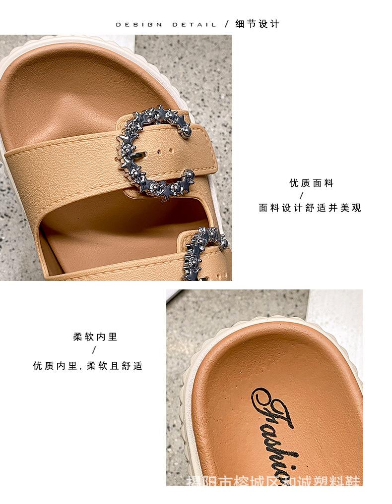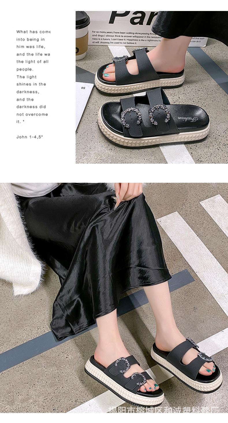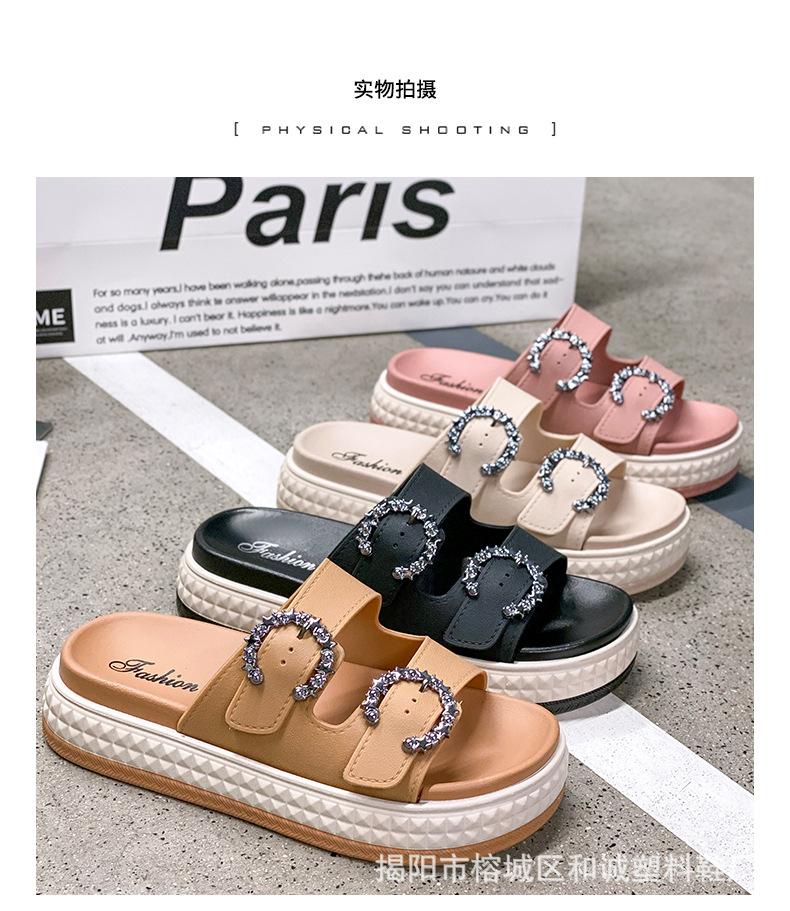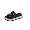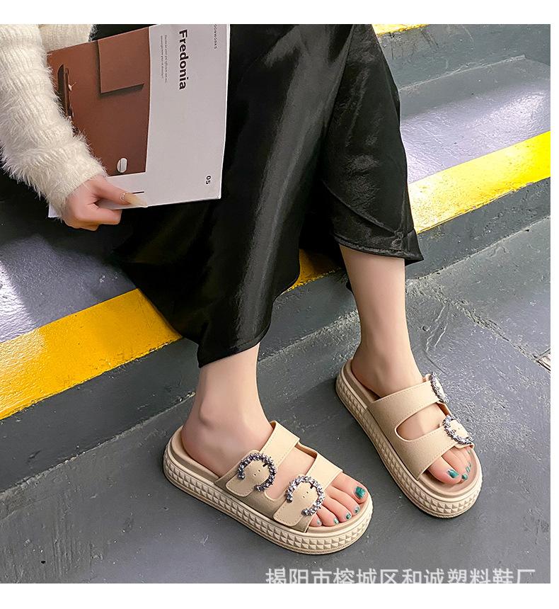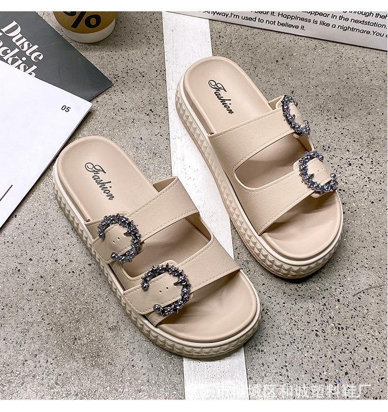 Chinelos Grossos de Verão Transfronteiriços Femininos para Uso Externo Novos Sandálias Rasteirinhas de Fivela da Moda Estilo Coreano Sandálias de Bico Redondo e Bico Aberto