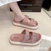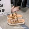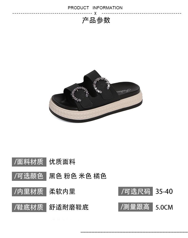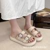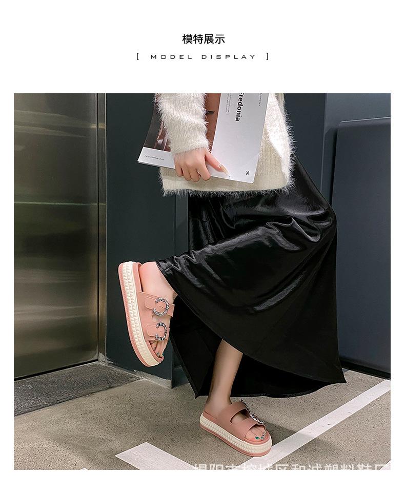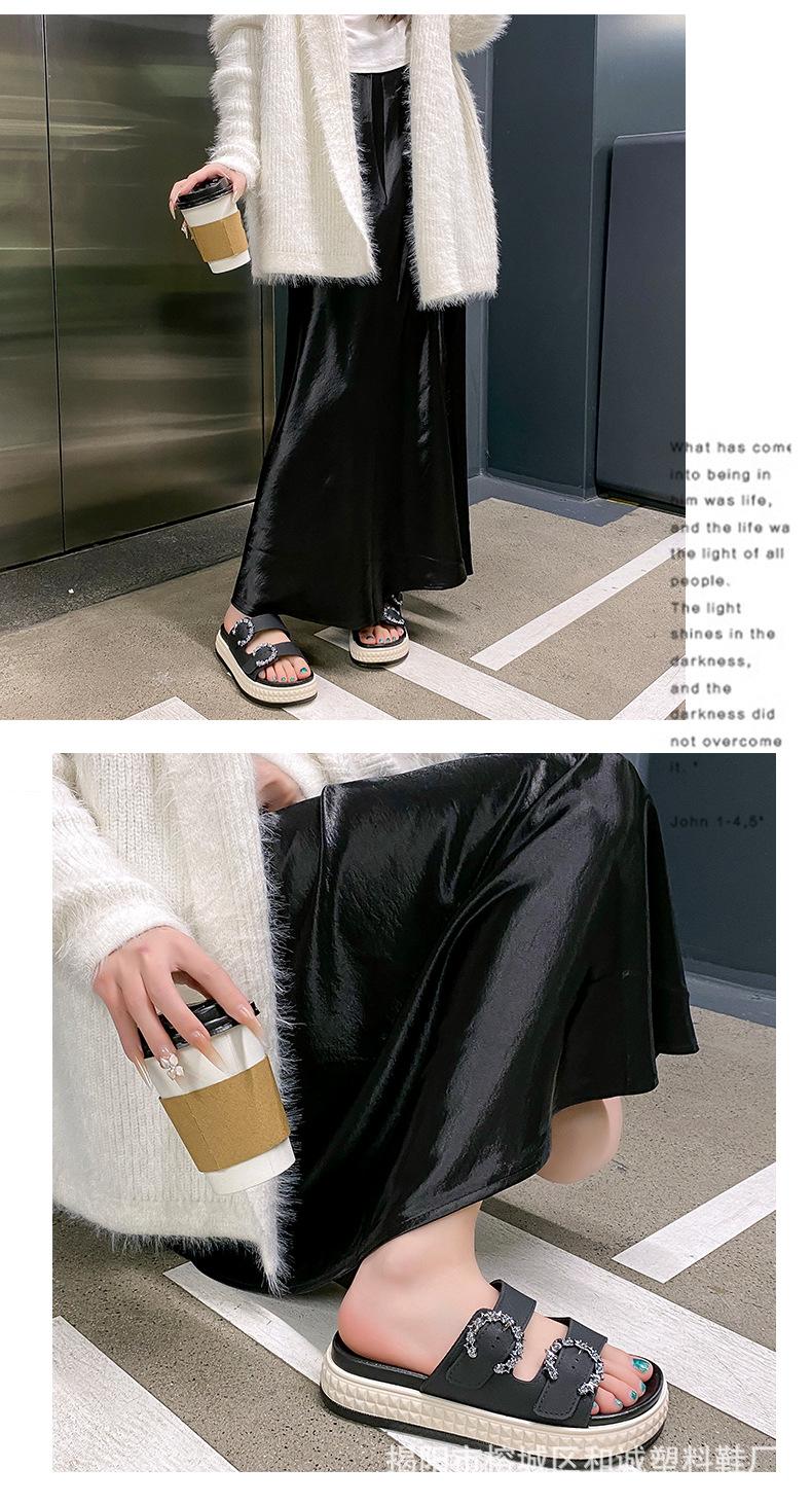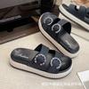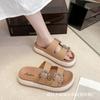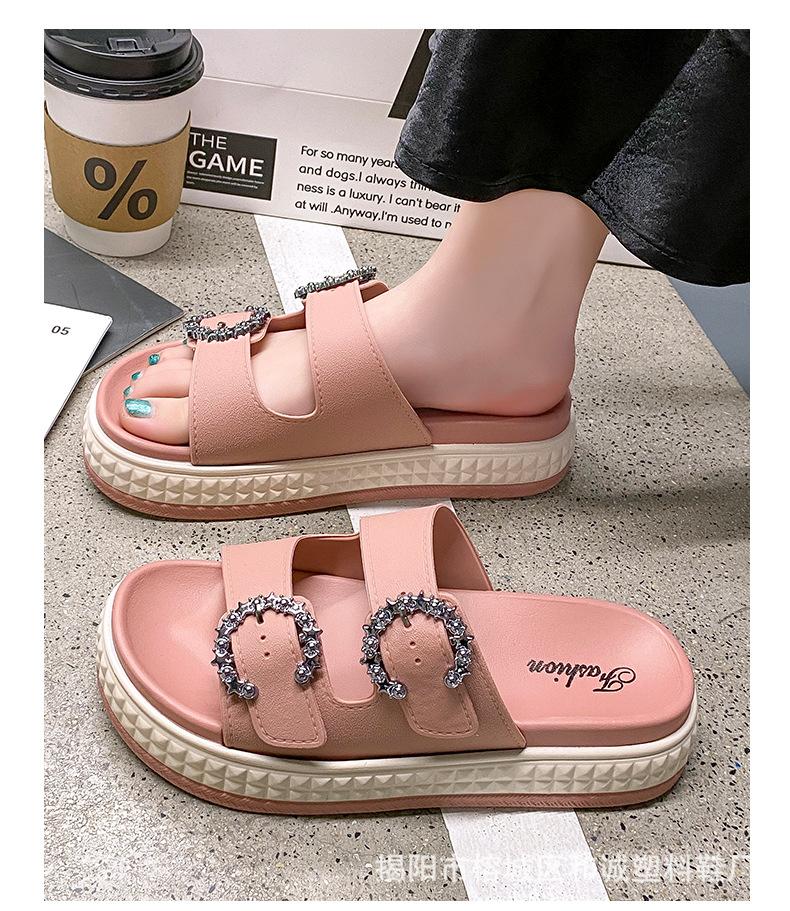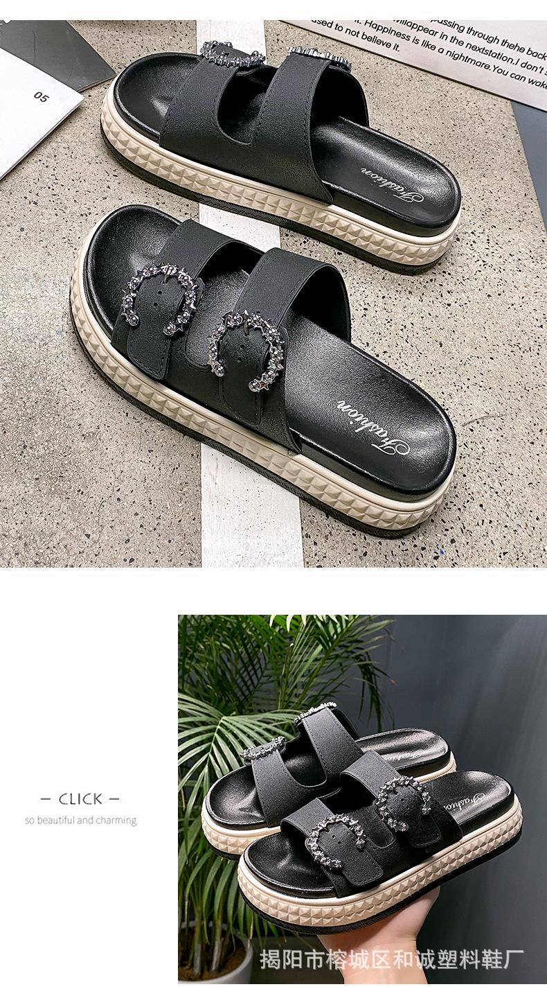 Chinelos Grossos de Verão Transfronteiriços Femininos para Uso Externo Novos Sandálias Rasteirinhas de Fivela da Moda Estilo Coreano Sandálias de Bico Redondo e Bico Aberto