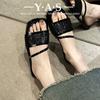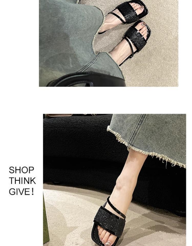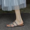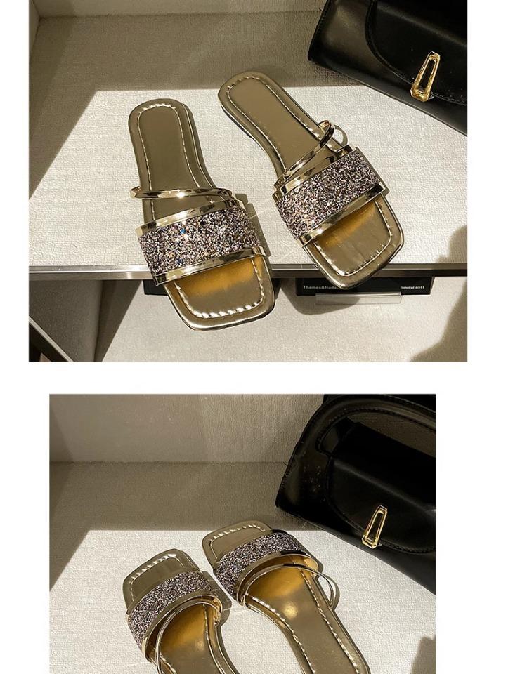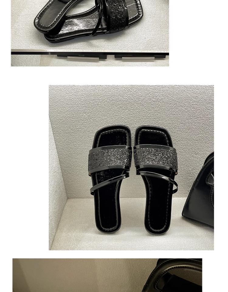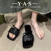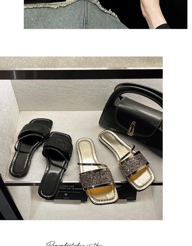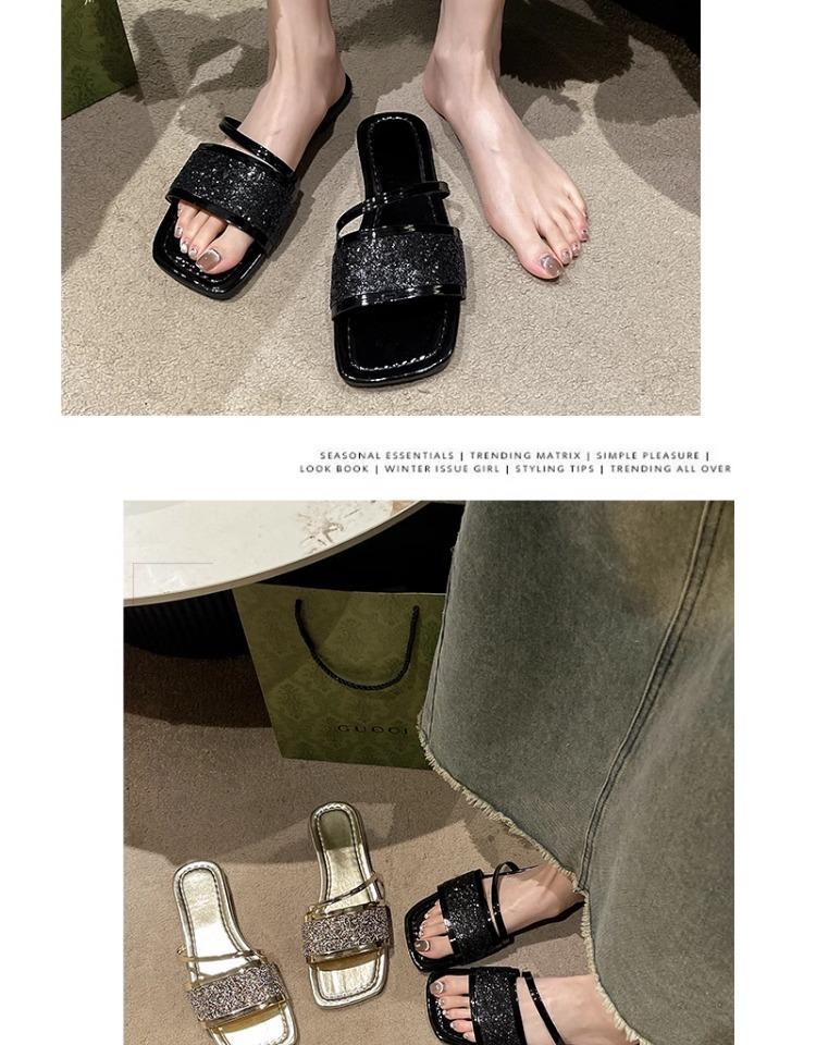 Sandálias Prateadas Novas 2024, Chinelos de Strass da Moda, Calçado de Verão Feminino para Uso Externo, Flats Bico Quadrado Elegantes