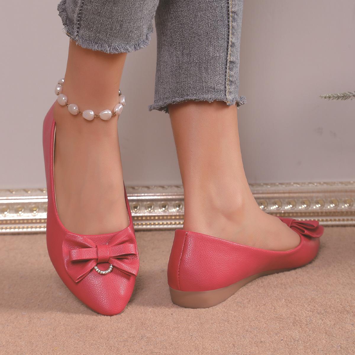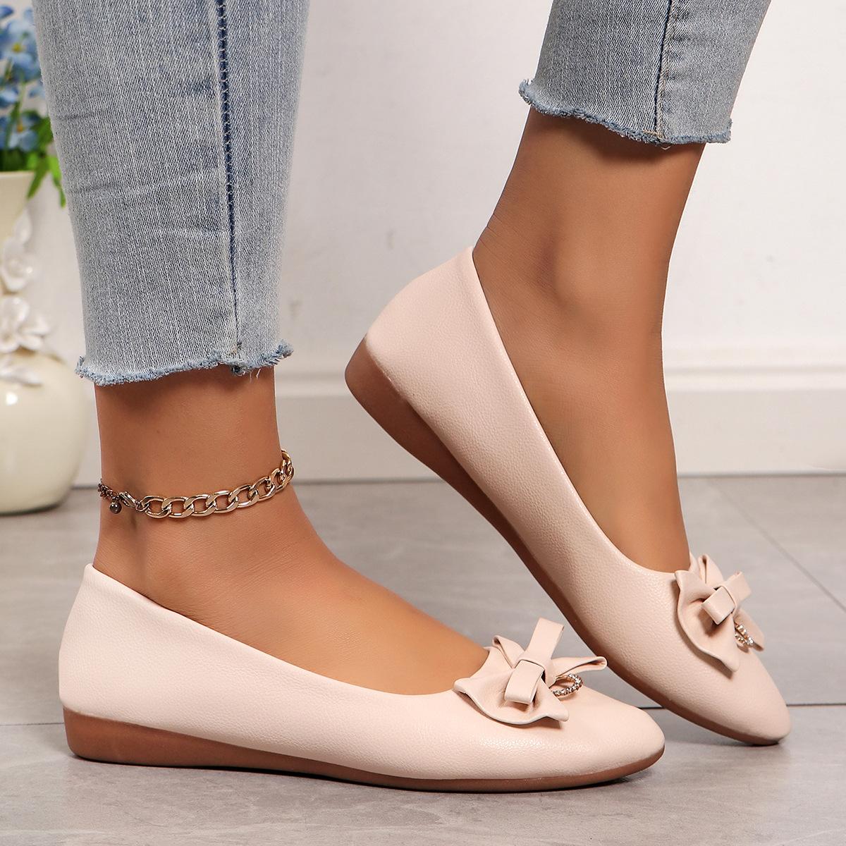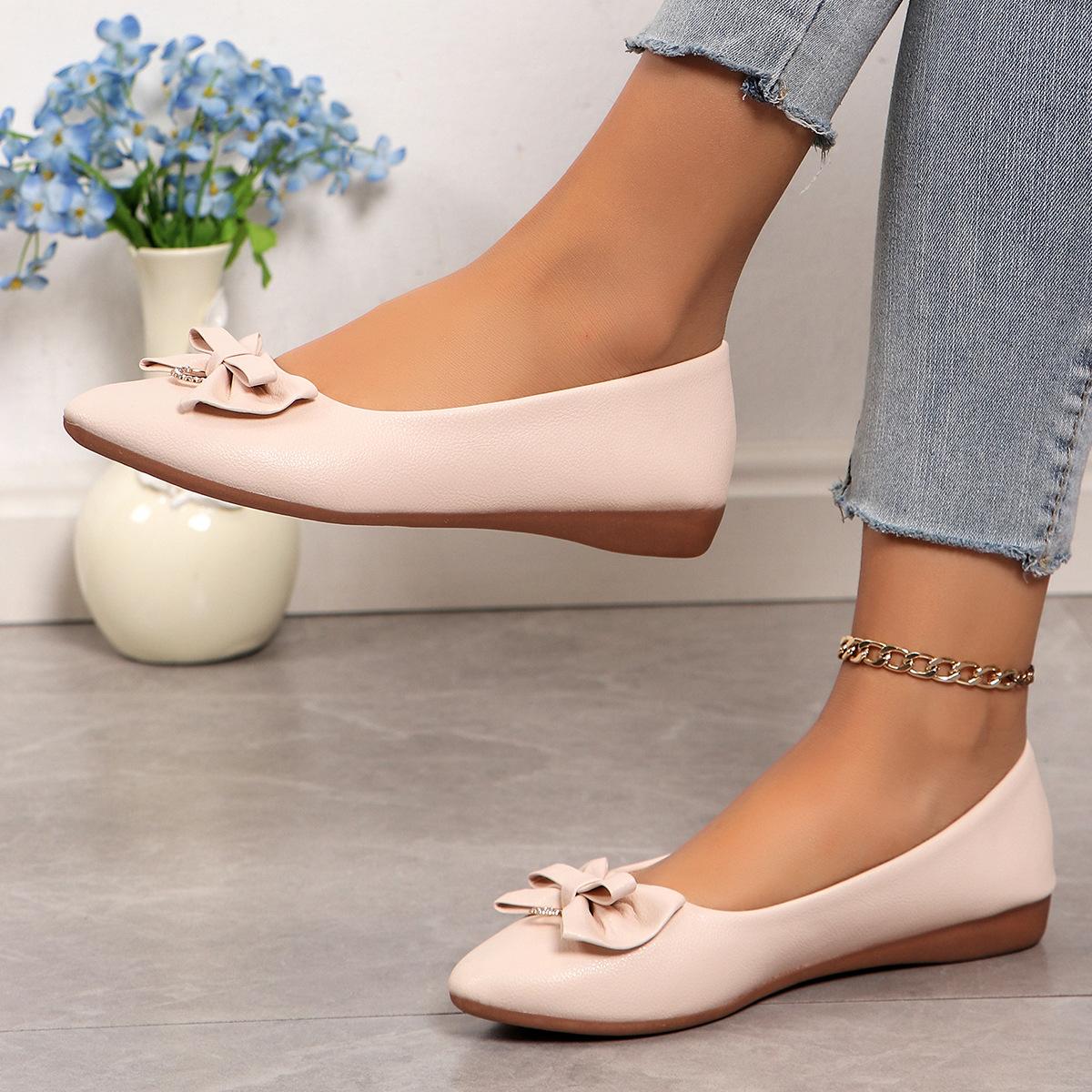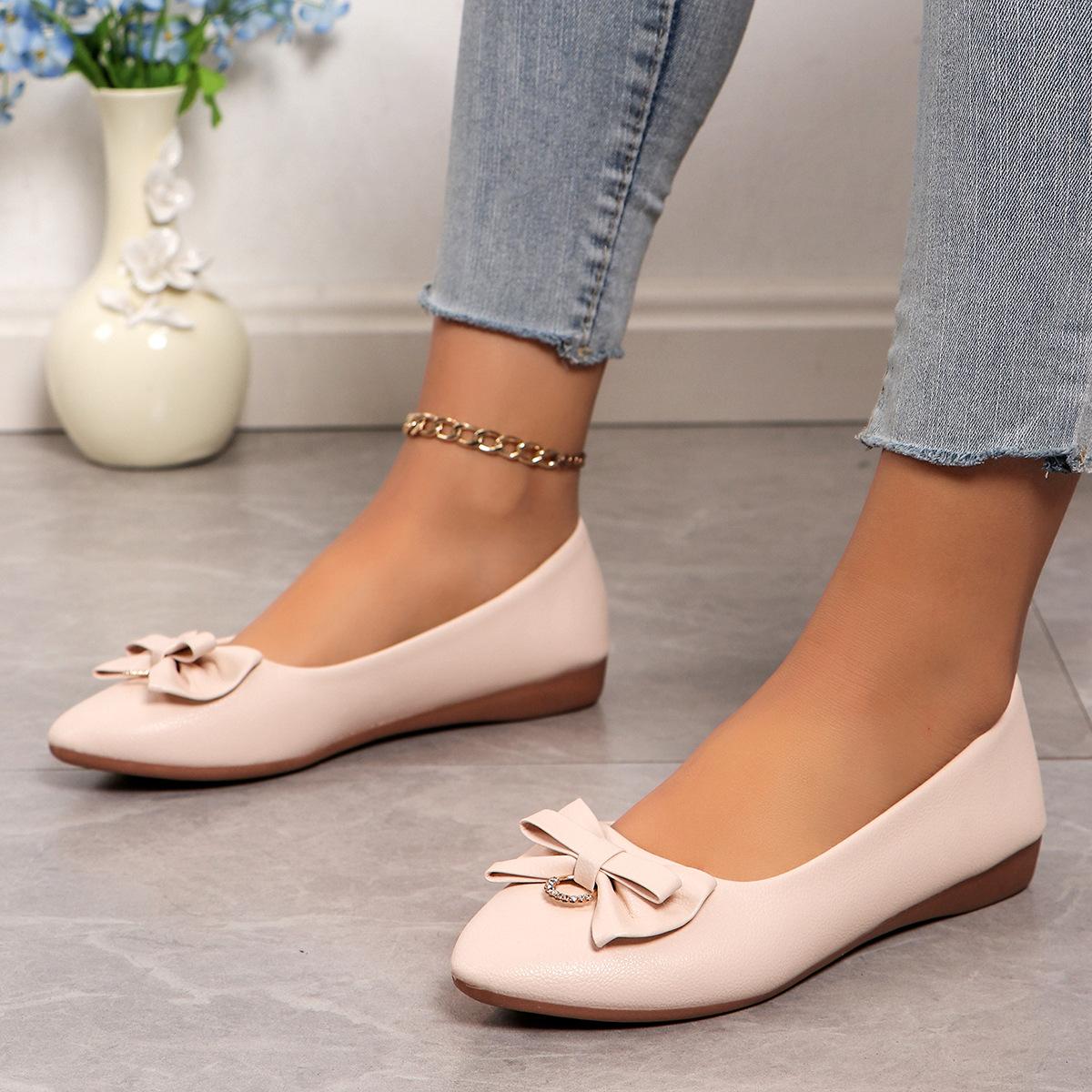 Moda Transfronteiriça Primavera 2025 Sapatilhas Slip-On de Bico Fino Moda Casual Tamanho Grande Sapatos Femininos Rasteirinhas com Laço para Mulheres
