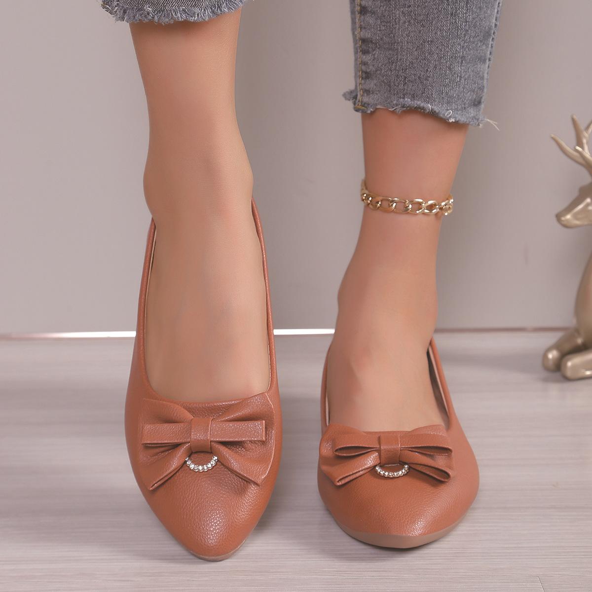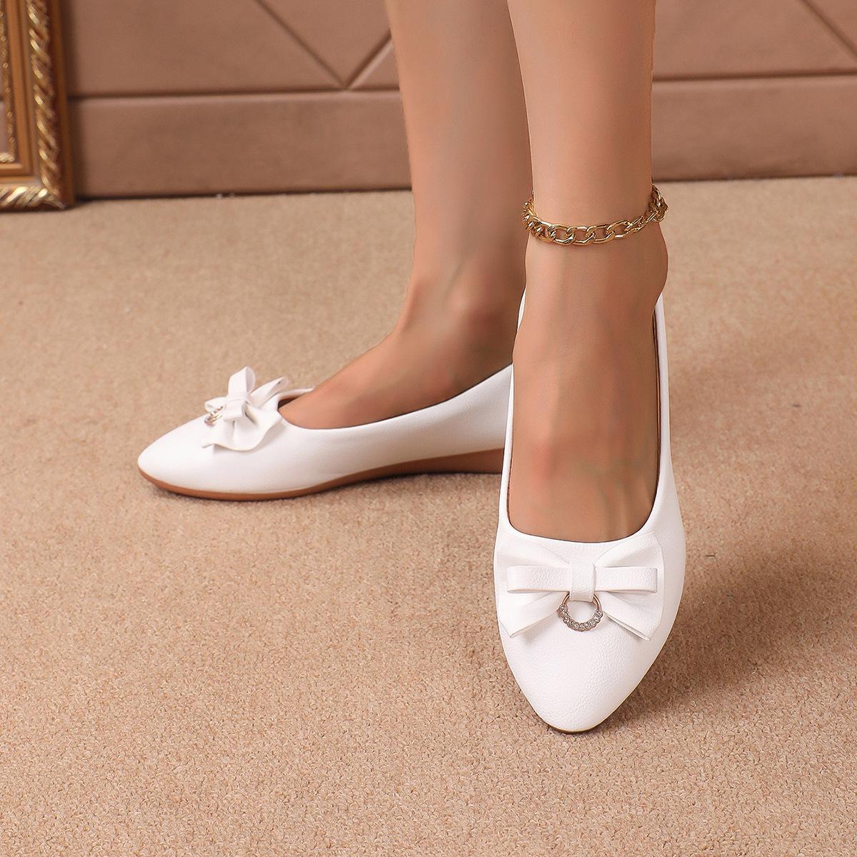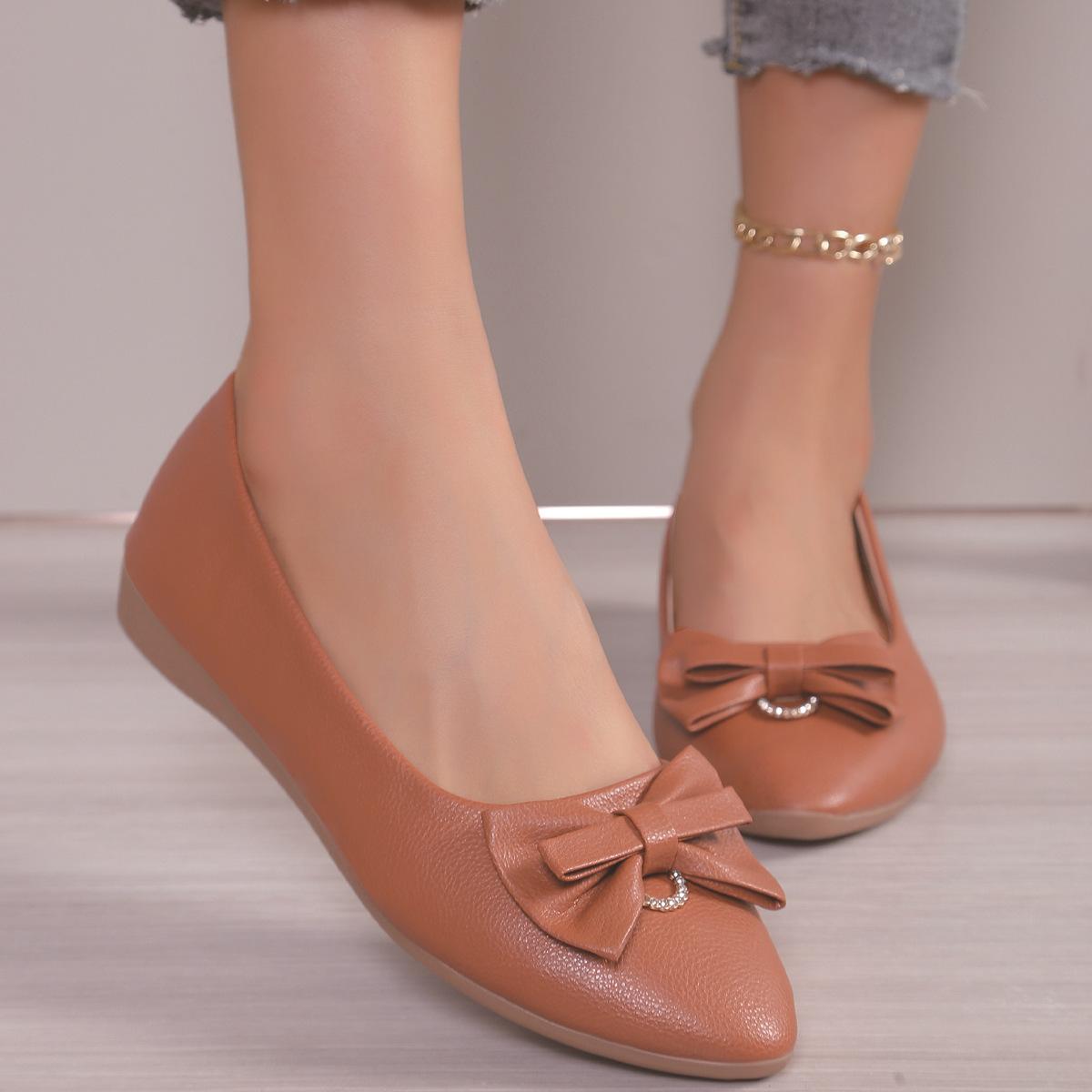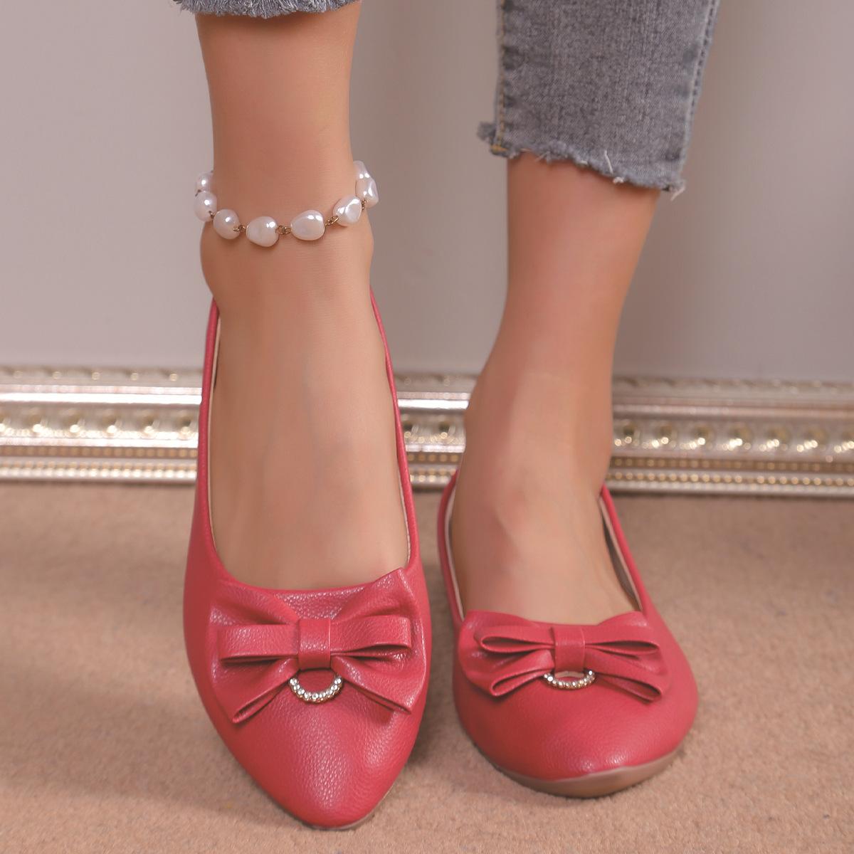Moda Transfronteiriça Primavera 2025 Sapatilhas Slip-On de Bico Fino Moda Casual Tamanho Grande Sapatos Femininos Rasteirinhas com Laço para Mulheres