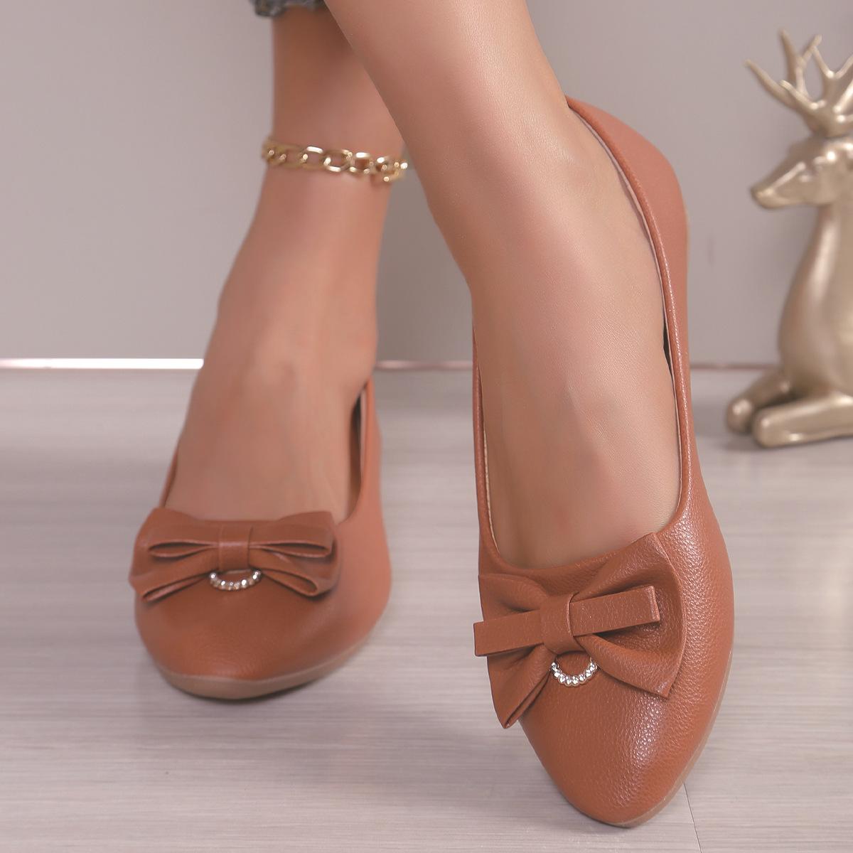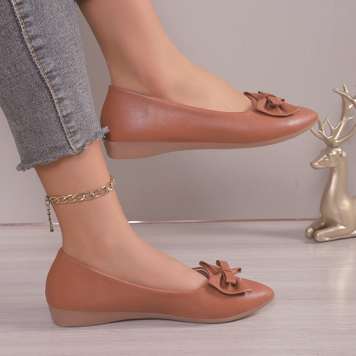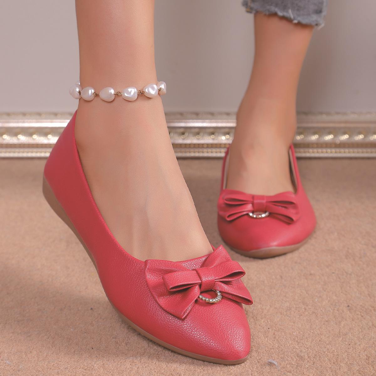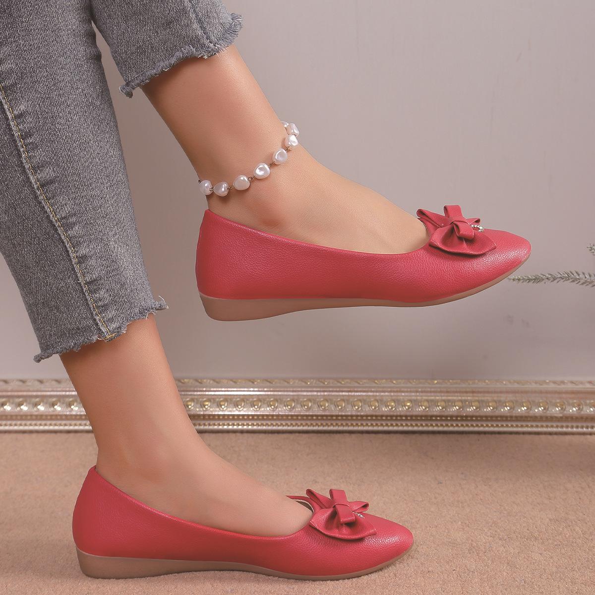 Moda Transfronteiriça Primavera 2025 Sapatilhas Slip-On de Bico Fino Moda Casual Tamanho Grande Sapatos Femininos Rasteirinhas com Laço para Mulheres