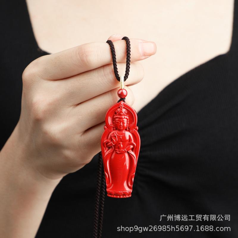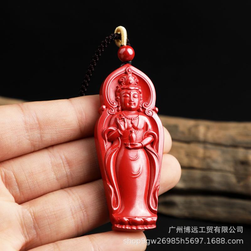 Atacado Cinábrio Alto Conteúdo Areia Imperial Pingente Guanyin Bodhisattva Colar Pendente Homens e Mulheres Ano do Zodíaco 2025 Pingente