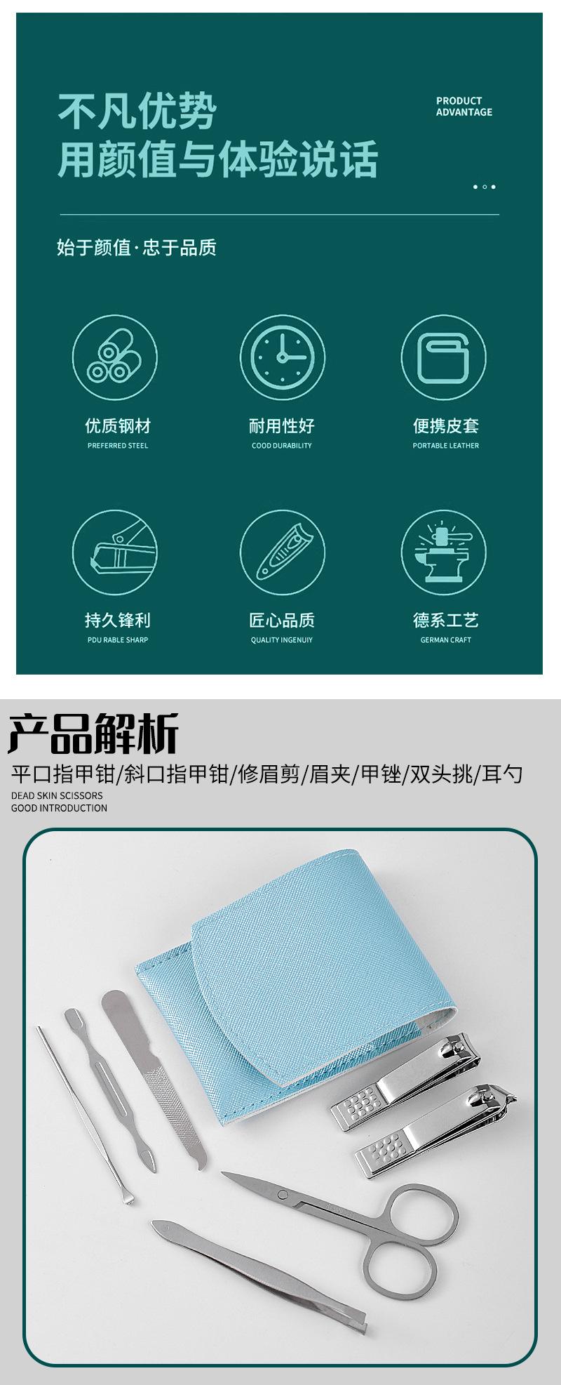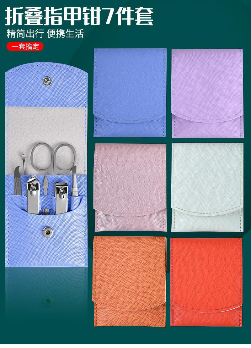 Atacado Conjunto de 7 peças de cortadores de unha dobráveis em bolsa ferramentas de beleza para manicure cortadores de unha cortadores de unha podem ser personalizados LOGO