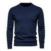 Suéter masculino de inverno quente, pulôver de espessura, gola redonda, cor sólida, slim fit, qualidade, suéter masculino, puxador
