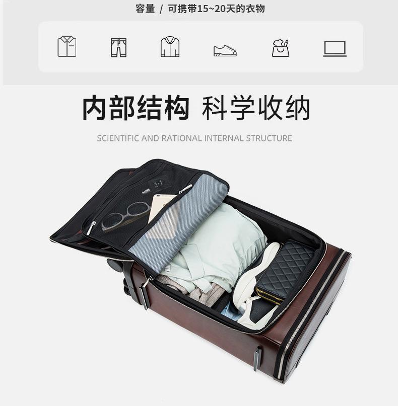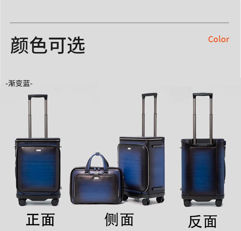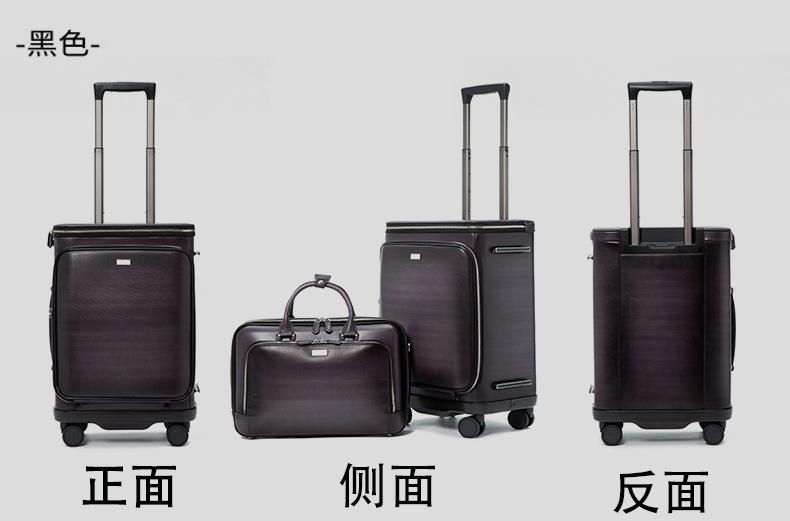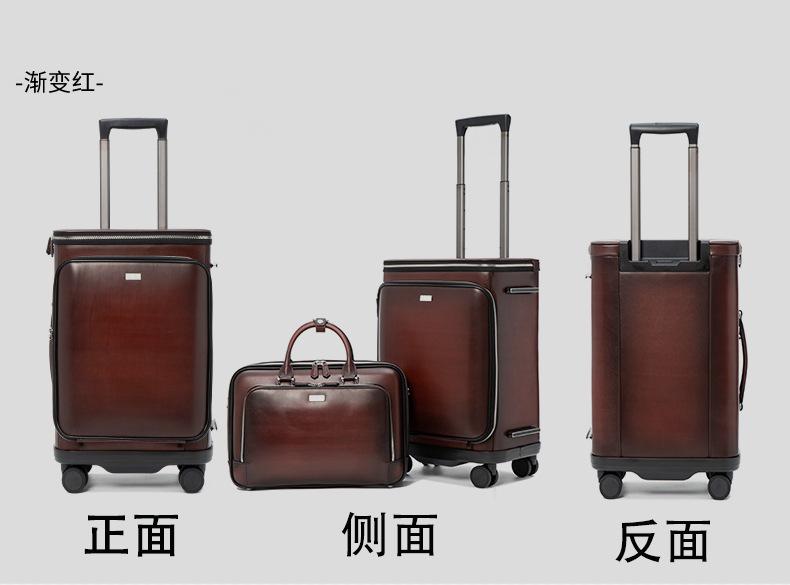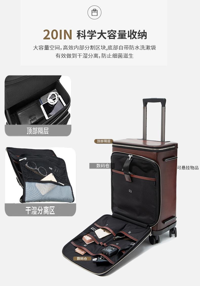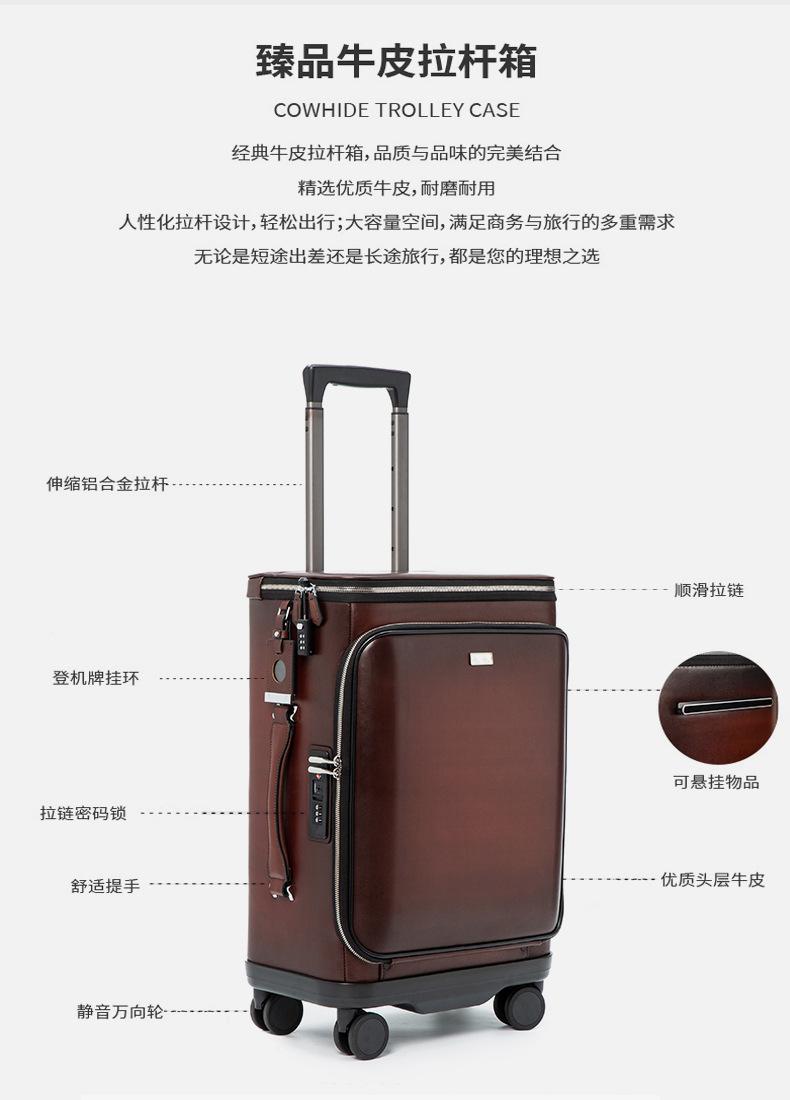 Mala de Viagem Transfronteiriça Nova de Couro Genuíno Masculina Abertura Frontal Multifuncional 20 polegadas Mala de Viagem com Rodinhas Viagem de Negócios