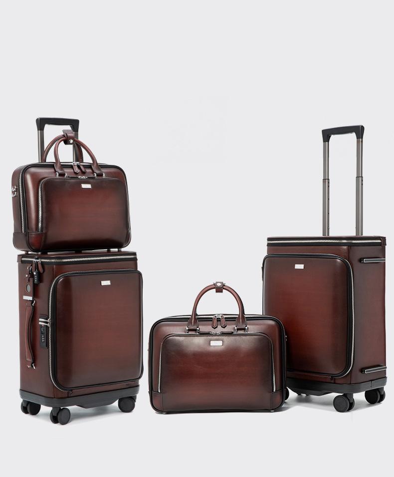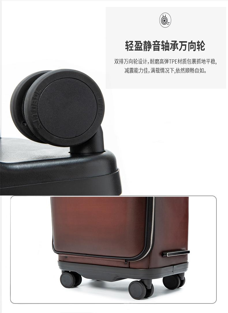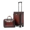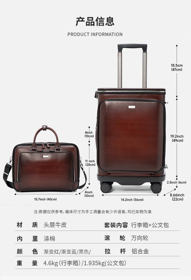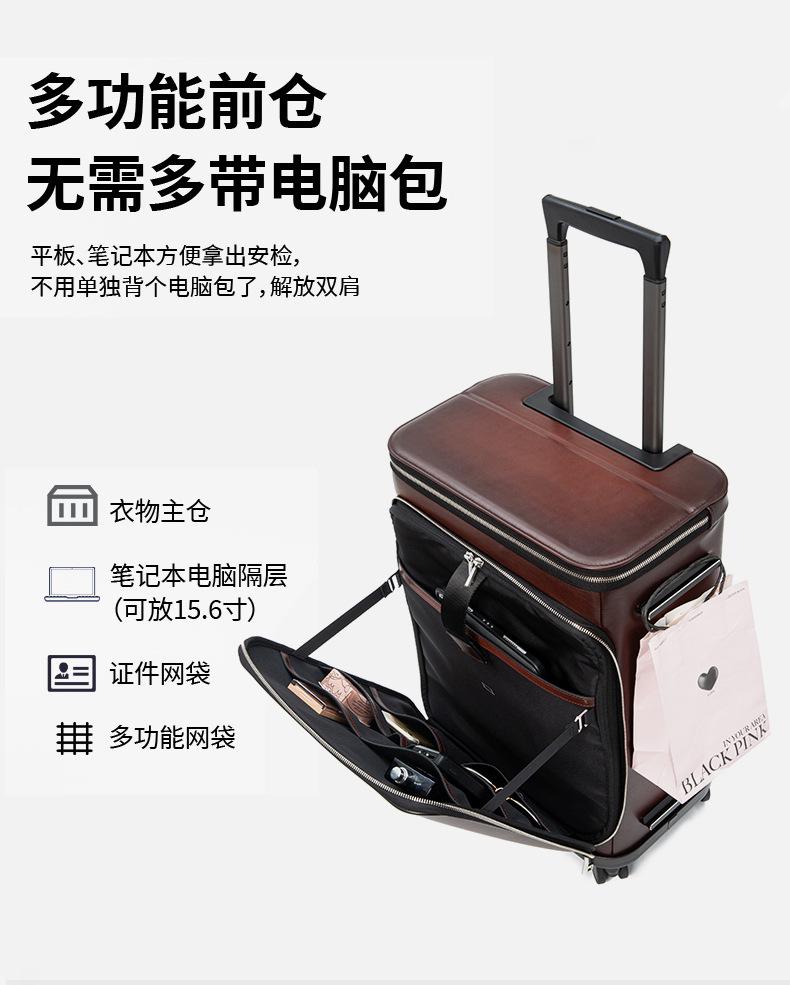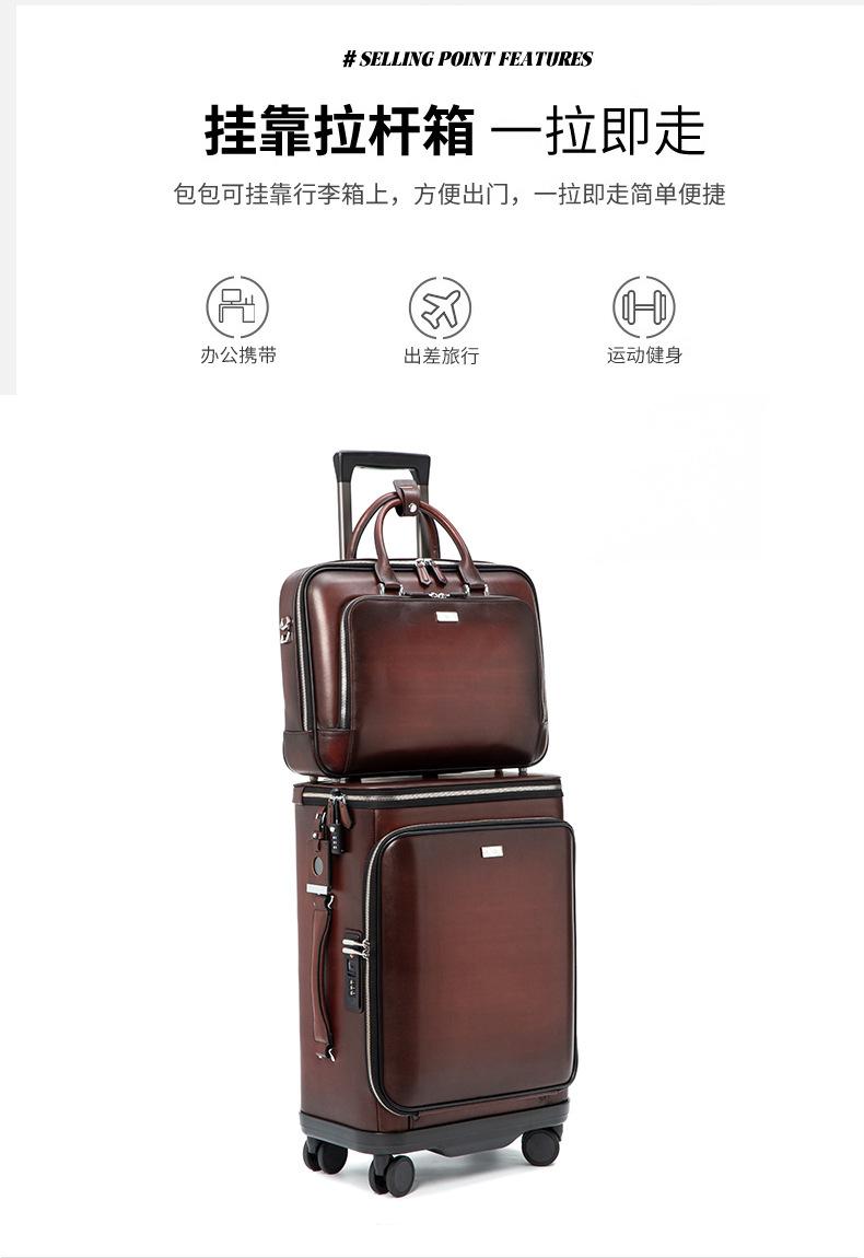 Mala de Viagem Transfronteiriça Nova de Couro Genuíno Masculina Abertura Frontal Multifuncional 20 polegadas Mala de Viagem com Rodinhas Viagem de Negócios