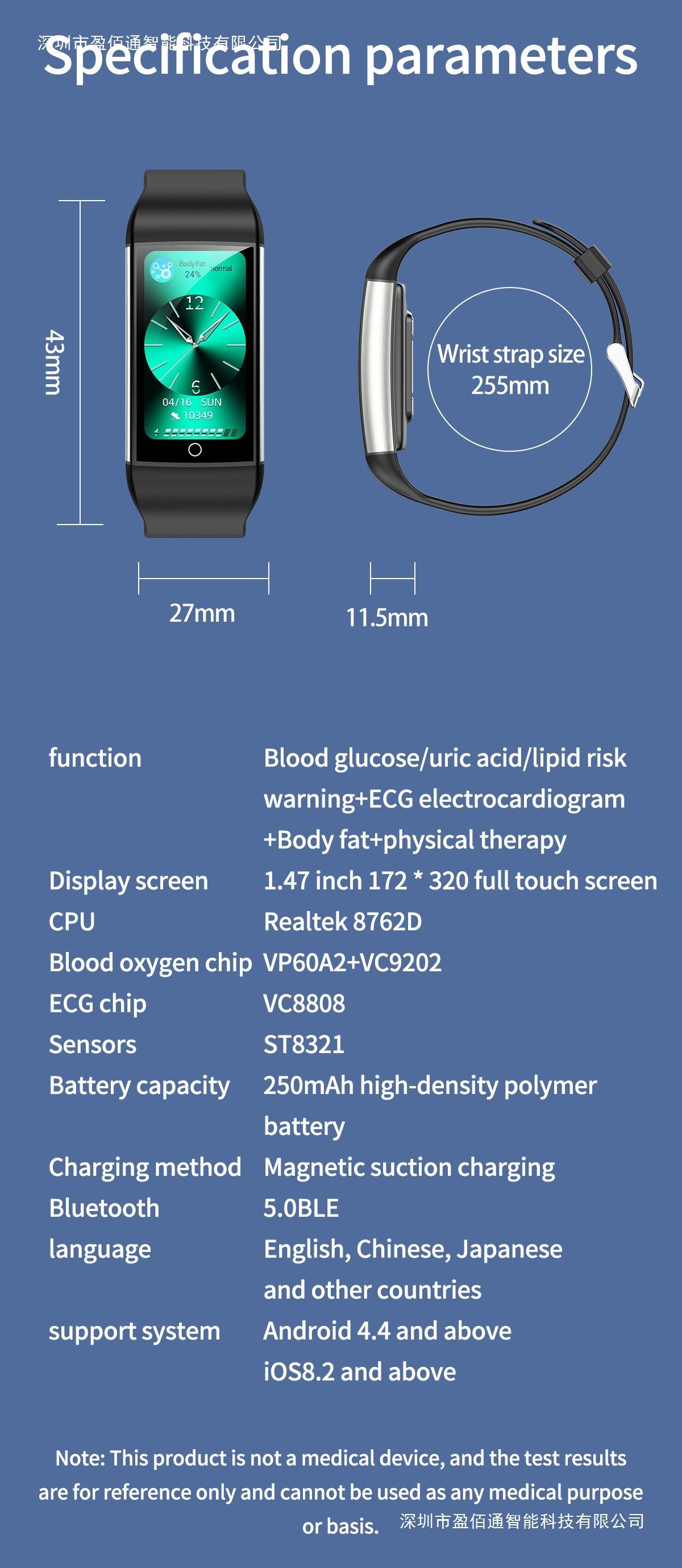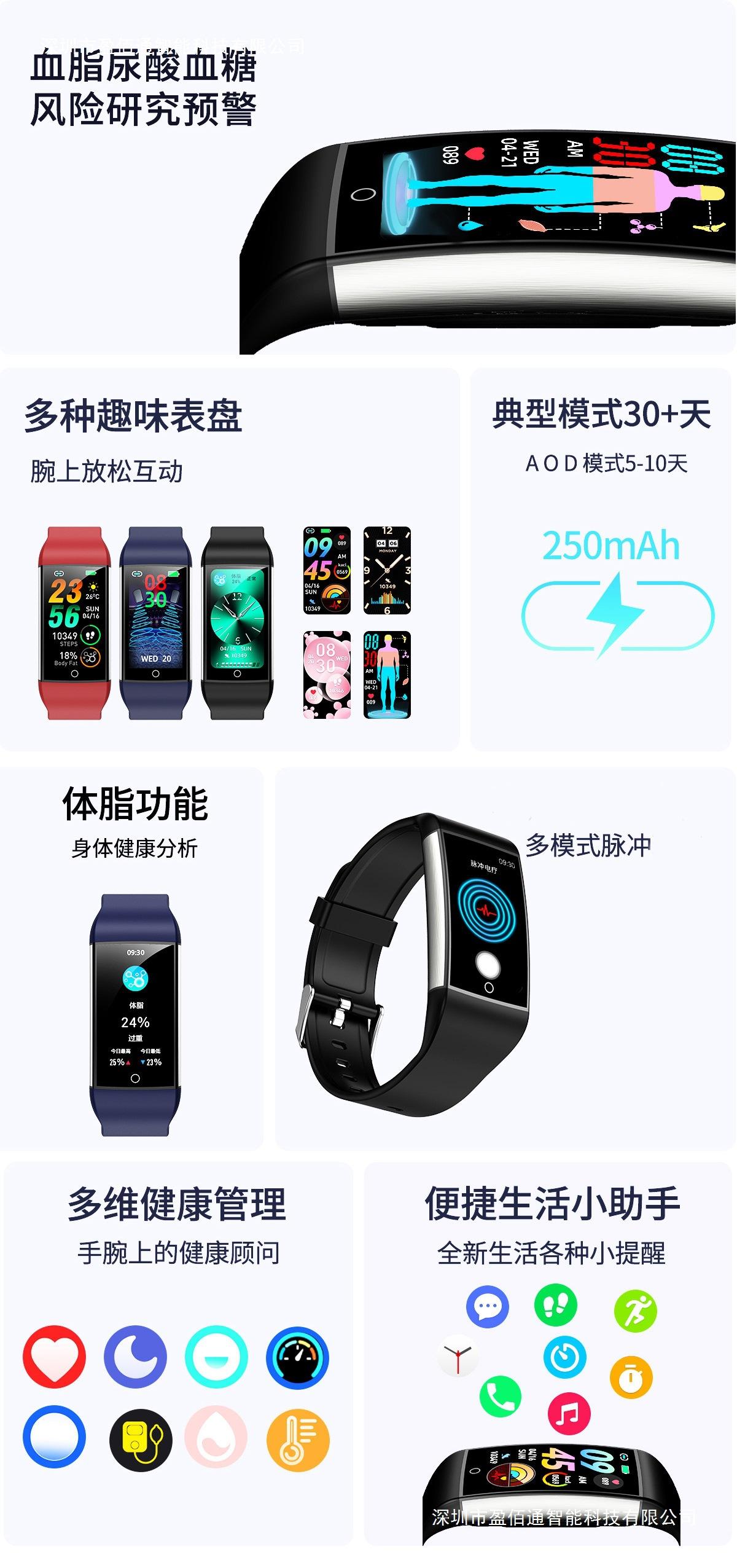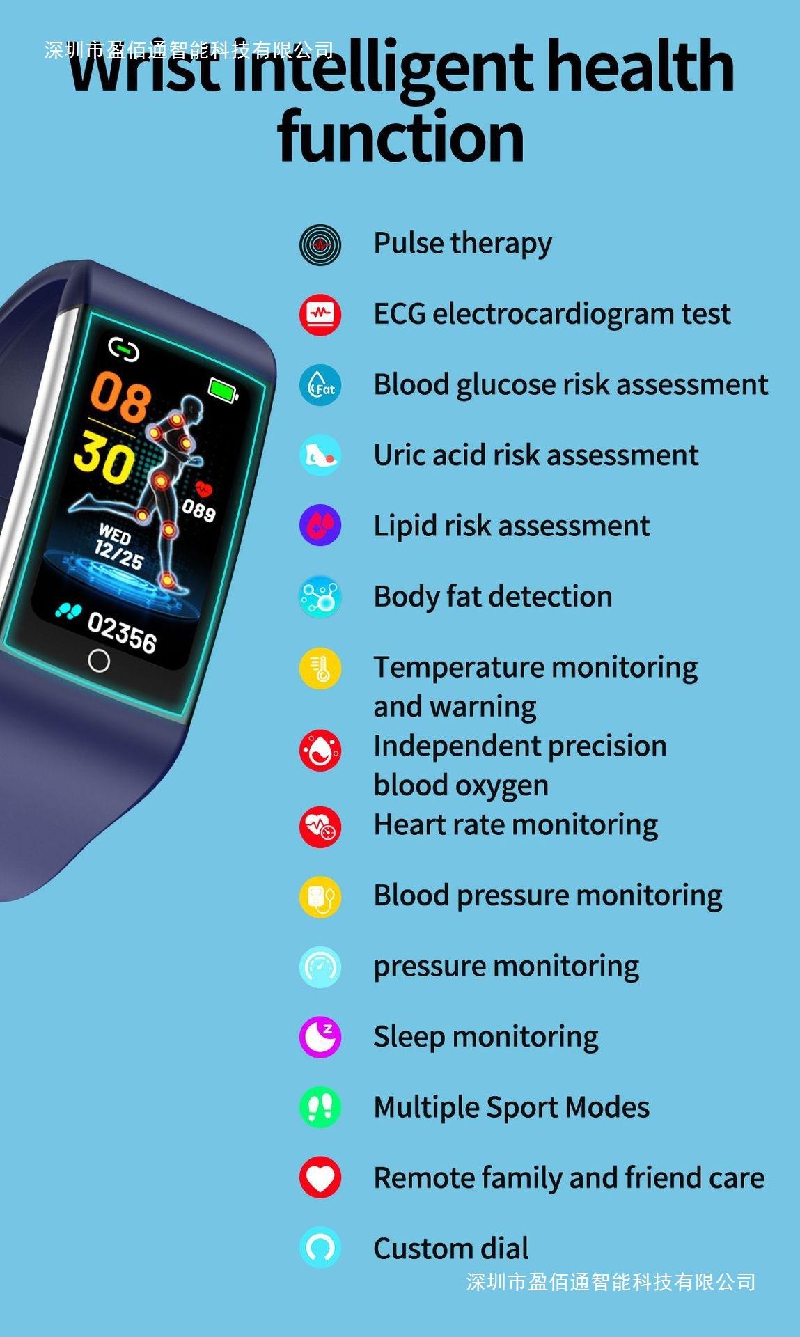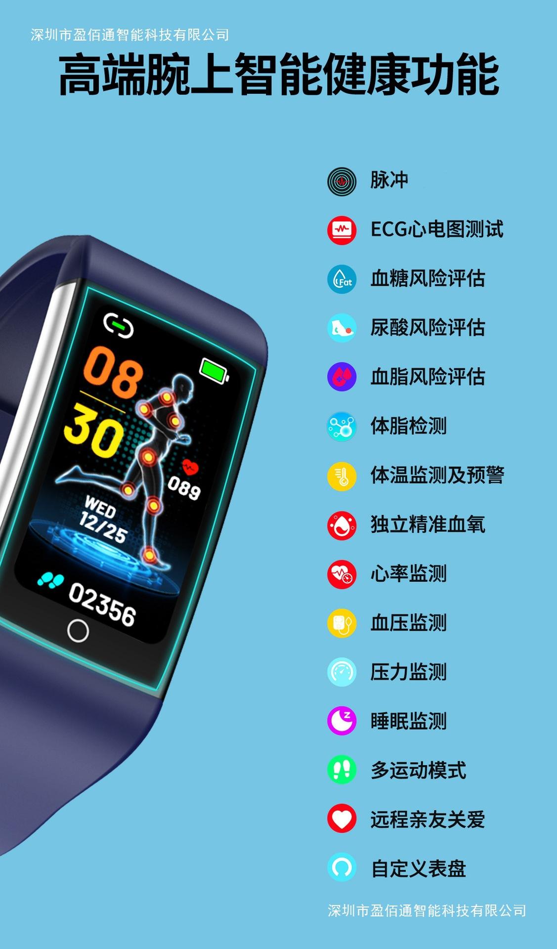 Nova pulseira inteligente TK76 frequência cardíaca gordura corporal lipídio sanguíneo eletrocardiograma monitoramento da saúde do sono pedômetro pulseira de exercícios