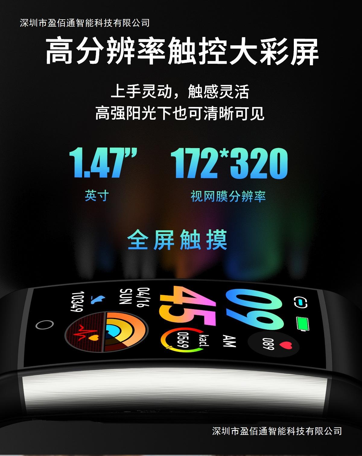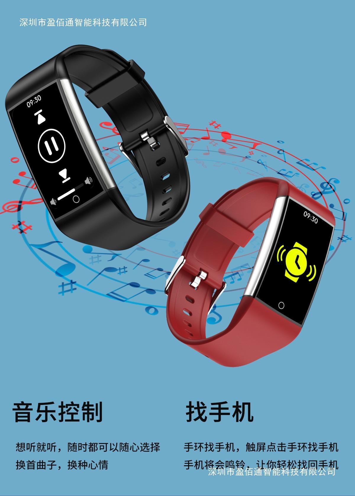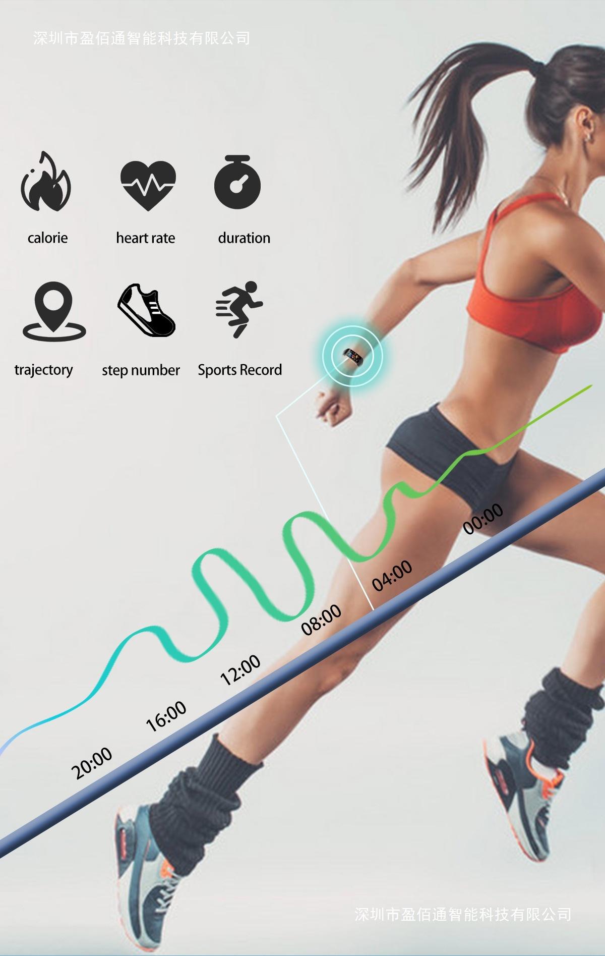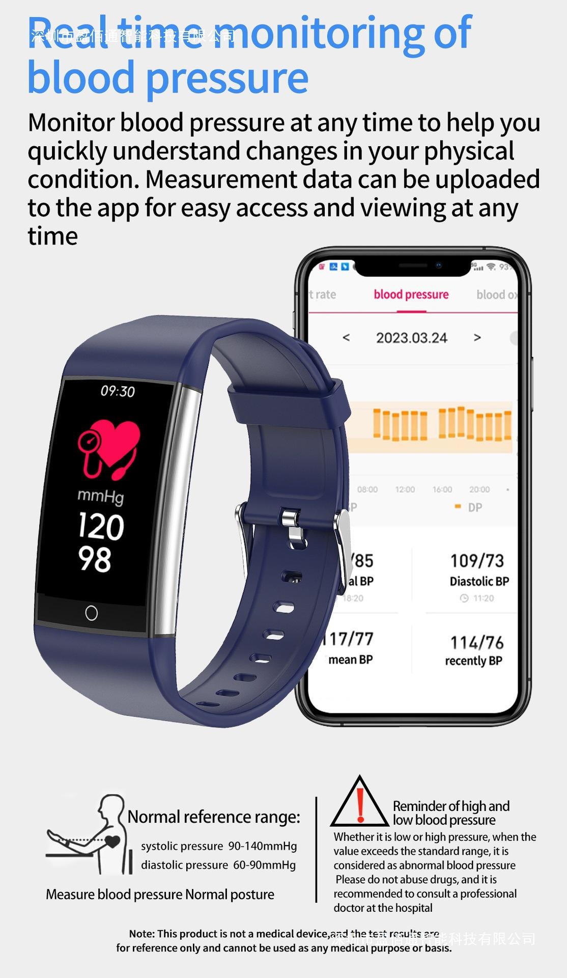Step counting, Heart rate monitoring, Blood pressure measurement, Smart reminder, Remote control selfie, Sleep...