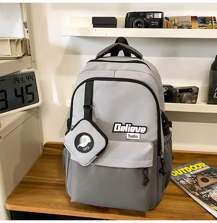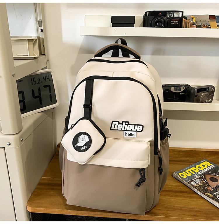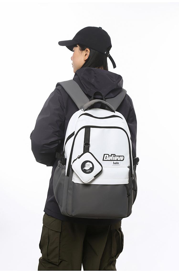 Bolsa Casual Simples para Deslocamento com Compartimento para Computador, Moda Tendência Contraste de Cores, Leve, Bolsa de Viagem, Mochila Estudantil de Grande Capacidade