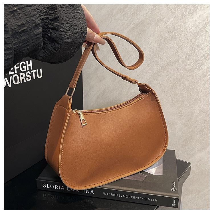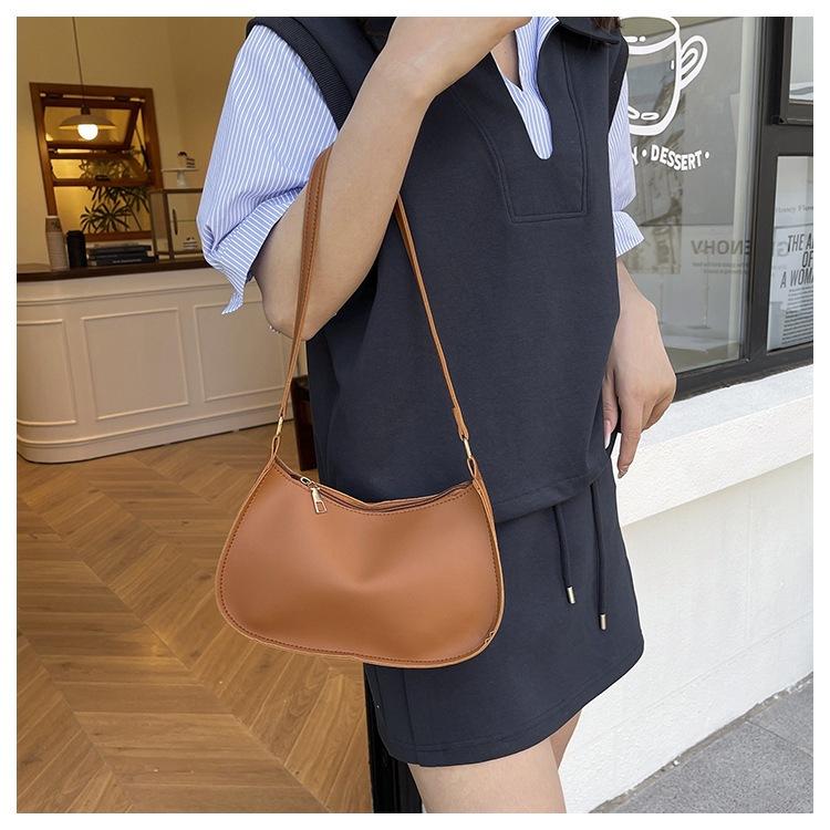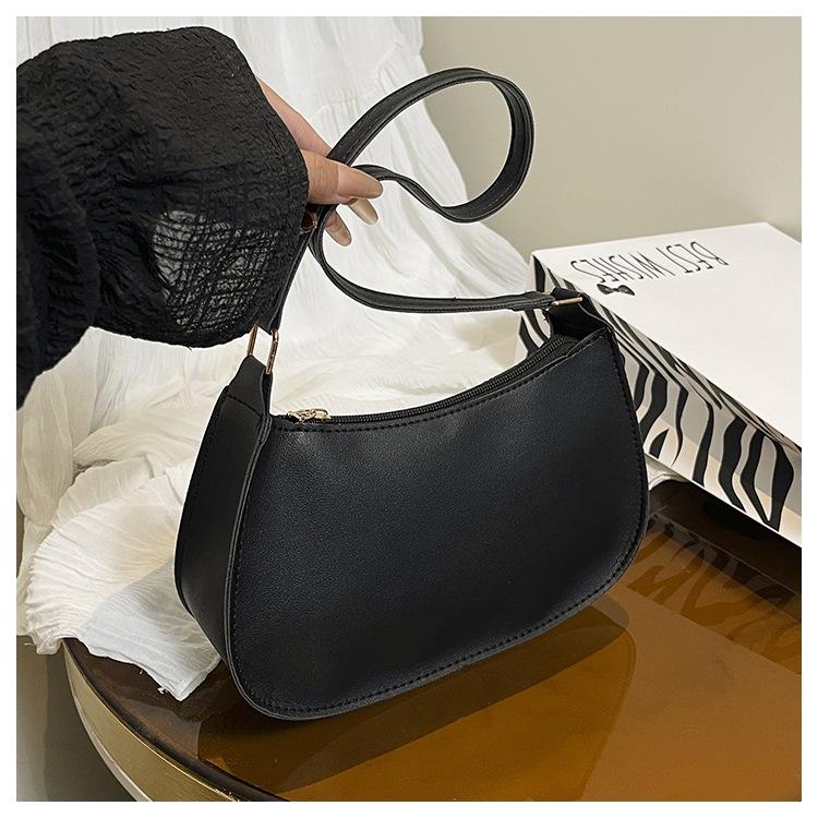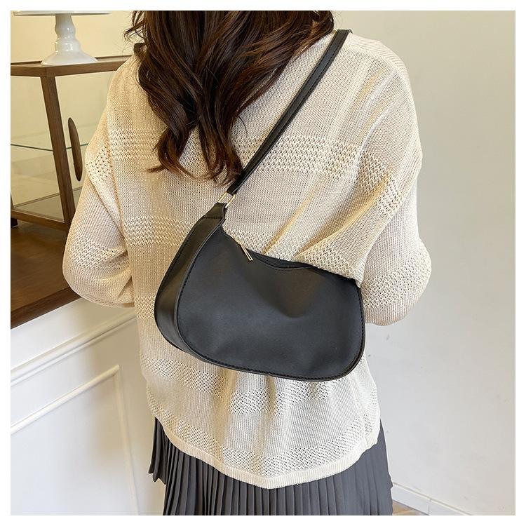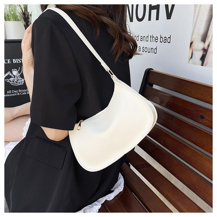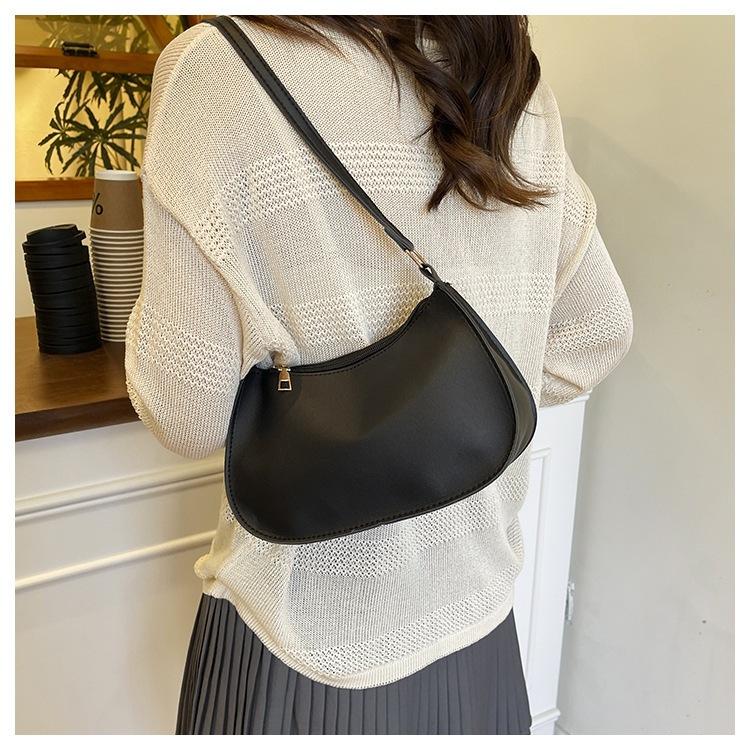 Moda Estilo Hong Kong Estilo Coreano Bolsa de Ombro Feminina 2025 Verão Novo Cor Pura Estilo Satchel Commuter Simples Bolsa Meia-Lua