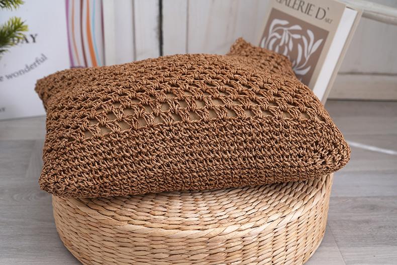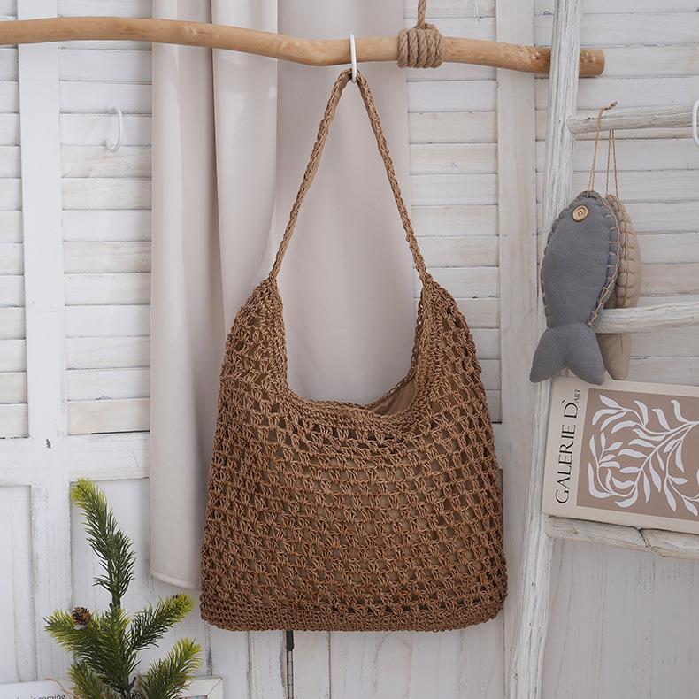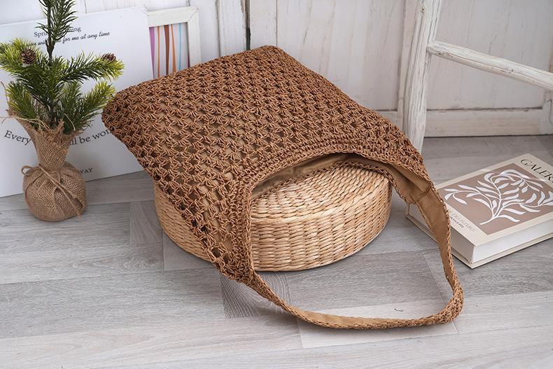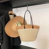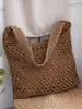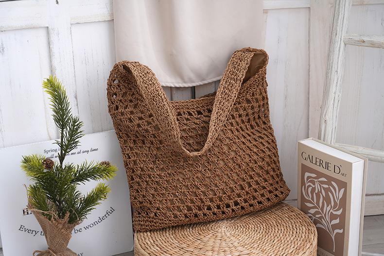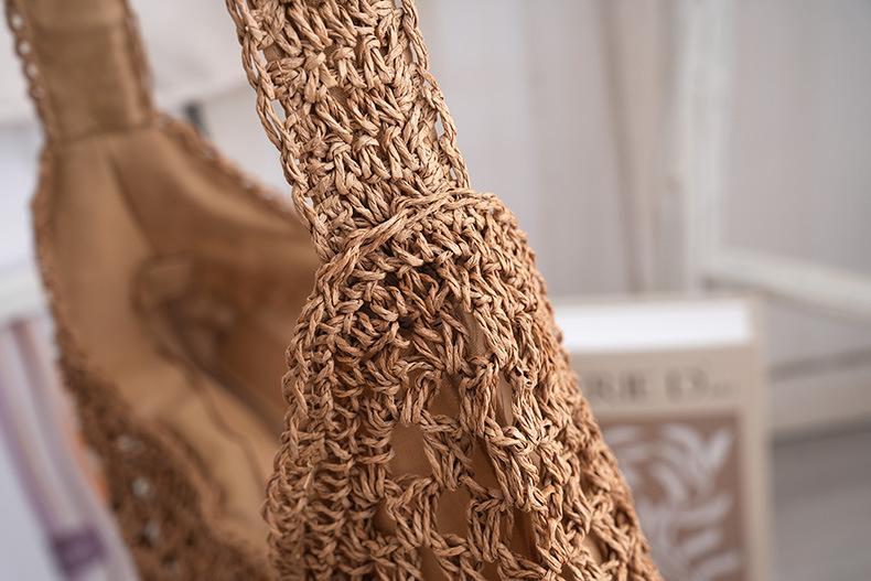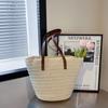Bolsa de Palha Feminina Estilo Coreano Ins Bolsa de Ombro Tecida à Mão Nova Bolsa Tote de Grande Capacidade Bolsa Feminina de Praia à Beira-Mar
