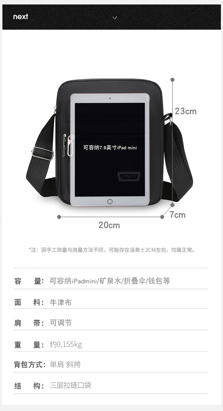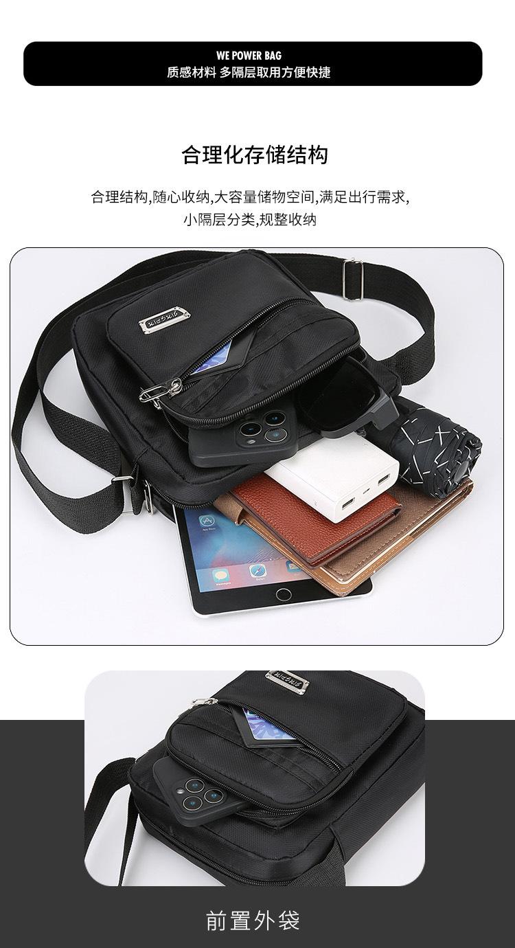 Bolsa Transversal de Nylon com Vários Compartimentos, Bolsa de Ombro Fashion e Casual de Grande Capacidade, Bolsa Masculina para Trabalho, Transfronteiriça