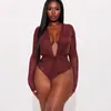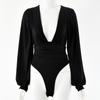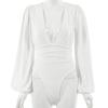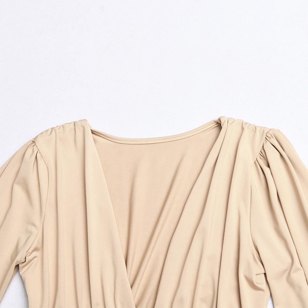 2025 Moda Exportação Europeia e Americana Tops Sexy Femininos Manga Longa Decote V Profundo Cintura Plissada Elegante Macacão para Mulheres
