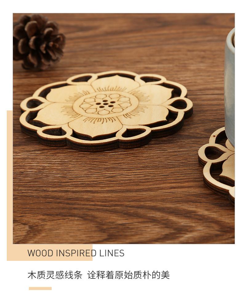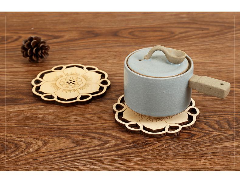 Descanso de Chá de Madeira Lótus Casa Criativa Descanso de Copo de Madeira Isolado do Calor Bandeja Escultura Vazada Descanso de Copo de Café Criativo
