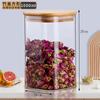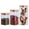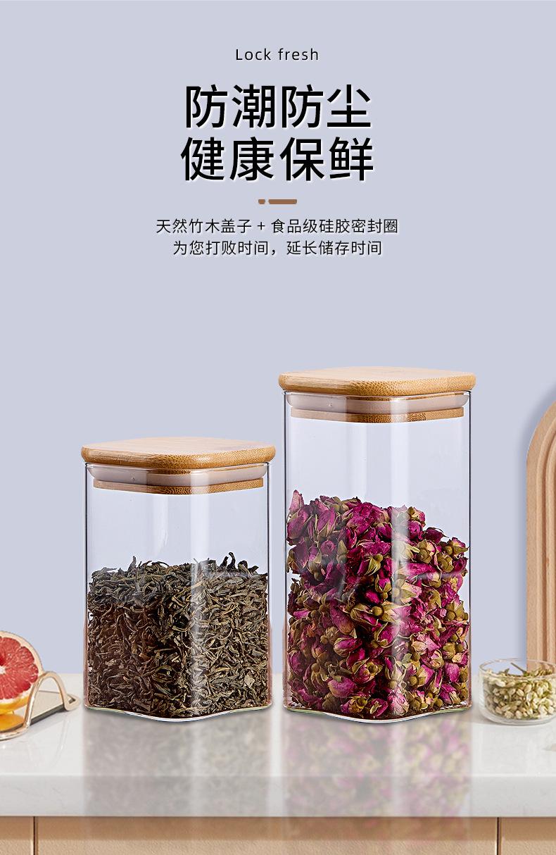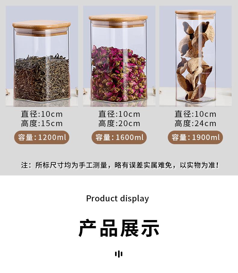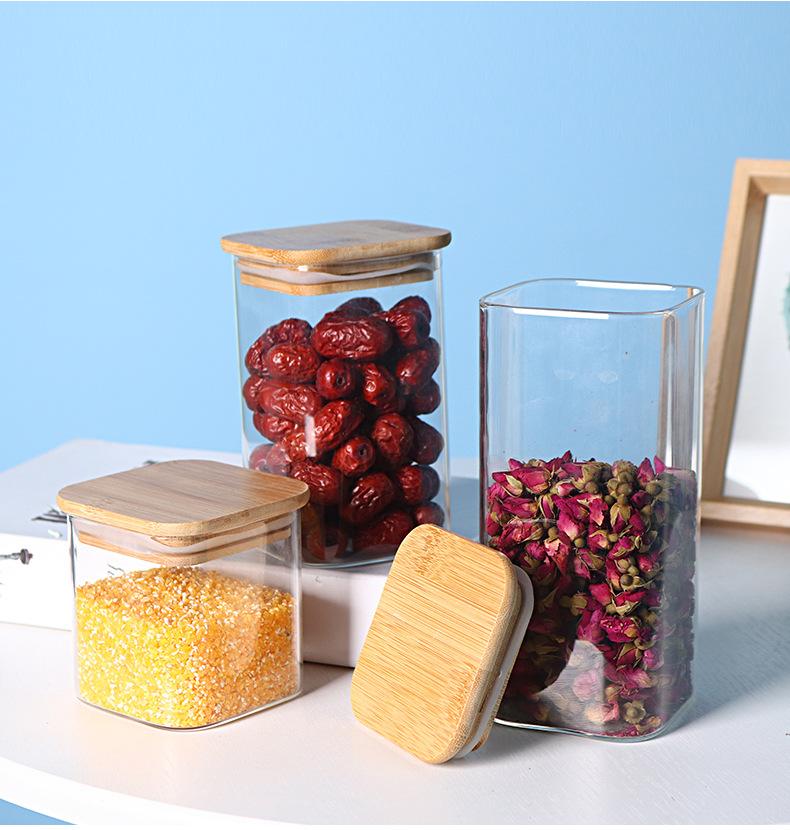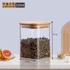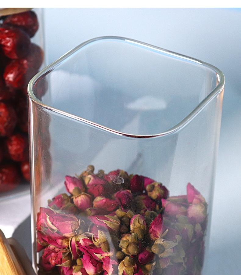 Pote de Armazenamento de Vidro Borossilicato Alto Quadrado com Tampa de Bambu Pote para Armazenar Chá Pote para Armazenar Grãos Selado à Prova de Umidade de Grau Alimentar