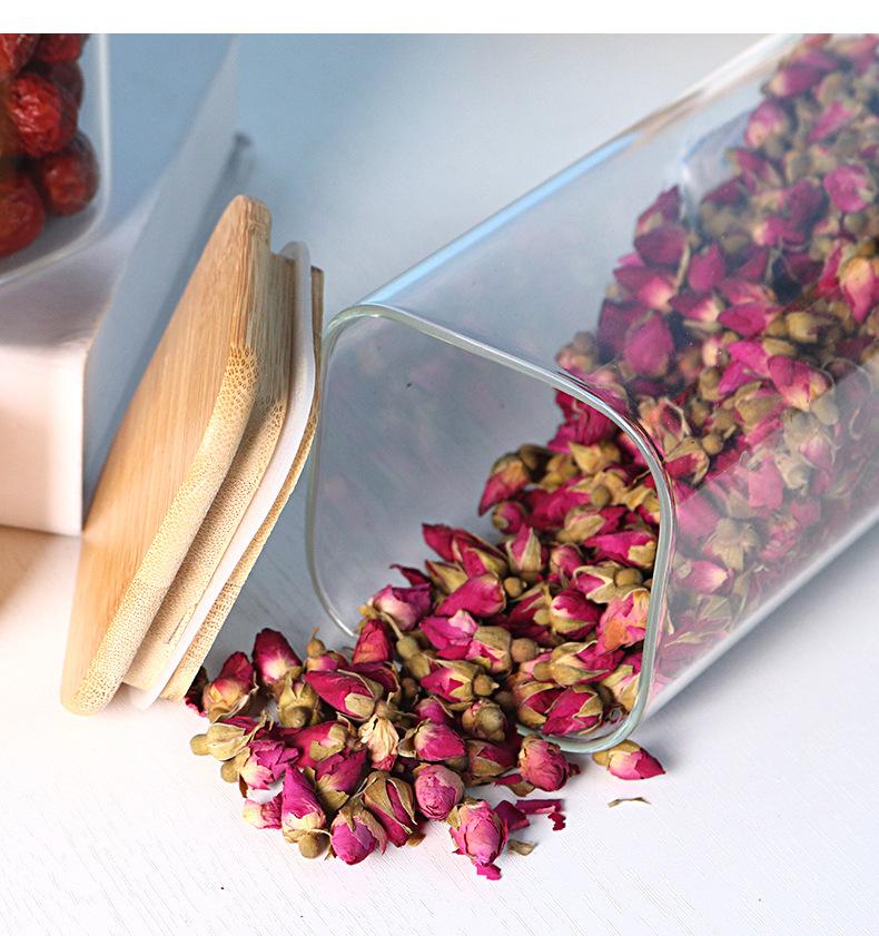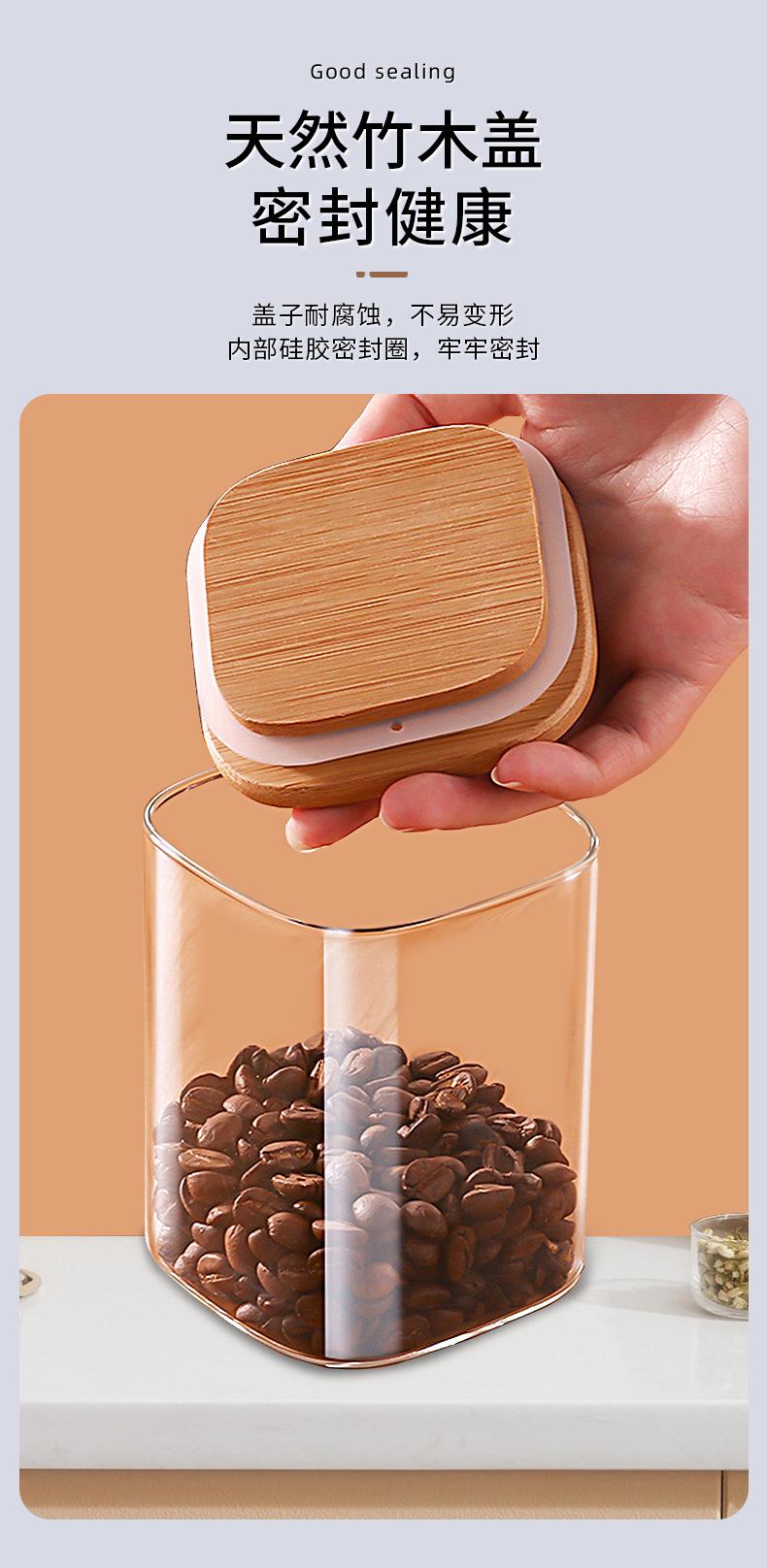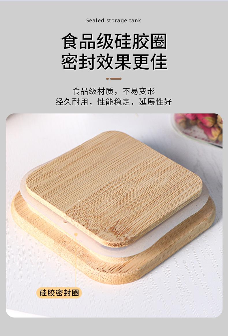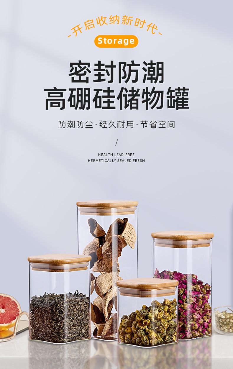 Pote de Armazenamento de Vidro Borossilicato Alto Quadrado com Tampa de Bambu Pote para Armazenar Chá Pote para Armazenar Grãos Selado à Prova de Umidade de Grau Alimentar