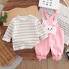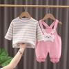 Roupa de Primavera e Outono para Meninas Nova Casual Elegante Macacão de Manga Longa Infantil para Outono Conjunto de Duas Peças Moderno