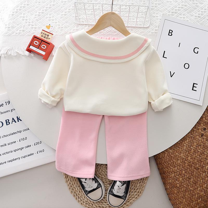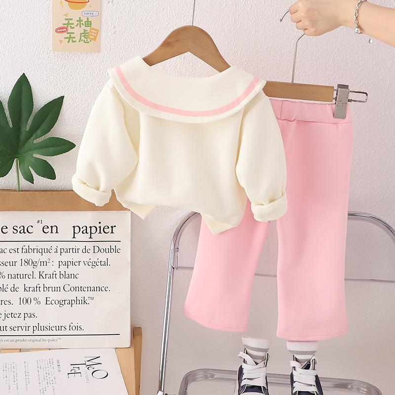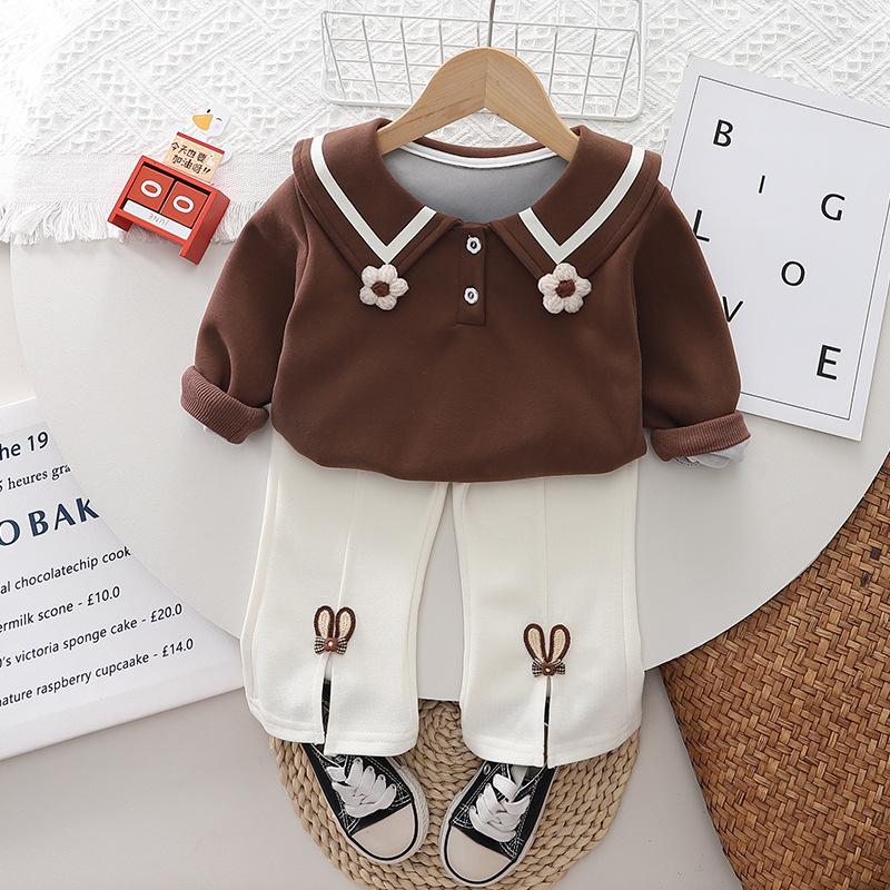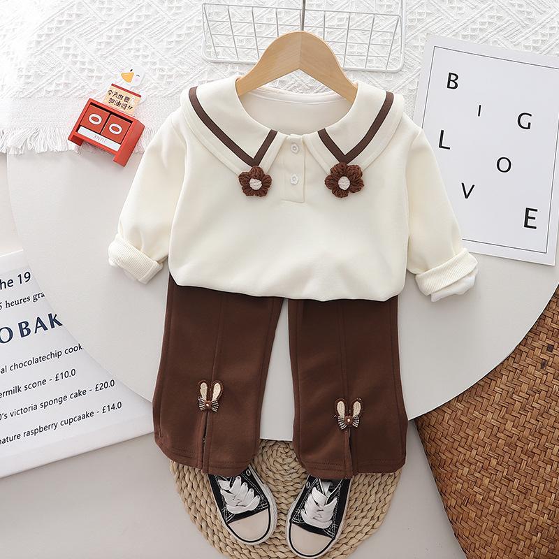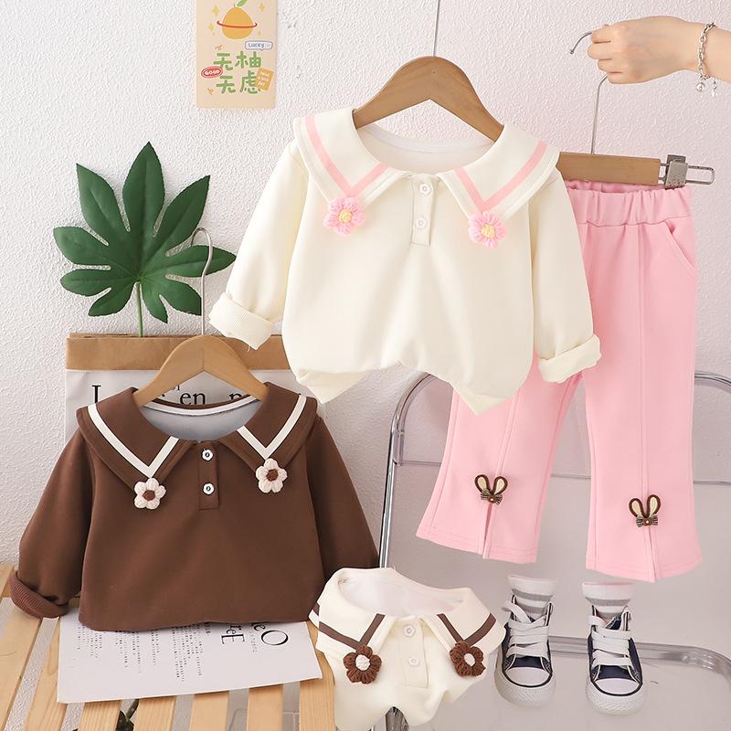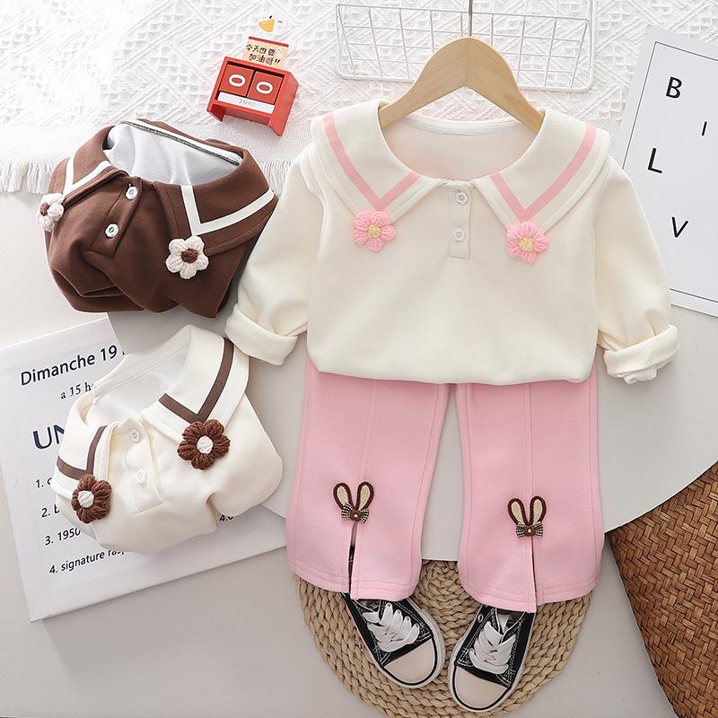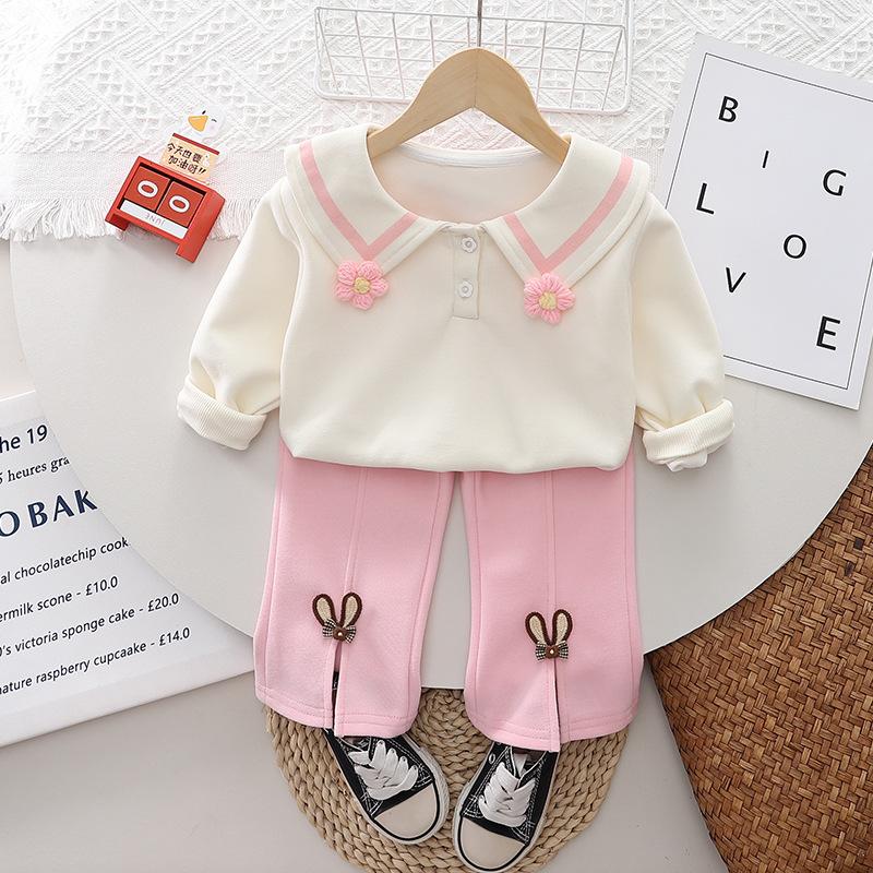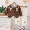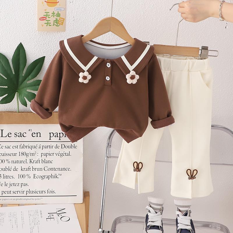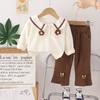 Suéter Solto Estilo Western para Menina Primavera e Outono para Bebê Menina terno 2024 Novo Casual Duas peças Infantil Estilo Coreano
