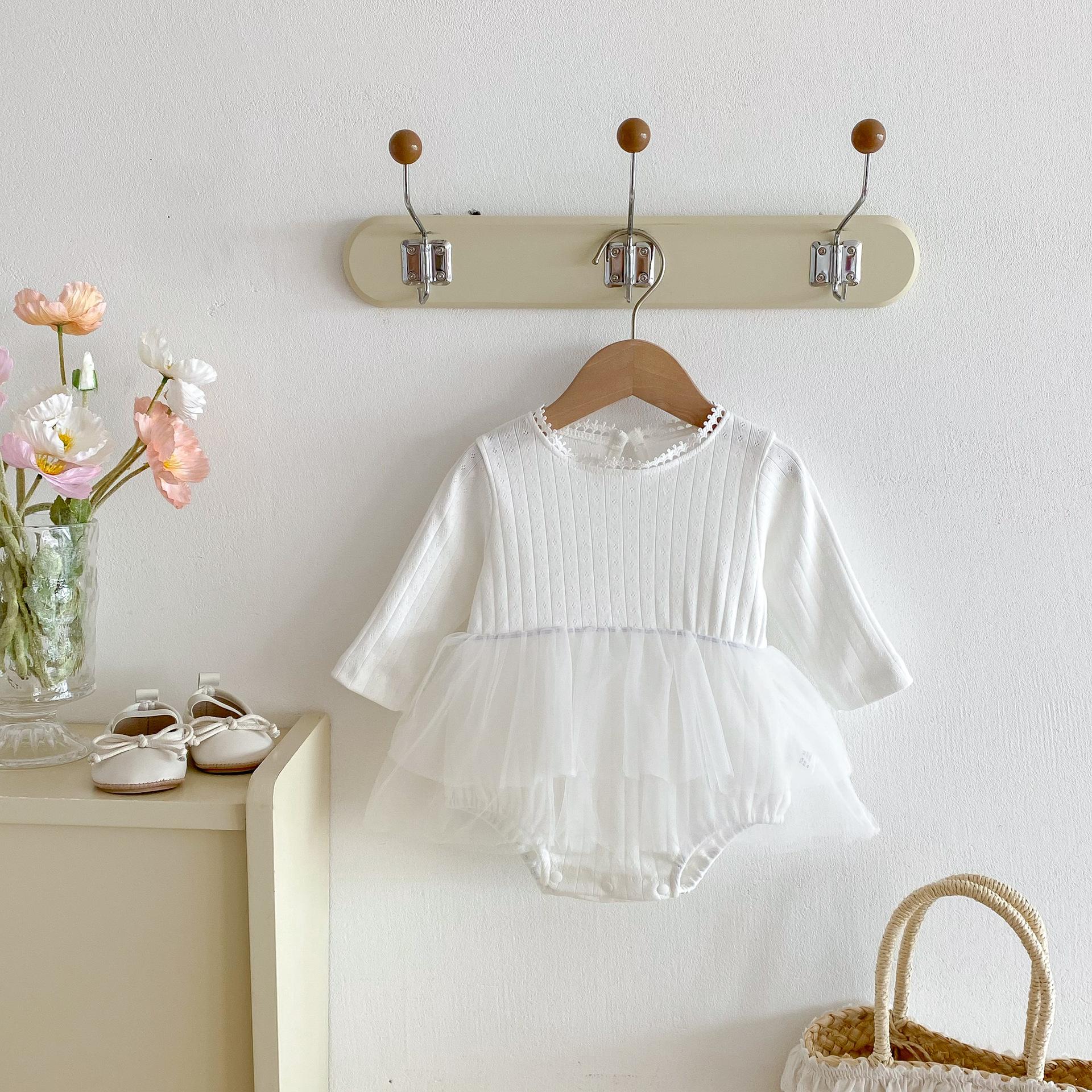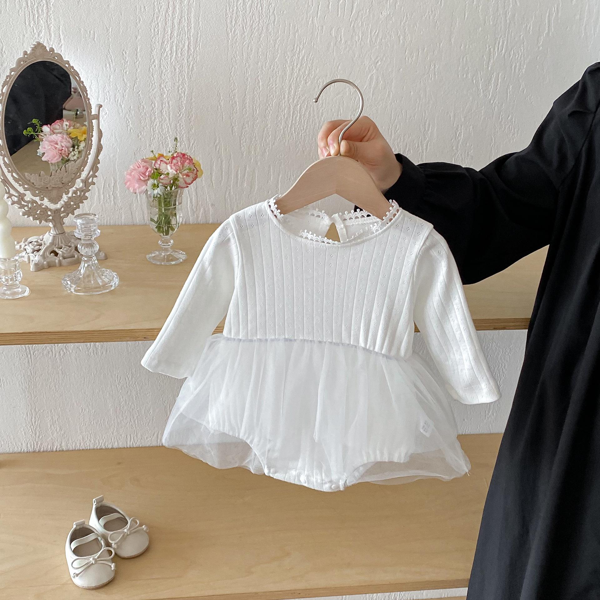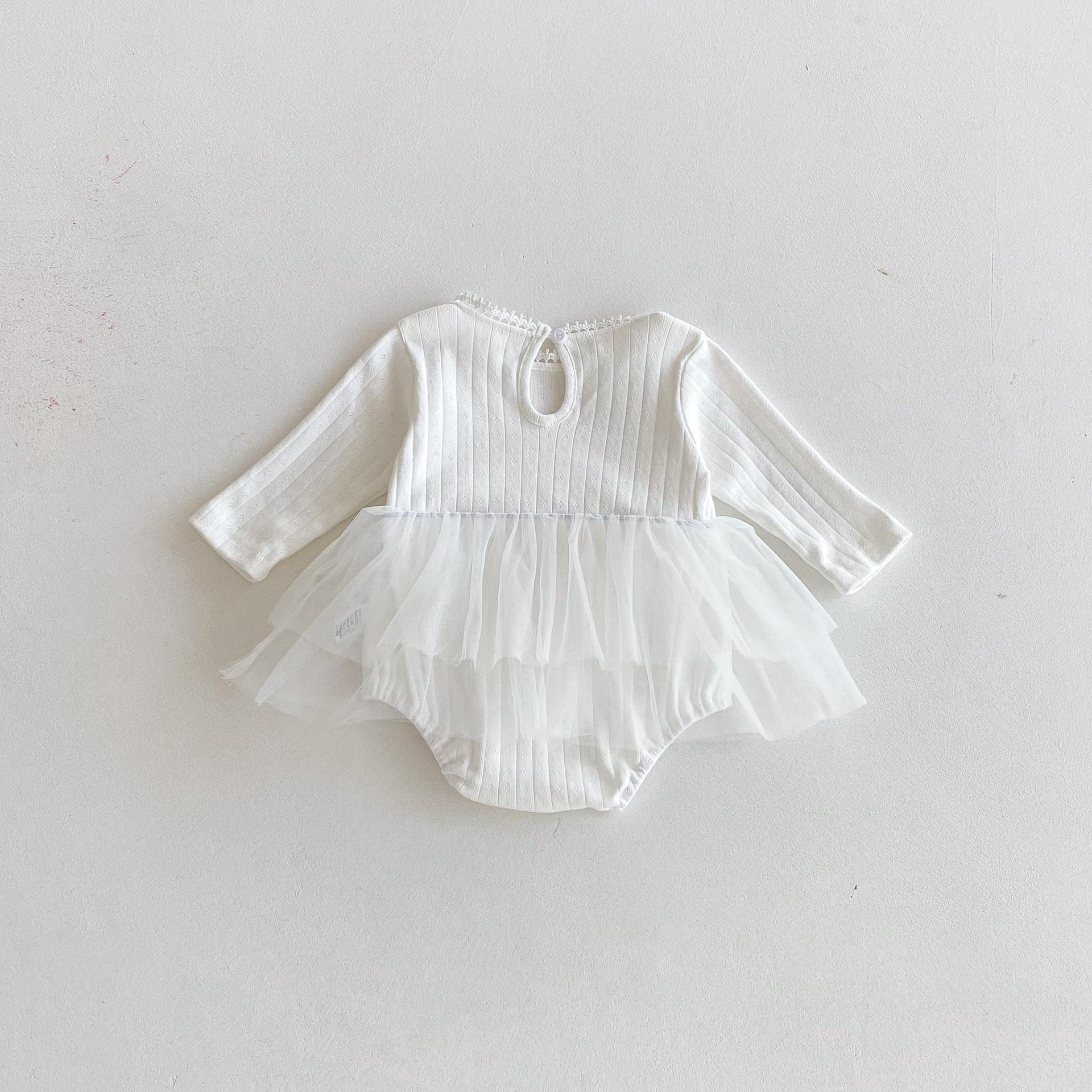 Macacão de Princesa para Bebê Primavera e Outono 2025 Recém-nascido Manga Longa Bebê Menina Saia de Gaze Lua Cheia Um Ano de Idade Vestido Macacão