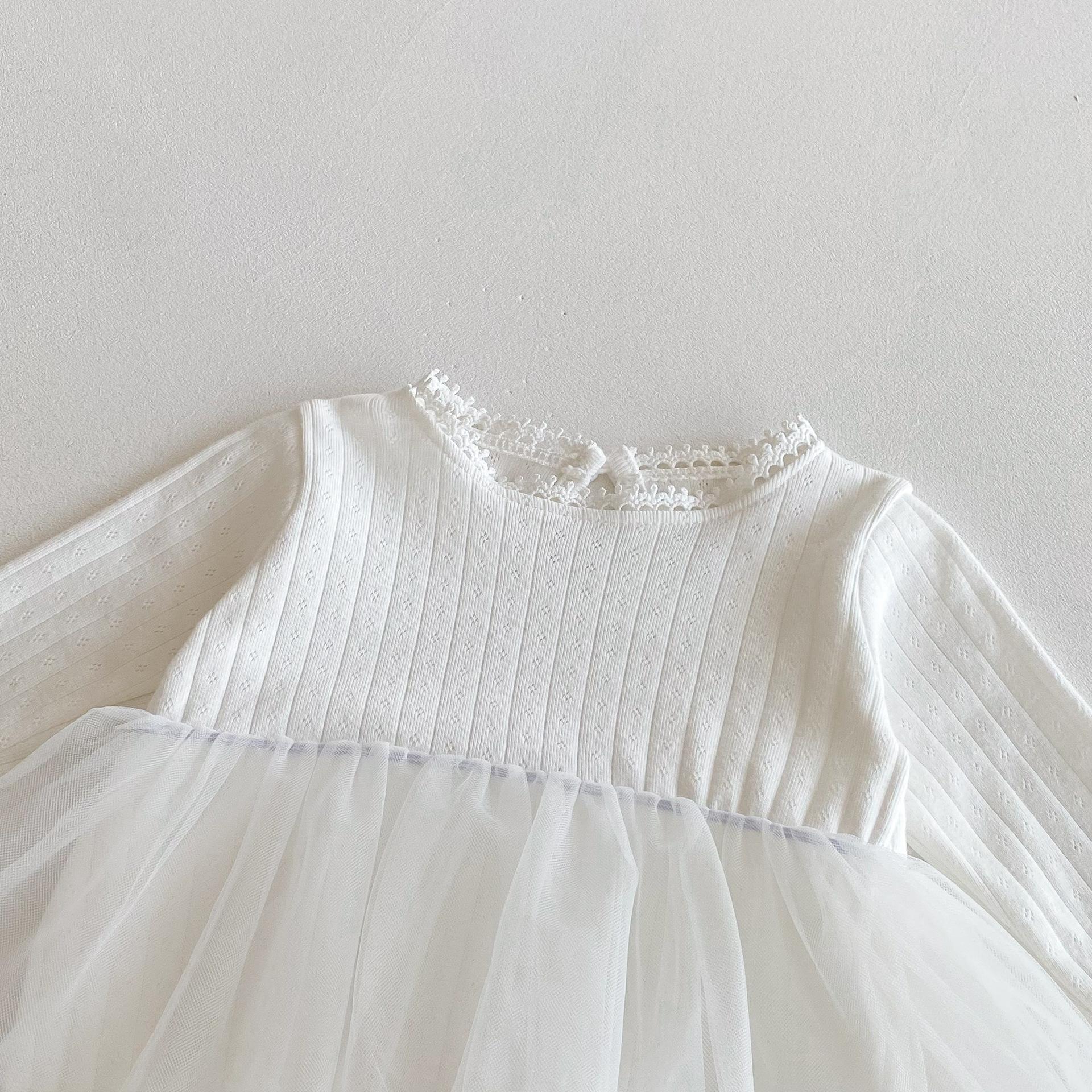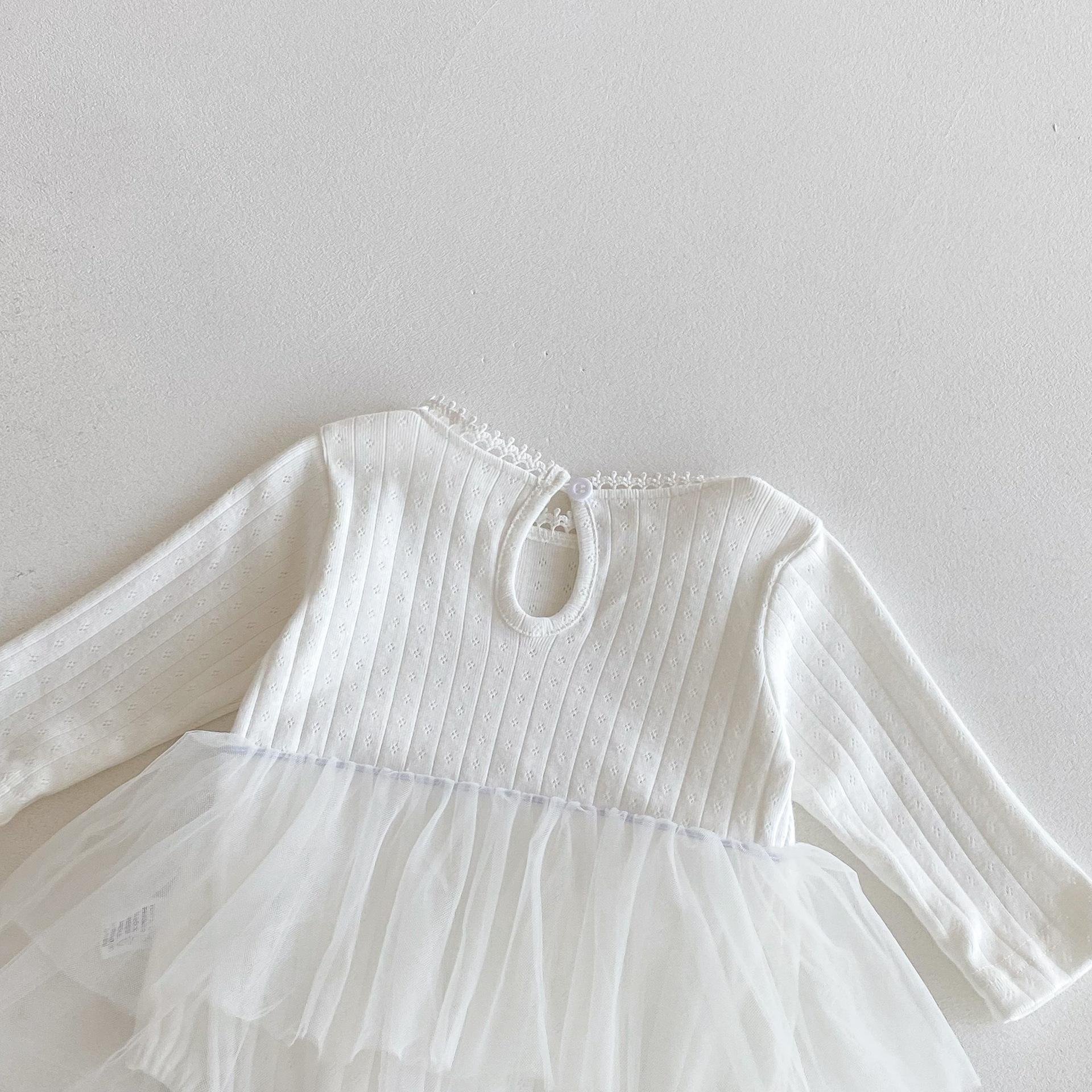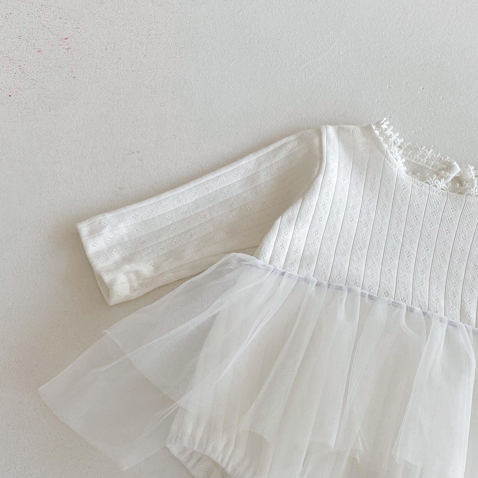 Macacão de Princesa para Bebê Primavera e Outono 2025 Recém-nascido Manga Longa Bebê Menina Saia de Gaze Lua Cheia Um Ano de Idade Vestido Macacão