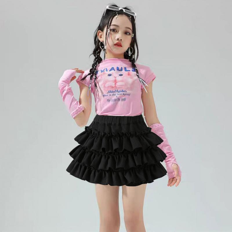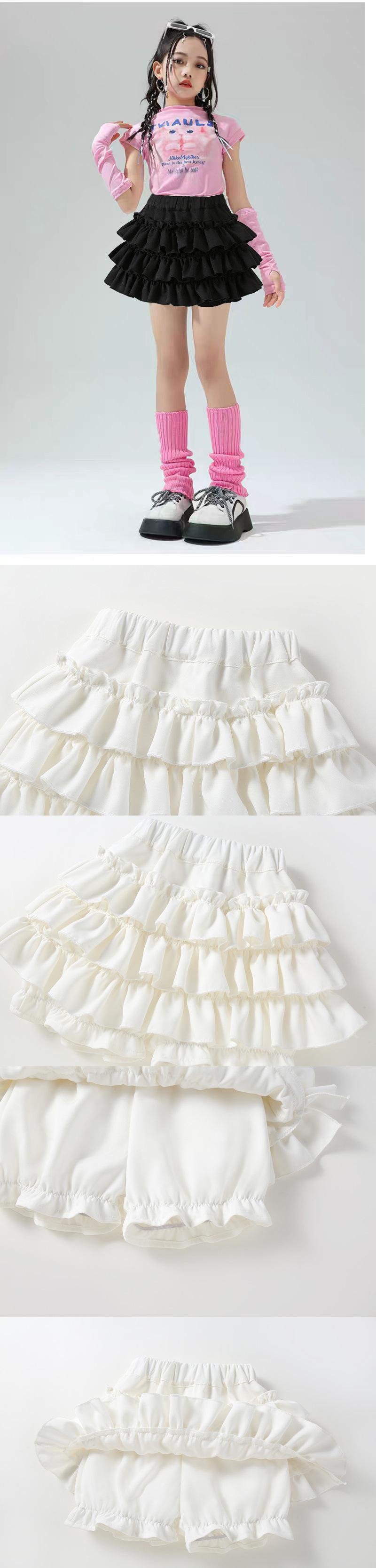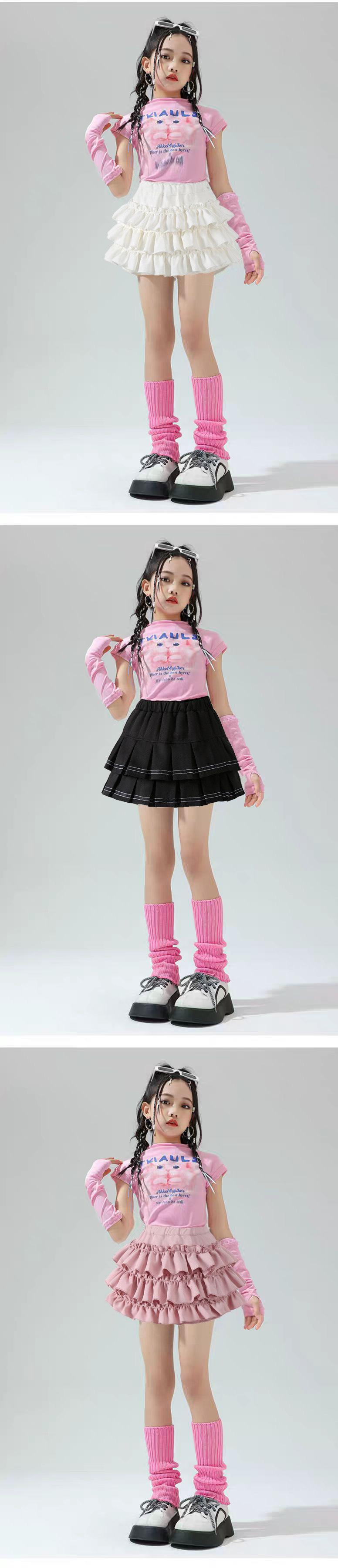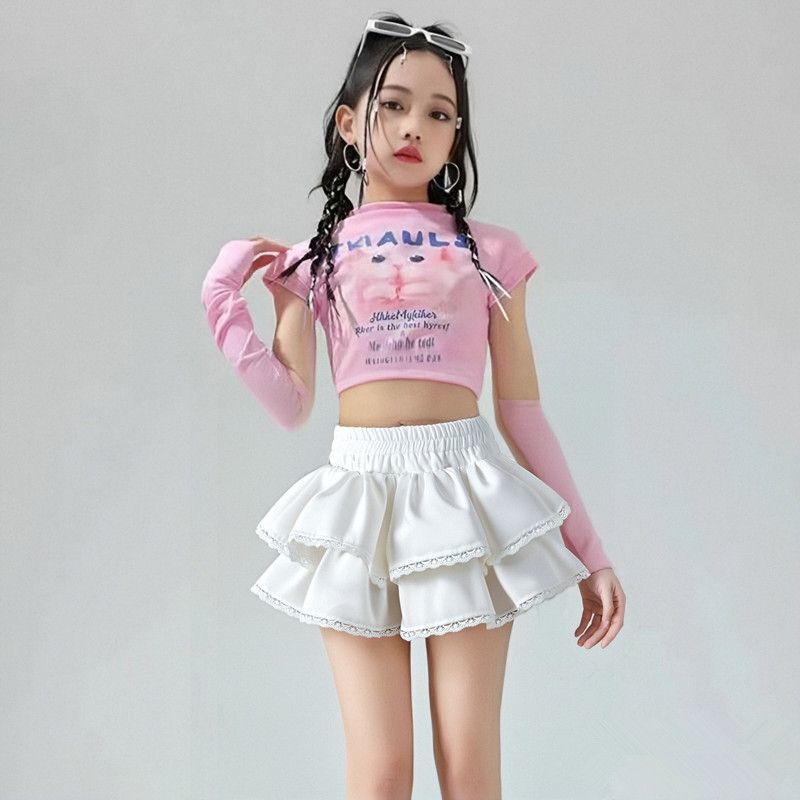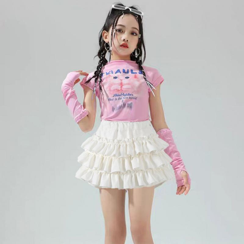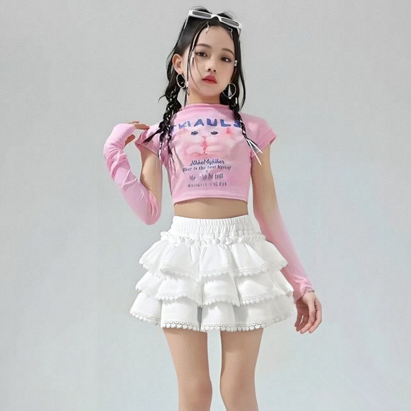 Saia Bolo Três Camadas Anti-Exposição para Meninas Verão Branco Rosa Saia Curta Moda Infantil Versátil Saia Bufante
