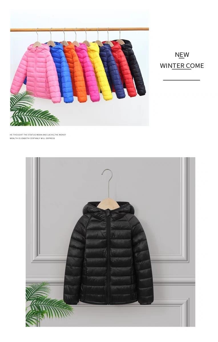 Jaqueta Infantil Leve Acolchoada Espessa 2024 Meninos e Meninas Outono e Inverno Novo Bebê com Capuz Jaqueta de Algodão Ultraleve