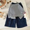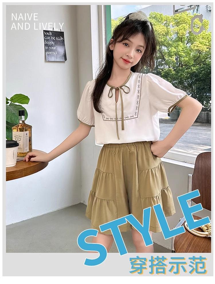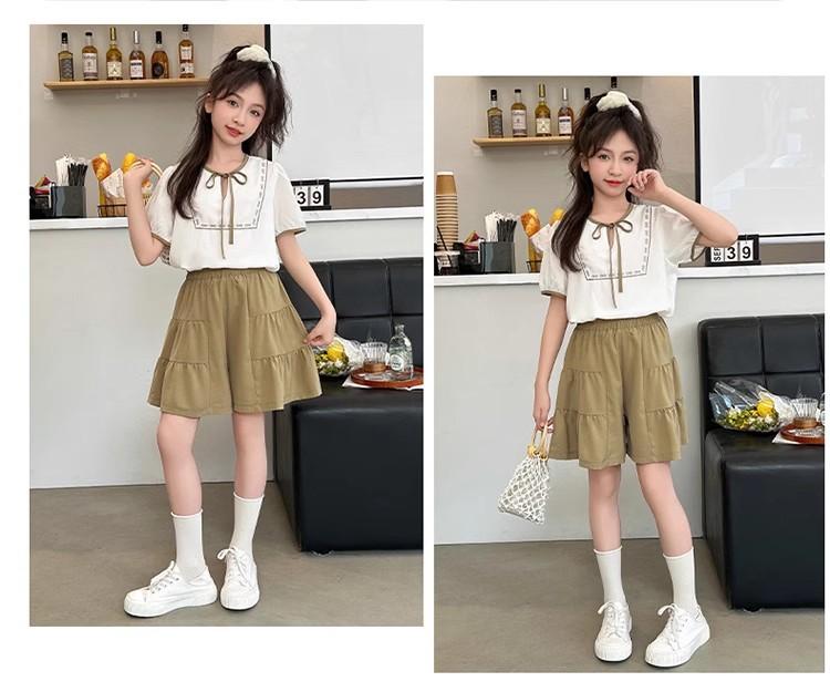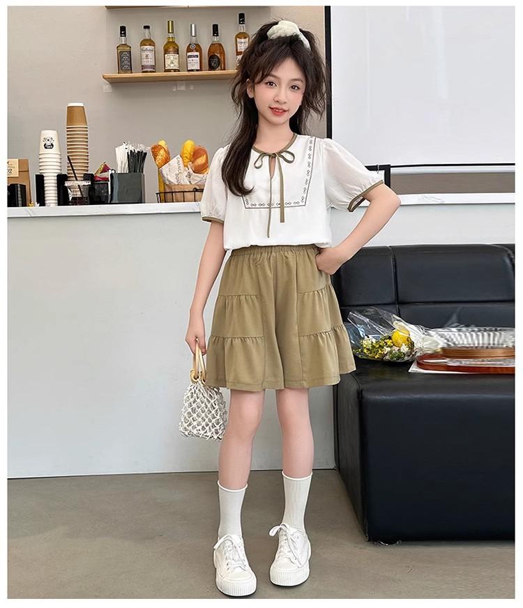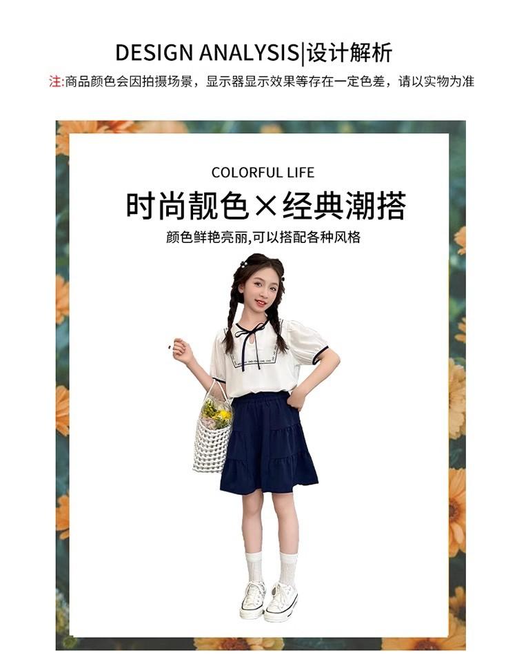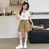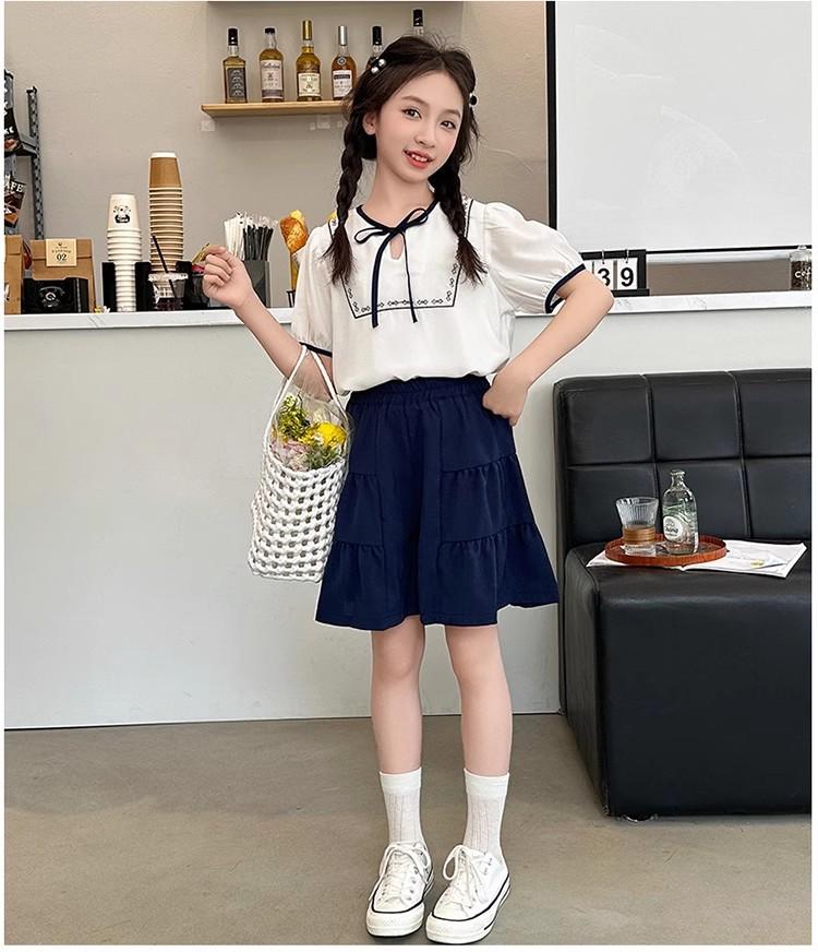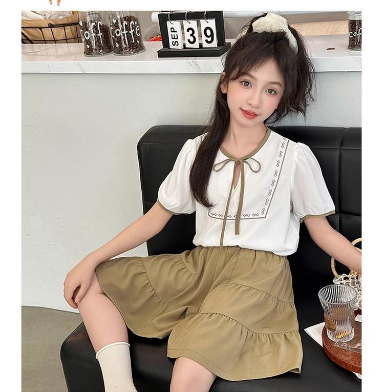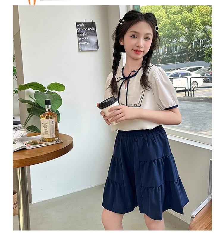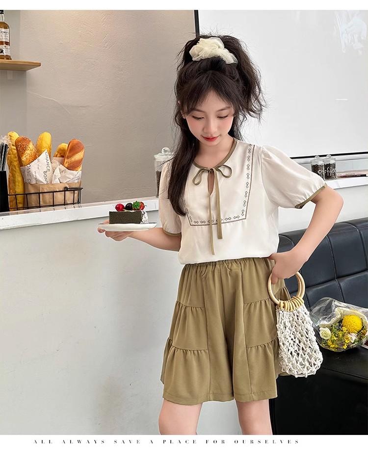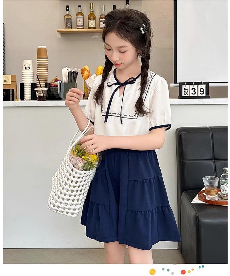 Terno Fino Estilo Faculdade para Bebês Meninas, Novo Estilo Verão Infantil, Conjunto de Duas Peças de Camisa de Bebê com Cadarço e Shorts