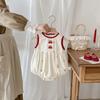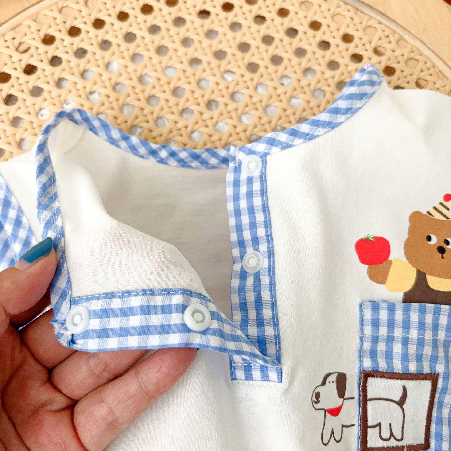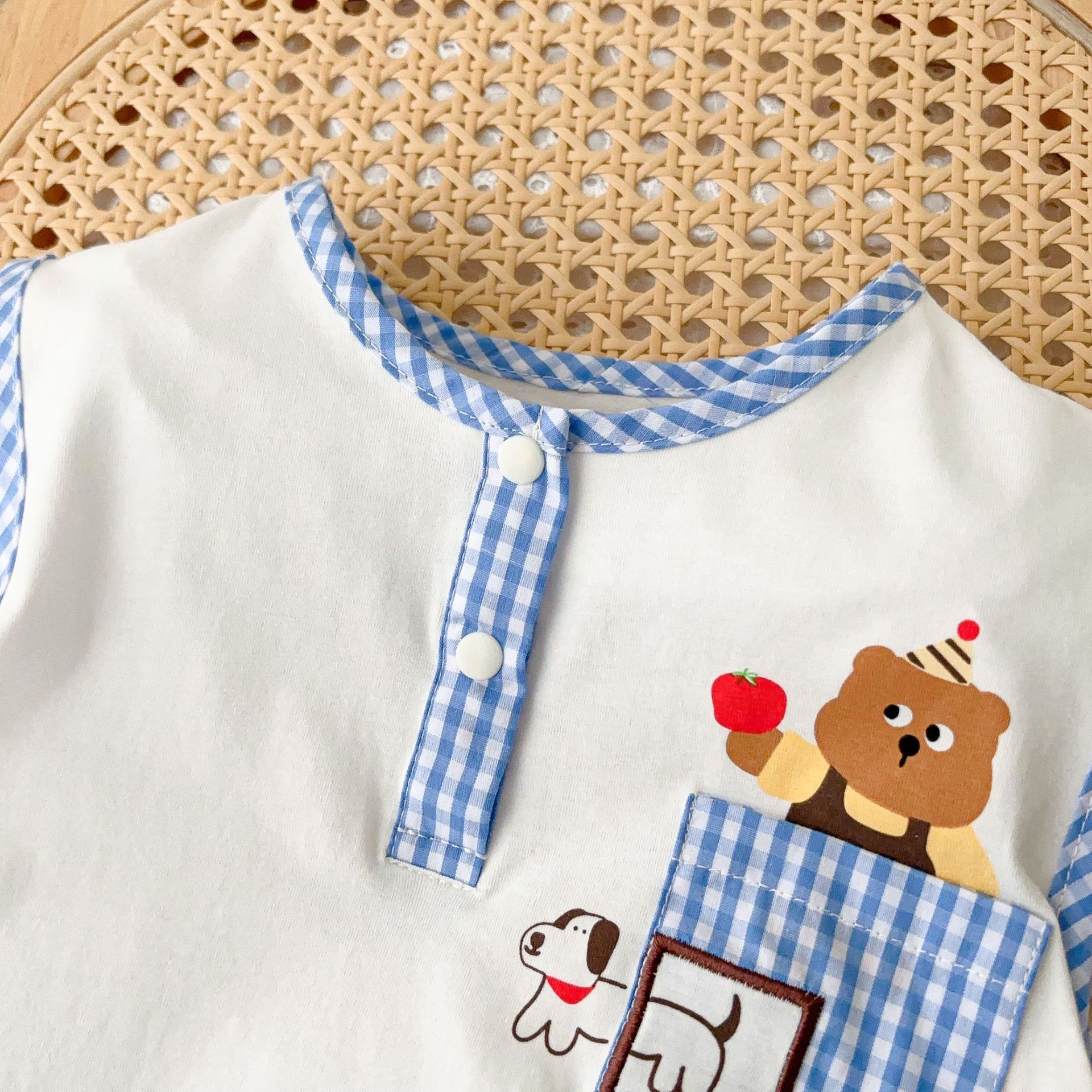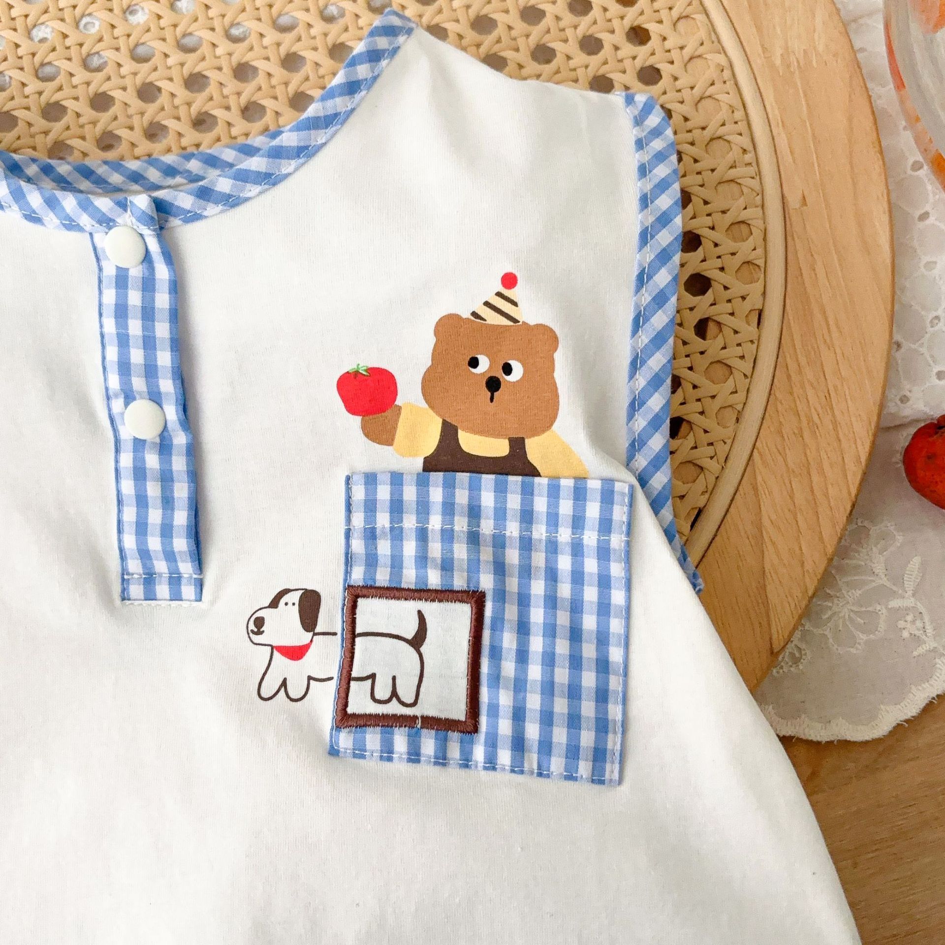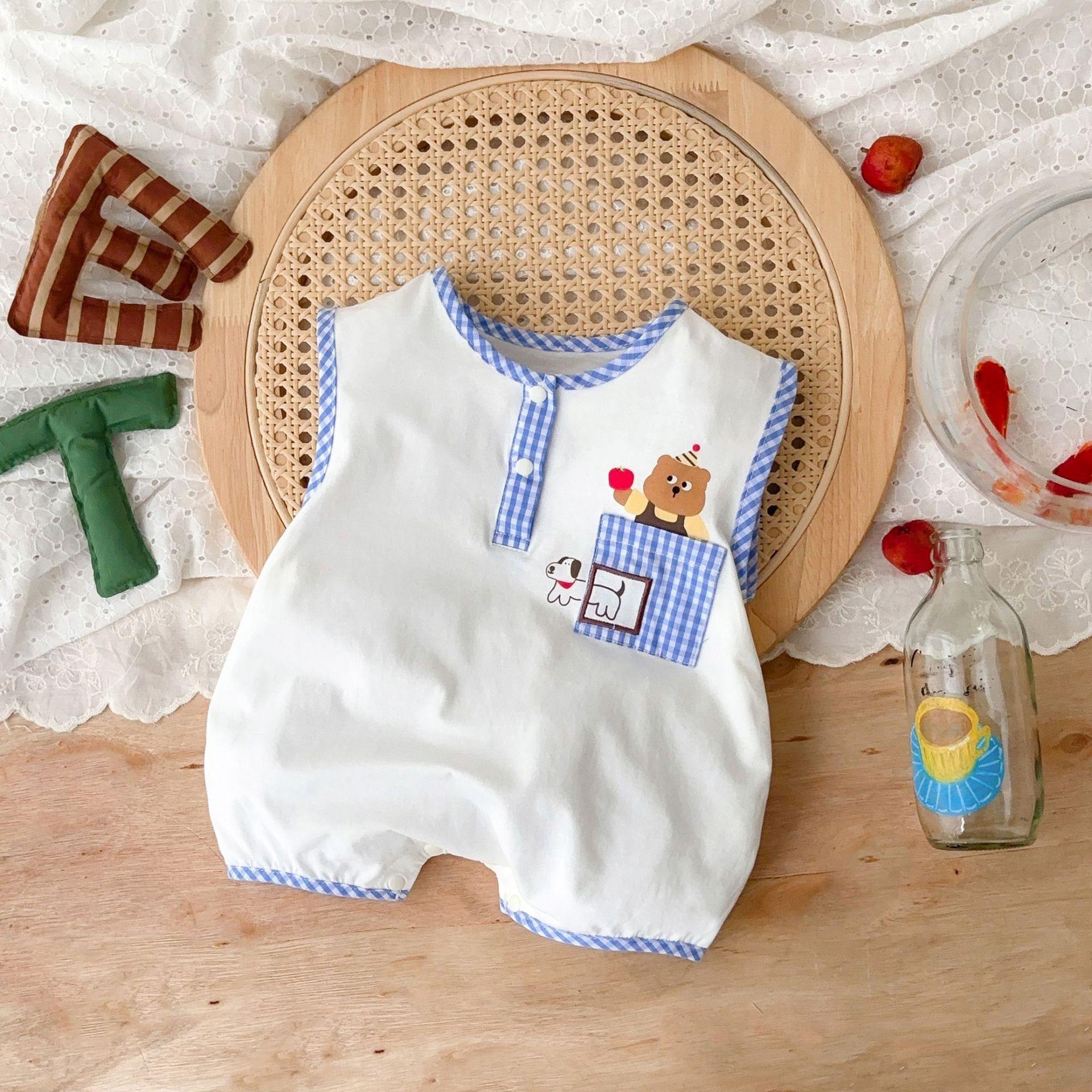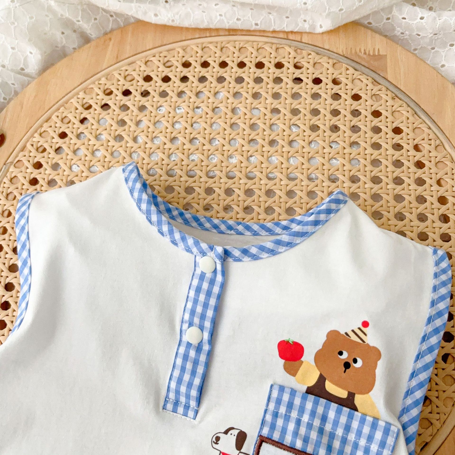 Macacão de Verão para Bebê 2025 Urso de Desenho Animado Xadrez Azul Coelho Sem Mangas Colete Fino Envoltório para Bebê Roupa Mijão