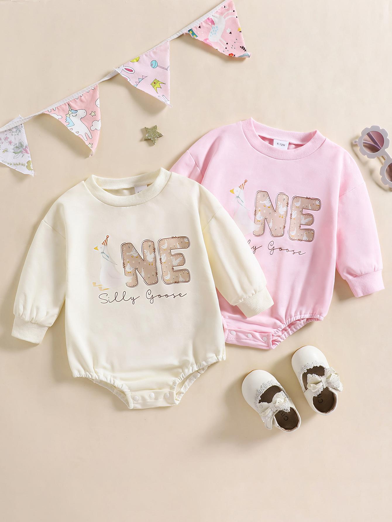 Novo Outono e Inverno Transfronteiriço Fleece Aniversário Manga Longa Bebê Menina Bebê Letra Bordada Macacão Suporta Drop Shipping