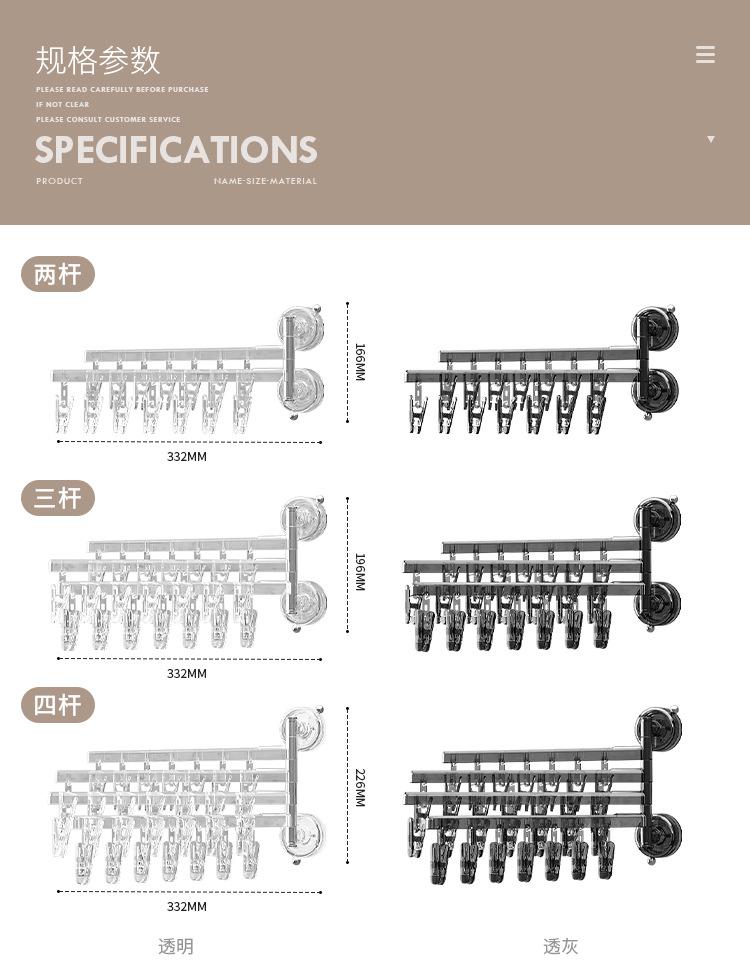 Transparent two-pole 14 clips, Transparent gray two-pole 14 clips, Custard two rods 14 clips, Transparent thre...