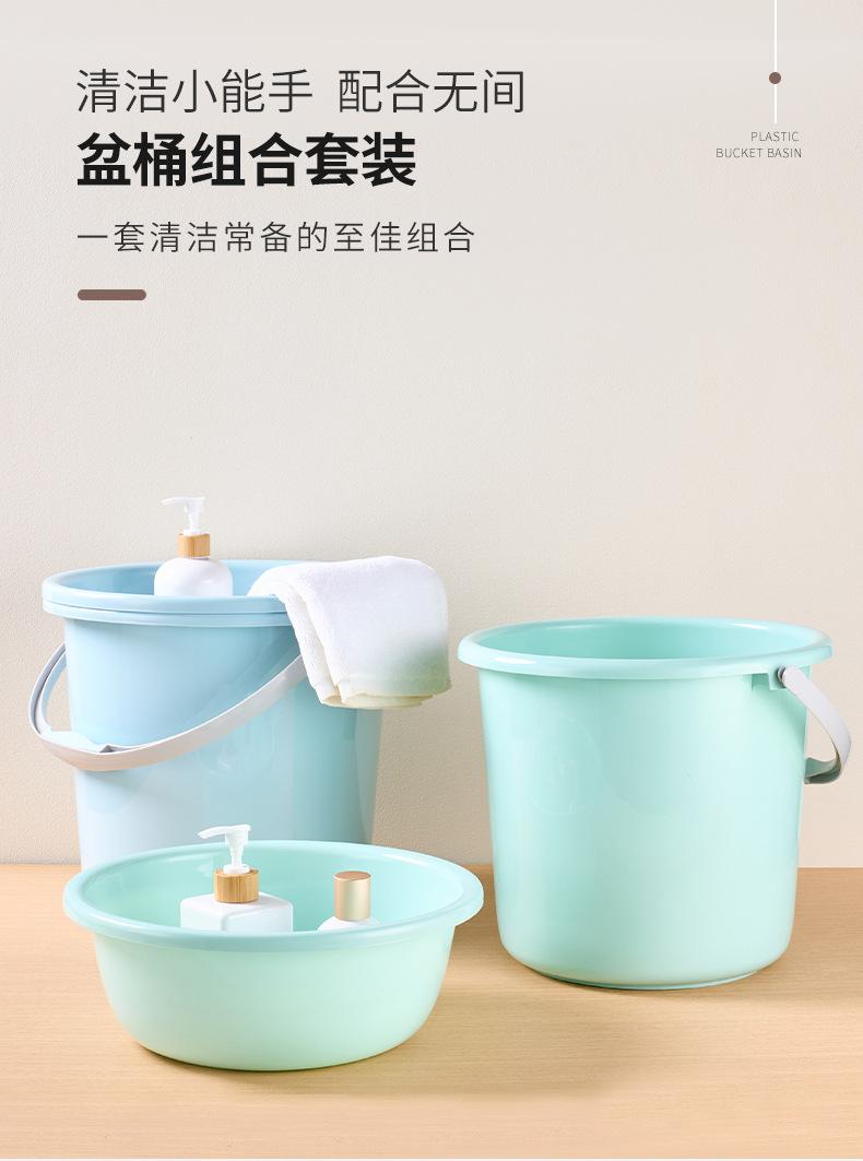 Large, medium and small three-piece bucket set [blue], Large, medium and small three-piece bucket set [green],...