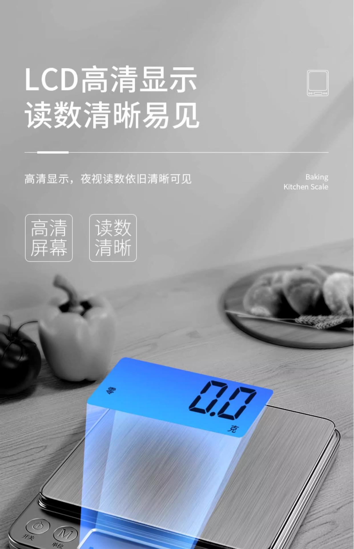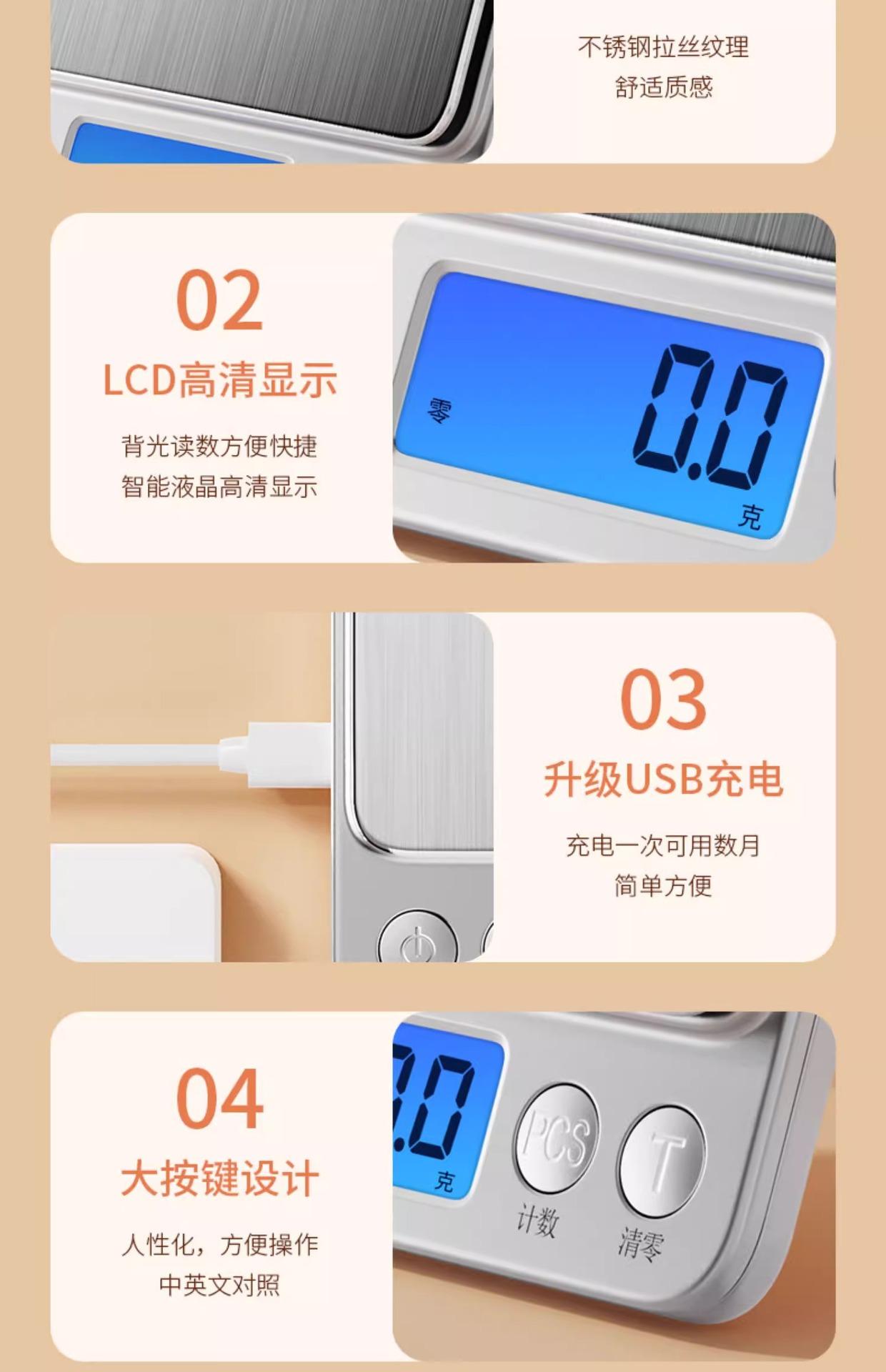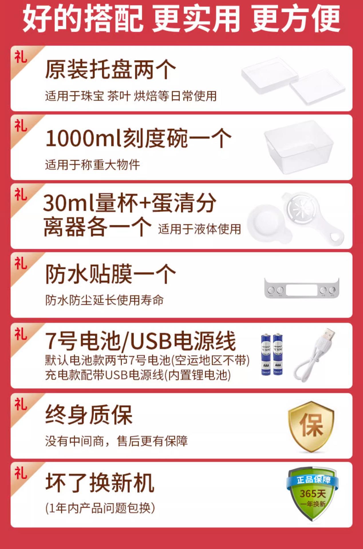 [upgraded and enlarged] rechargeable 3kg/0.1g tray + measuring cup + waterproof sticker + usb data
