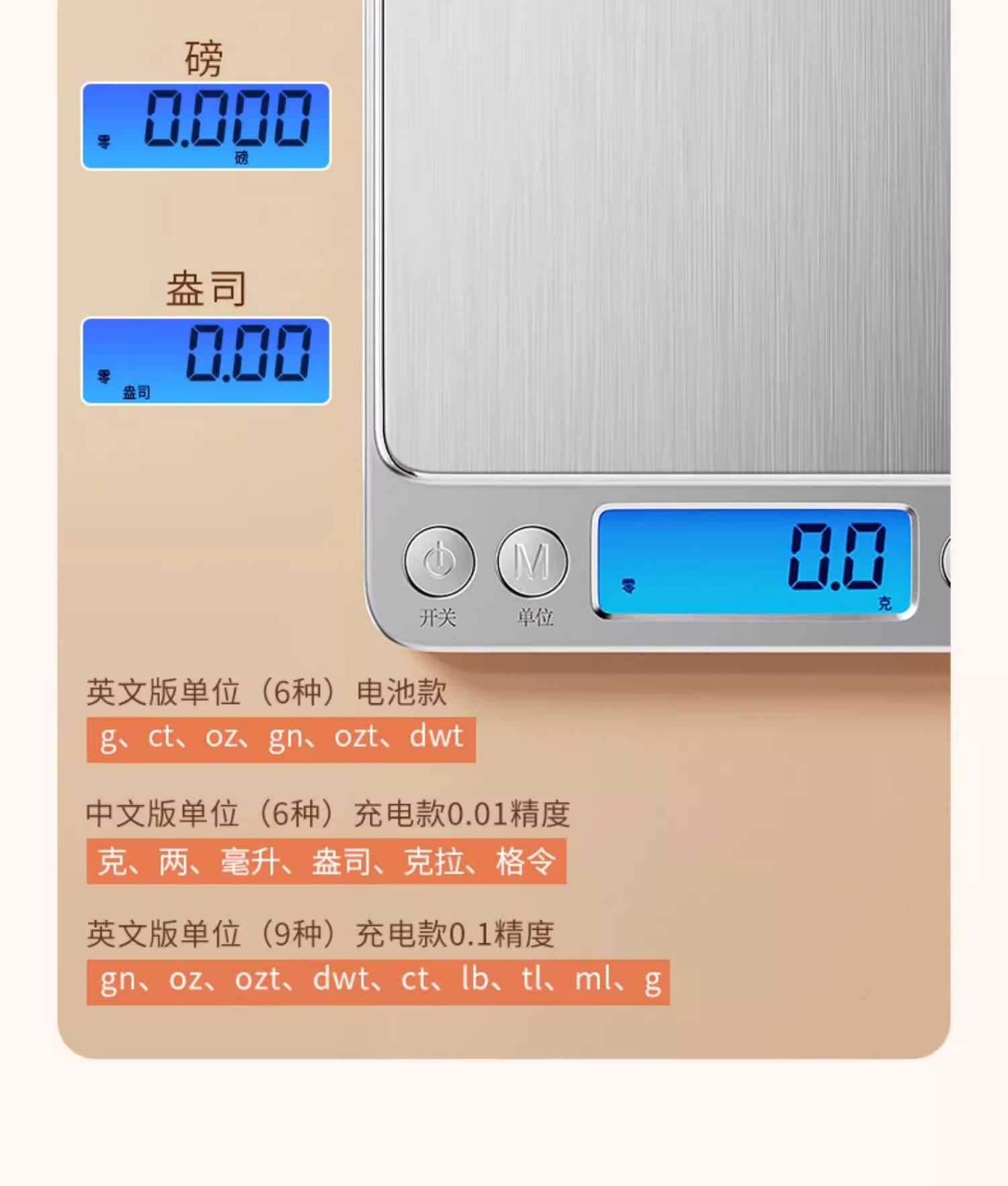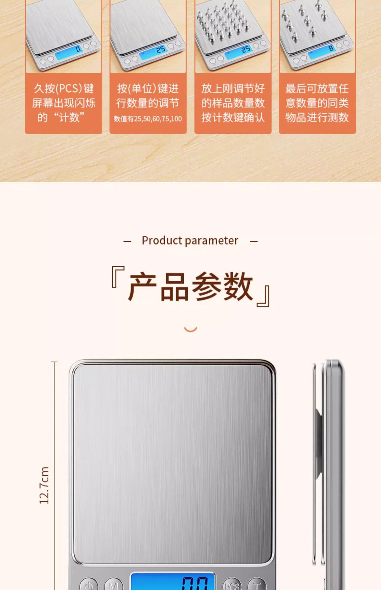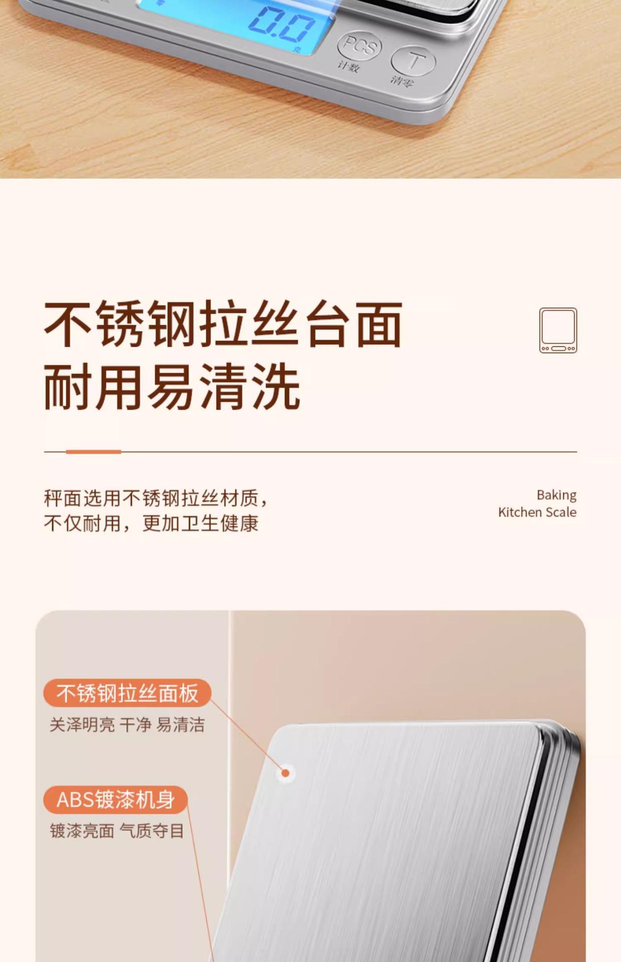 [upgraded and enlarged] rechargeable 3kg/0.1g tray + measuring cup + waterproof sticker + usb data