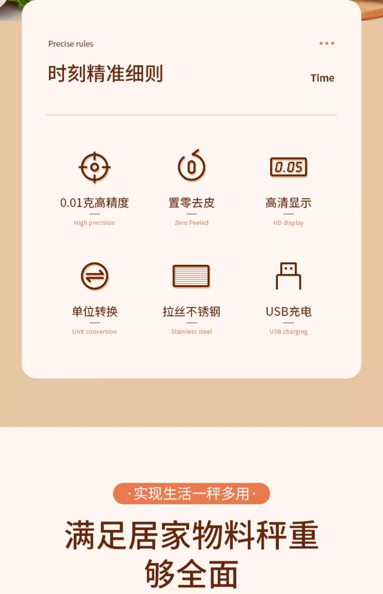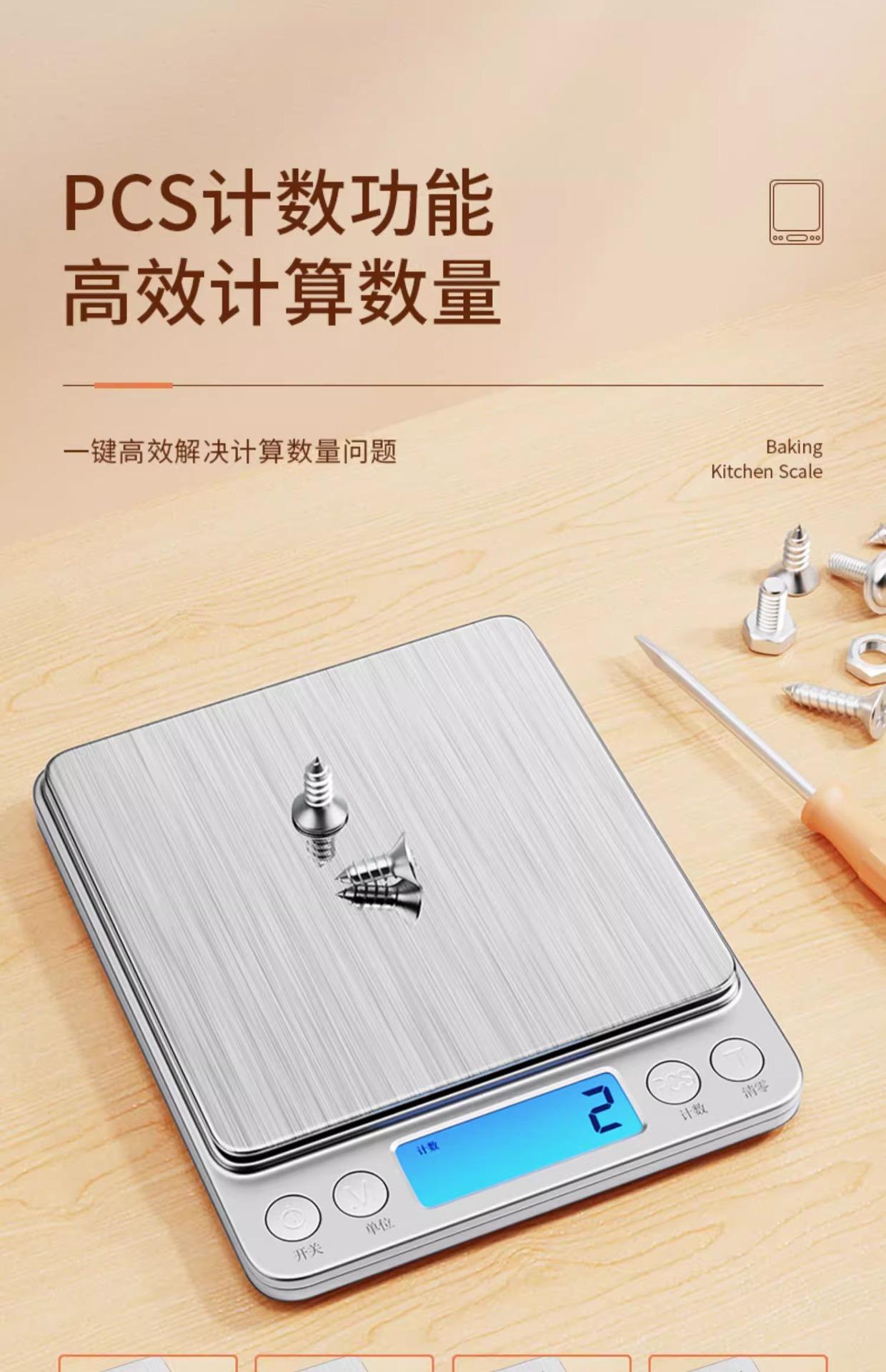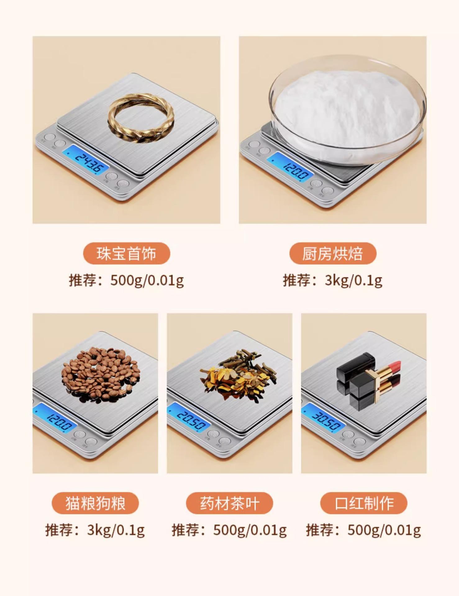 Hot-selling recommended rechargeable model 3kg/0.1g comes with double trays + charging cable + seven waterproo...