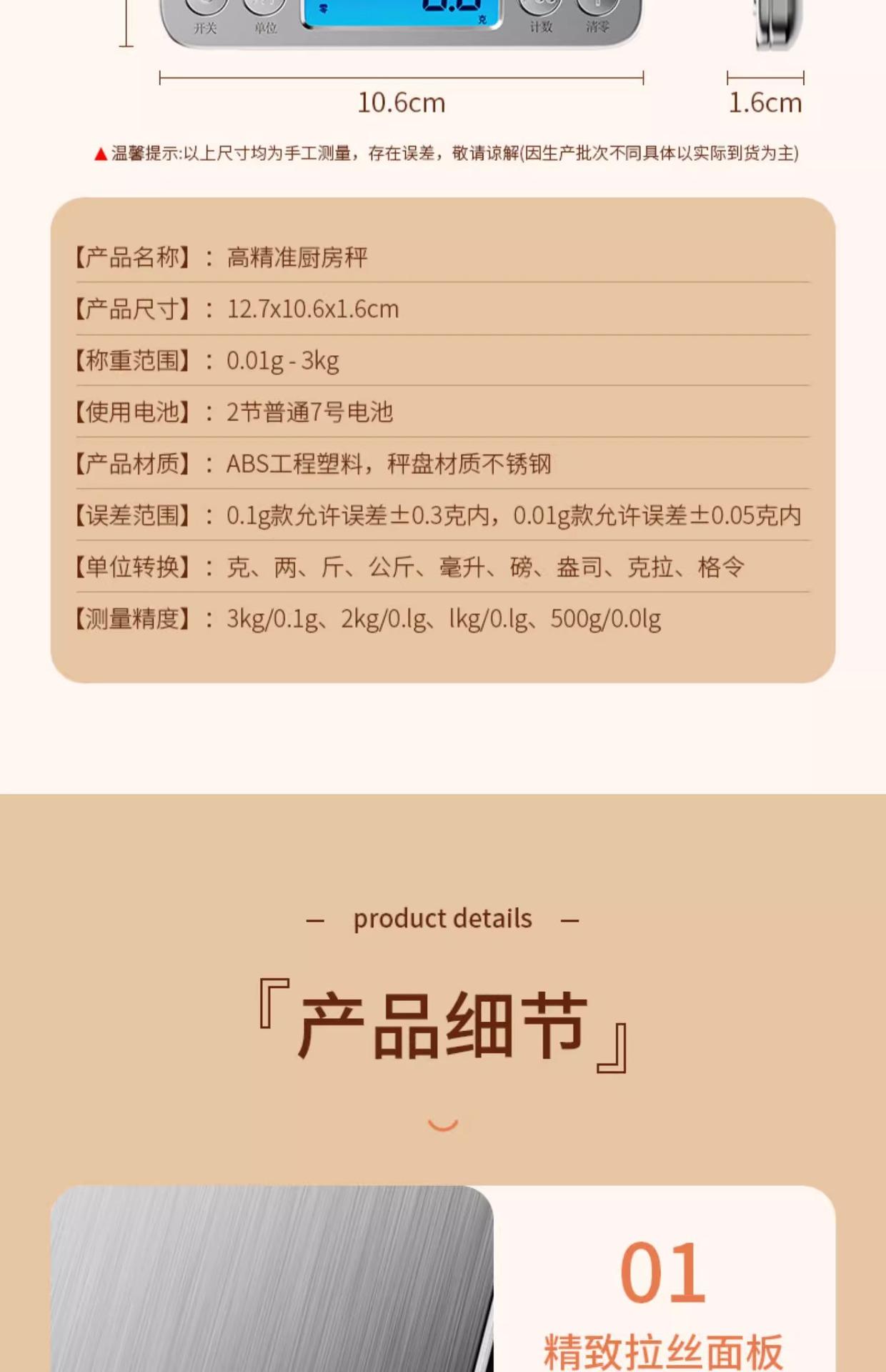 [upgraded and enlarged] battery model 3kg/0.1g tray + measuring cup + waterproof sticker + battery