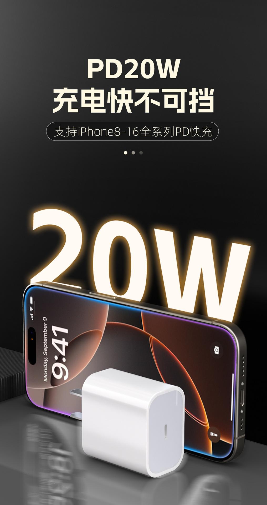 Carregador de 20W para cabeça de carregamento Apple certificação 3C fábrica de carregadores PD20W carregamento rápido conjunto de cabo de dados