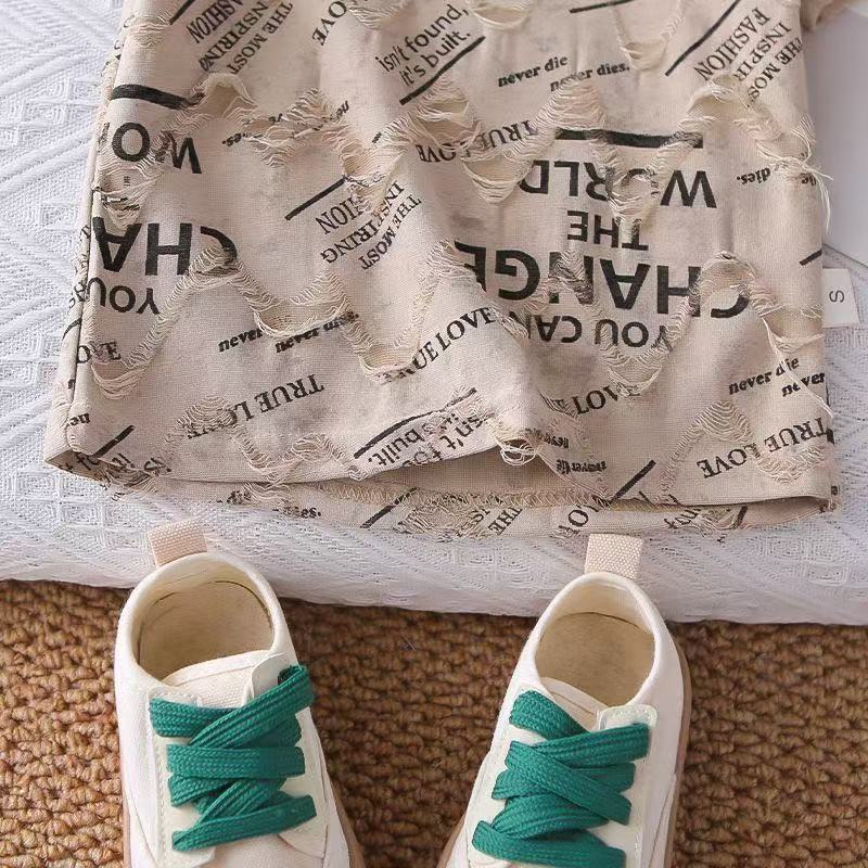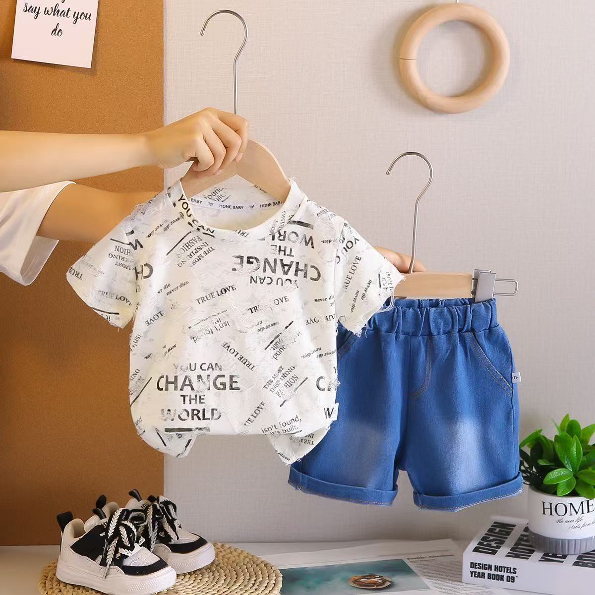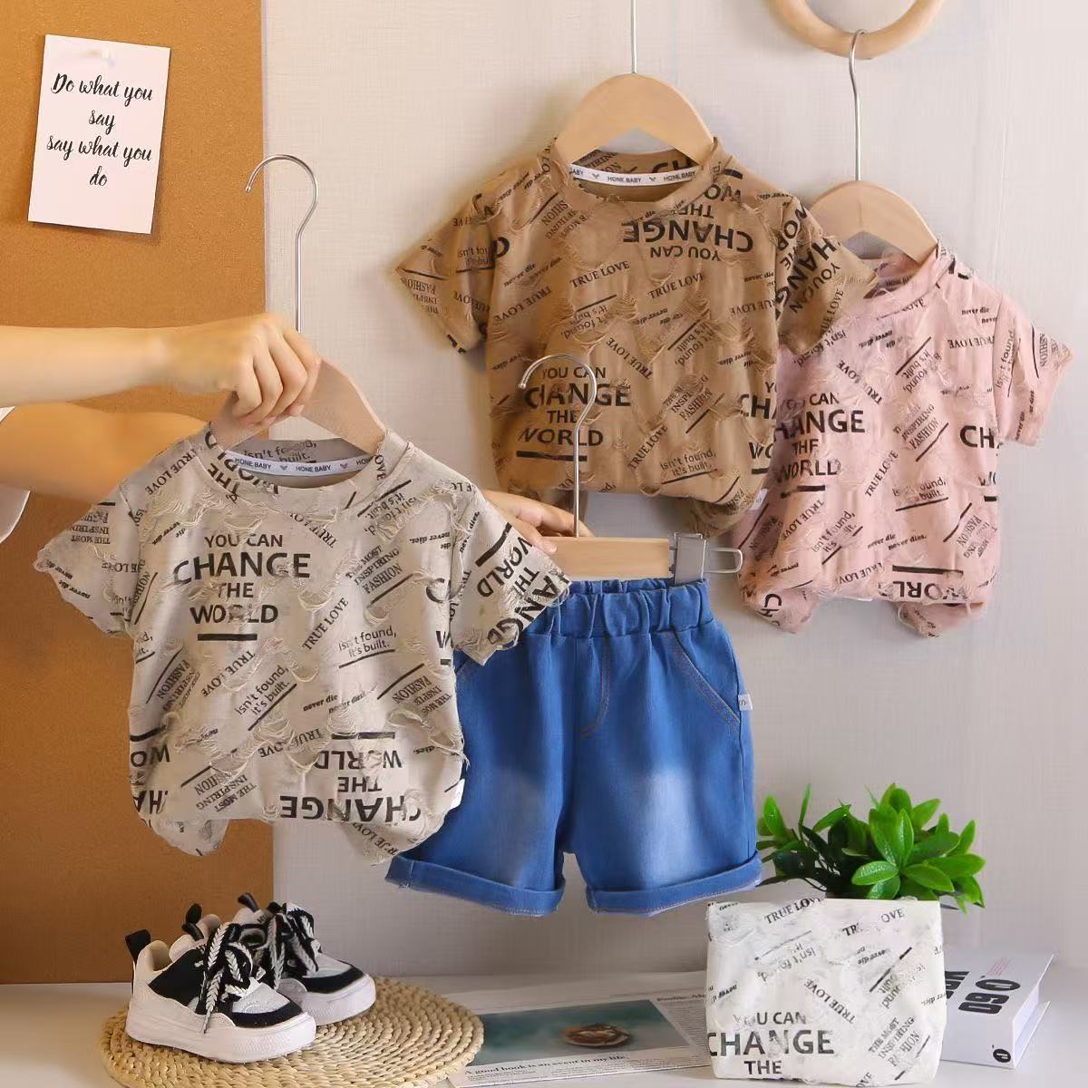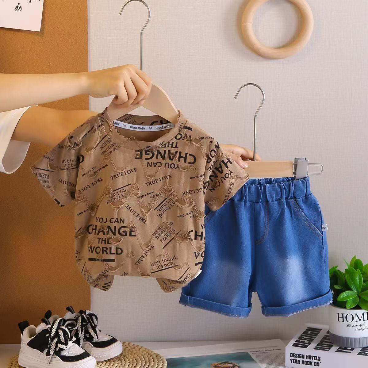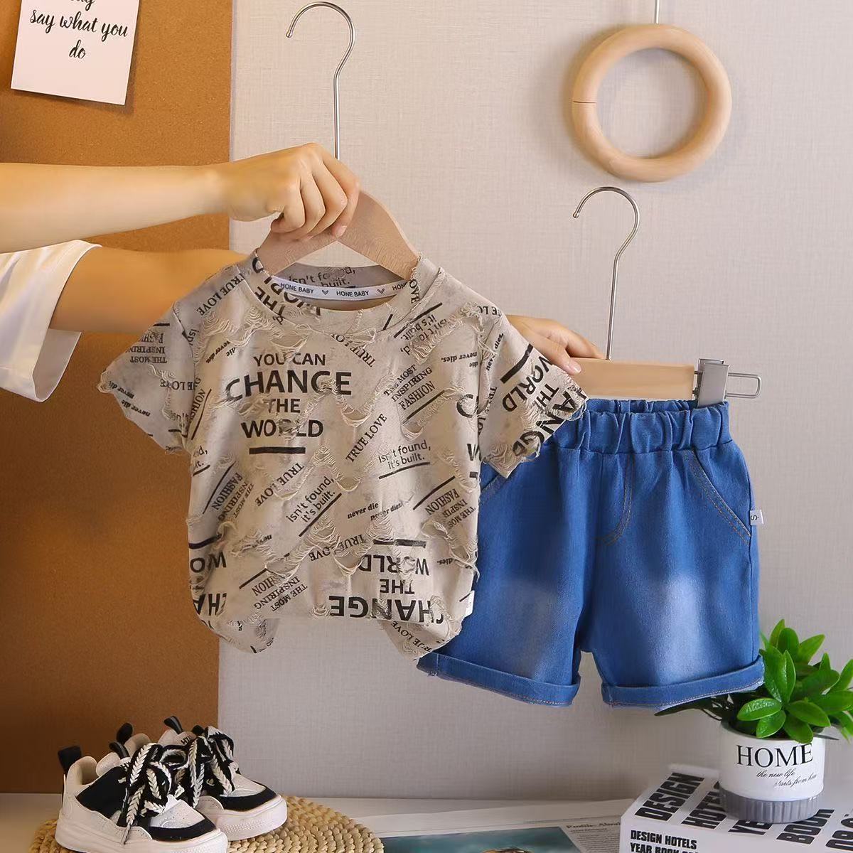 Compre Conjunto de Verão de Algodão de Manga Curta de Estilo Coreano para Meninos de 0 a 4 Anos, Roupas da Moda Fina e Rasgada no atacado no Joom.pro