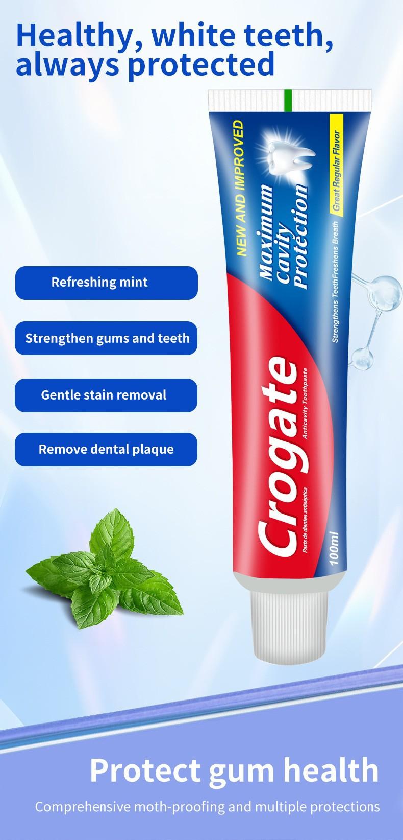 Versão Completa em Inglês de Pasta de Dentes Remove Manchas, Previne Cáries, Protege as Gengivas, Fortalece os Dentes, Clareia e Refresca o Hálito, Atacado de Comércio Exterior Transfronteiriço