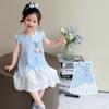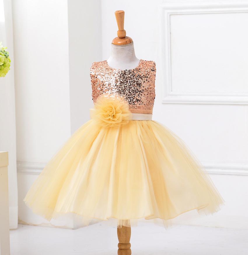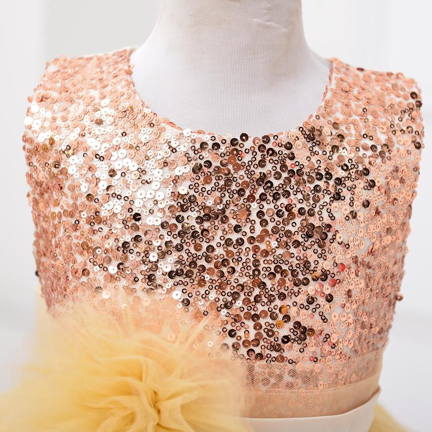 Europeu e americano meninas vestido de noite vestido de princesa flor menina anfitrião crianças de manga curta lantejoulas passarela desempenho traje atacado