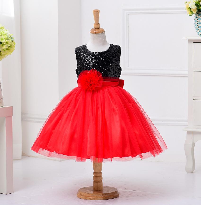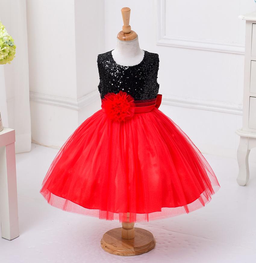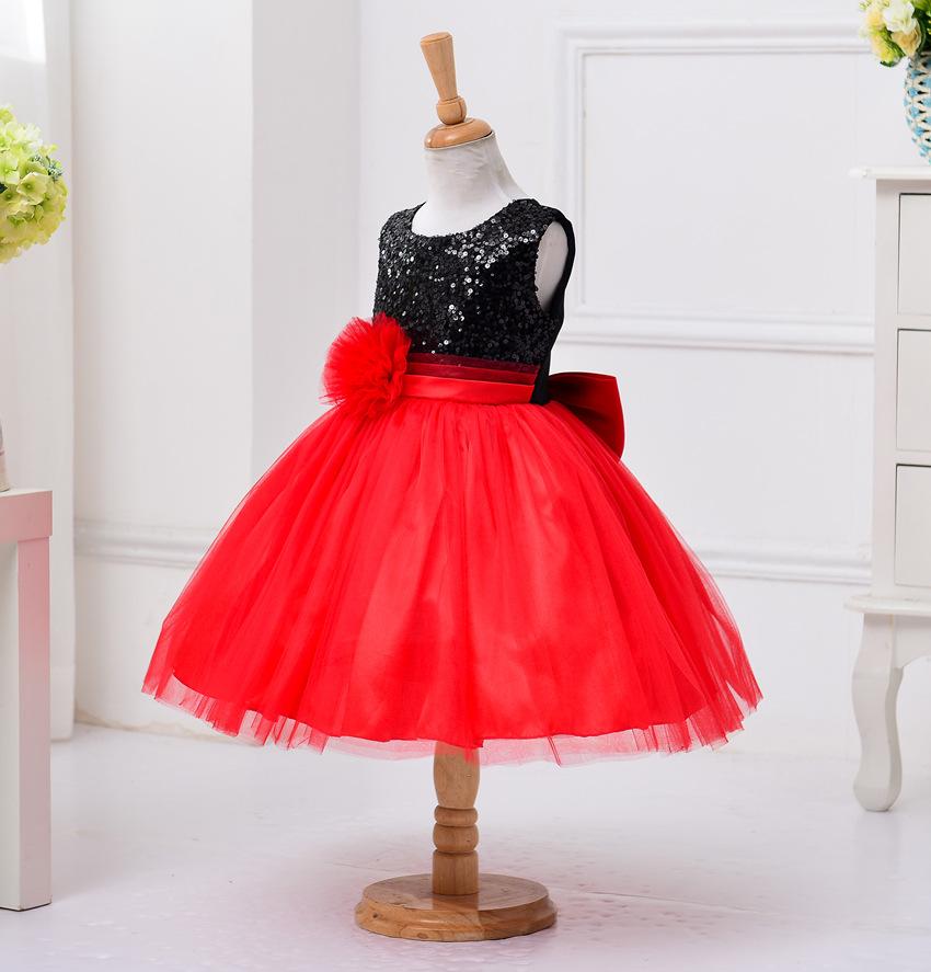 Europeu e americano halloween lantejoulas vestido de princesa saia meninas sem mangas vestido de casamento da menina de flor natal saia vermelha