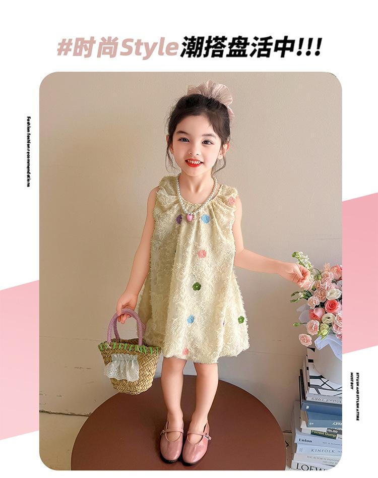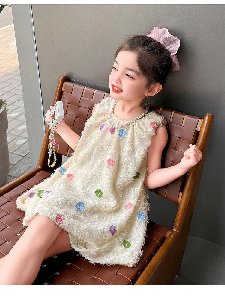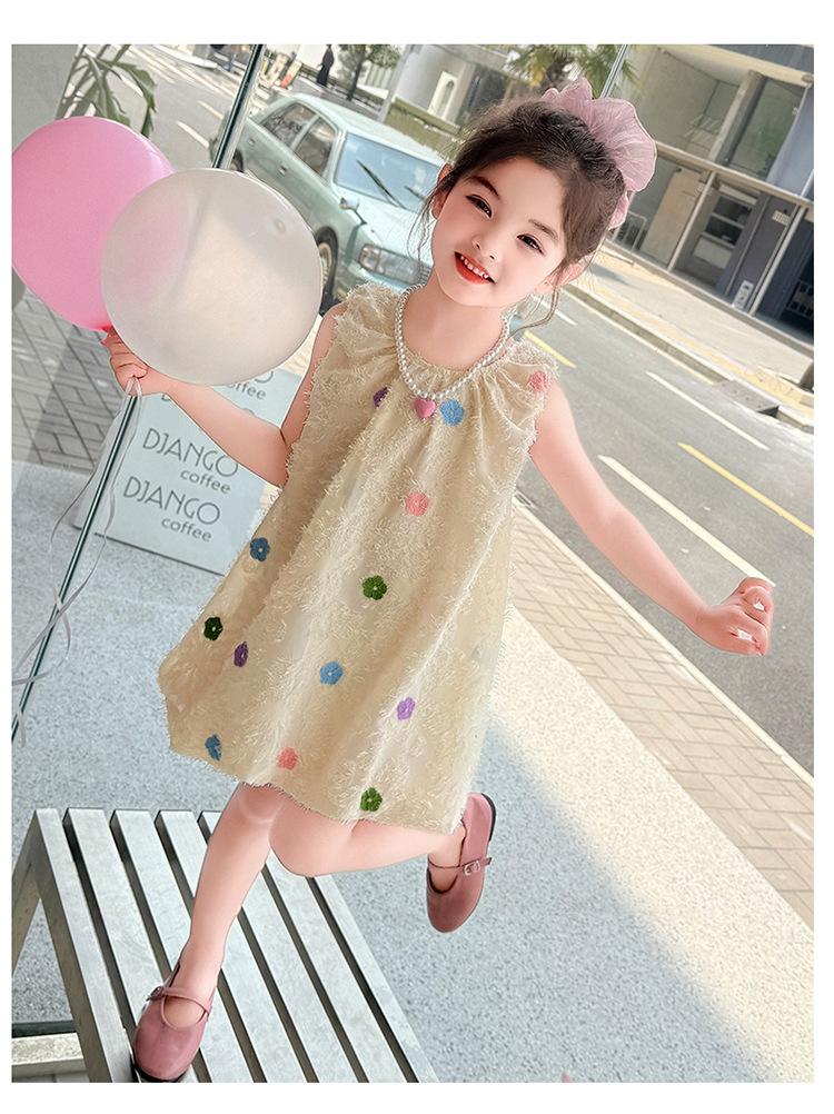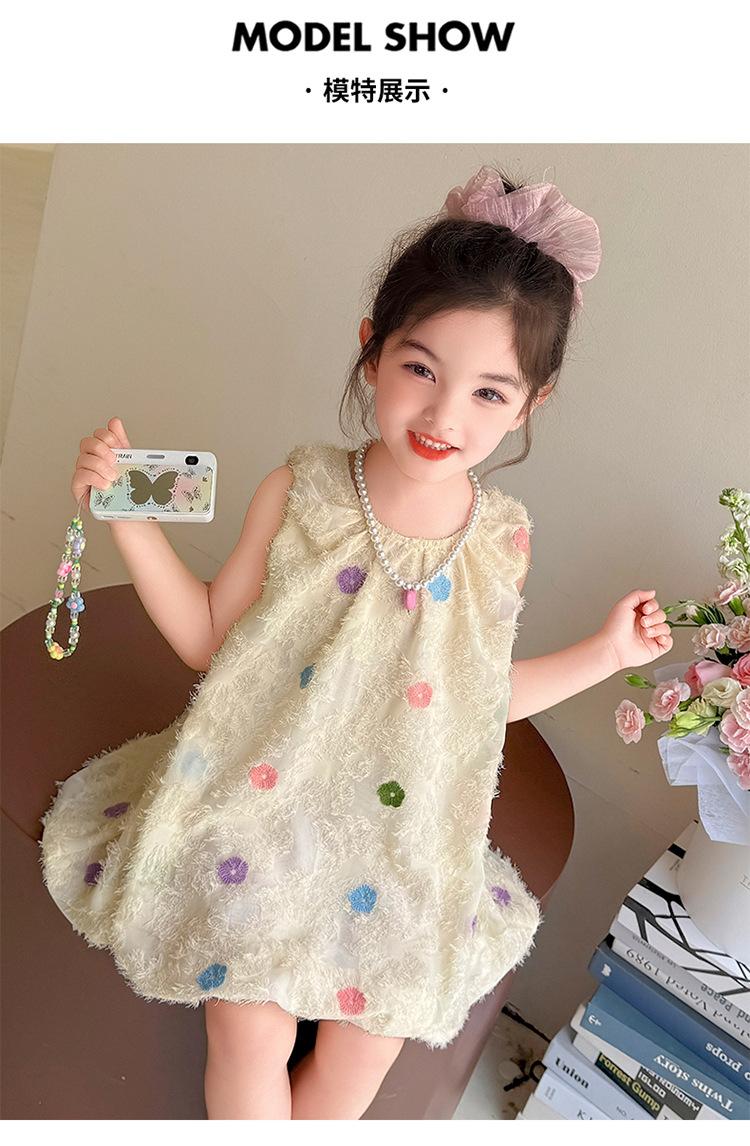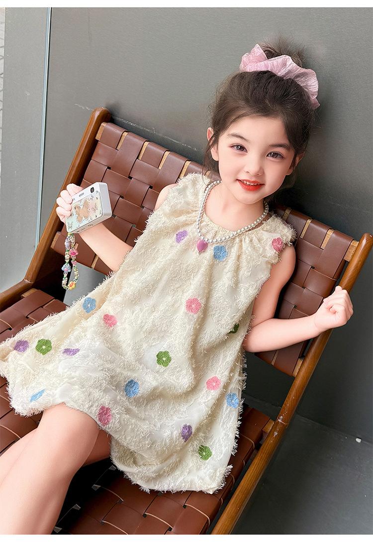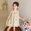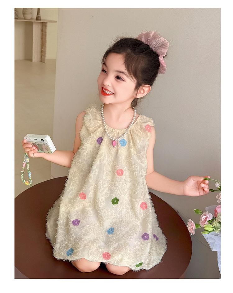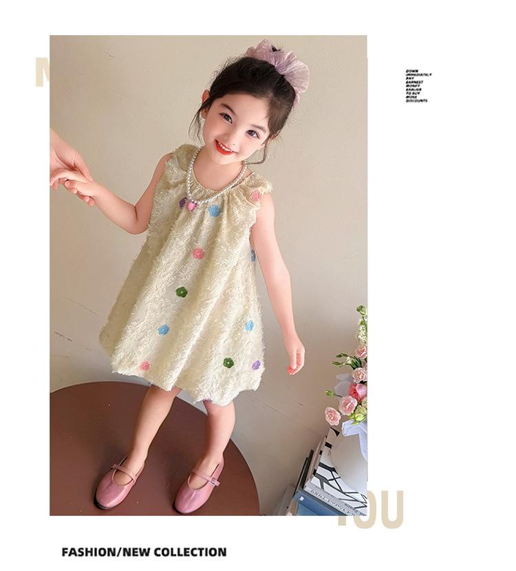 Vestido Colorido de Menina 2025 Verão Nova Moda Vestido de Princesa Estiloso de Menina Vestido de Flor Infantil