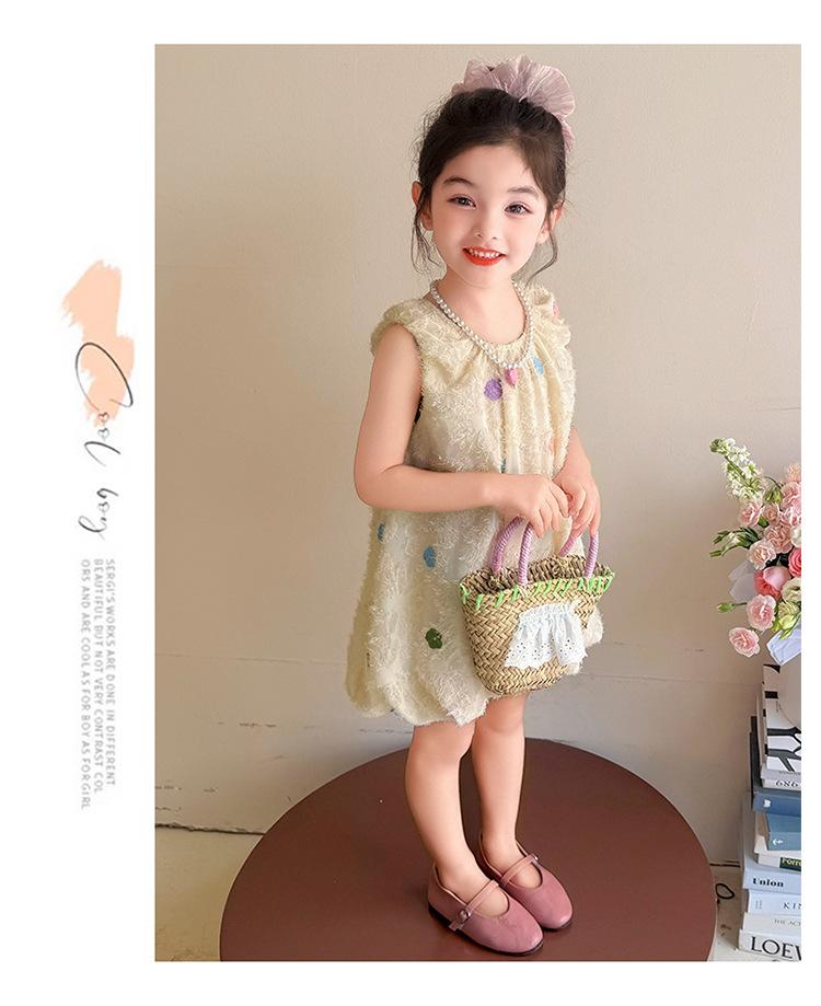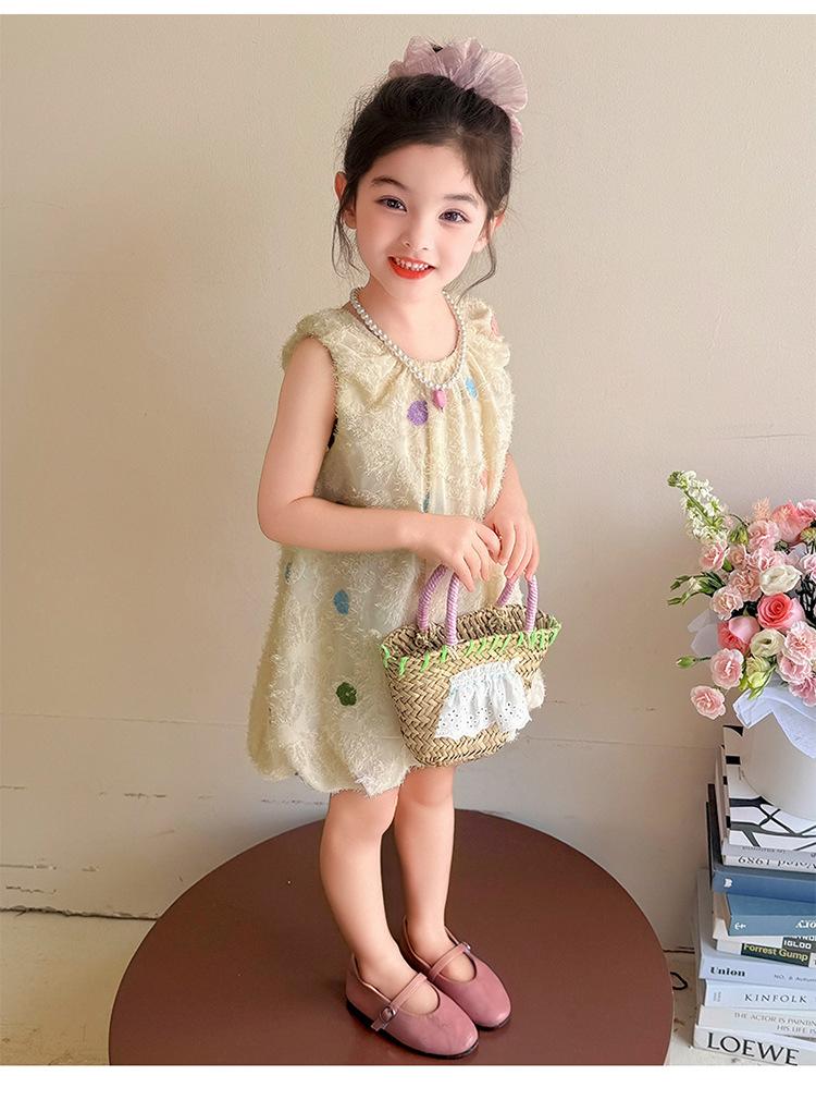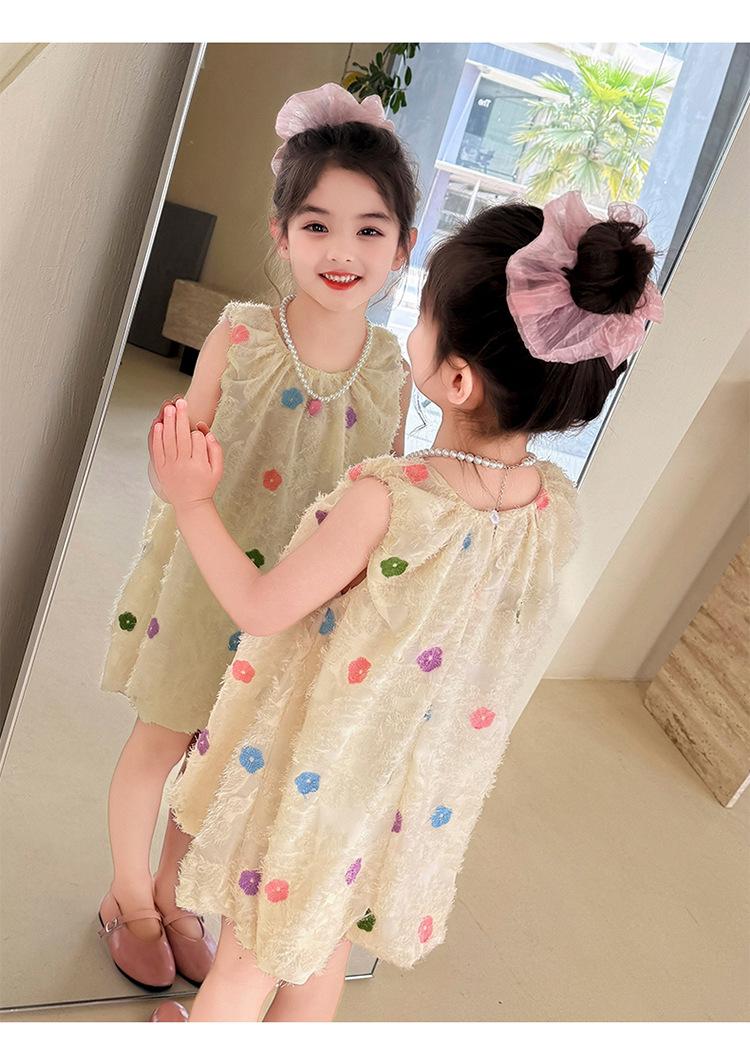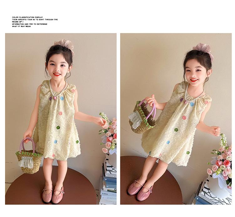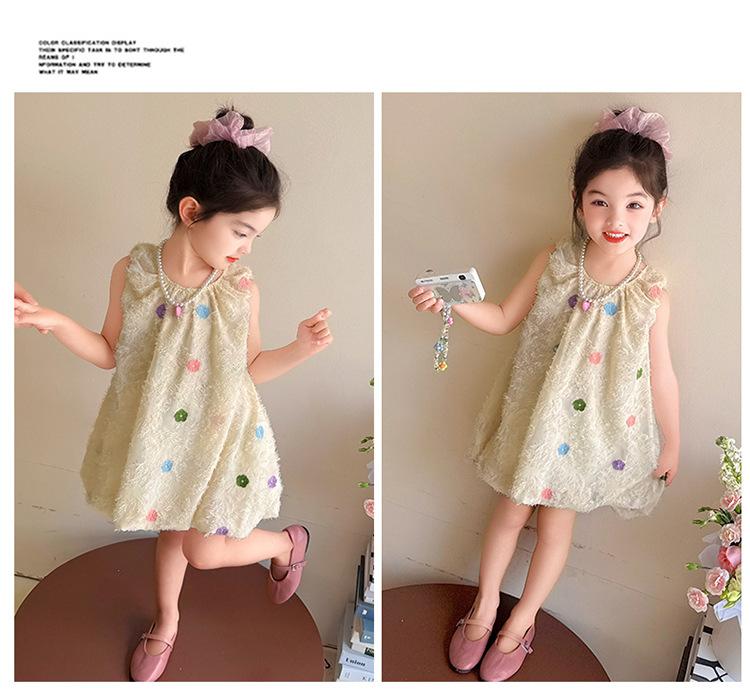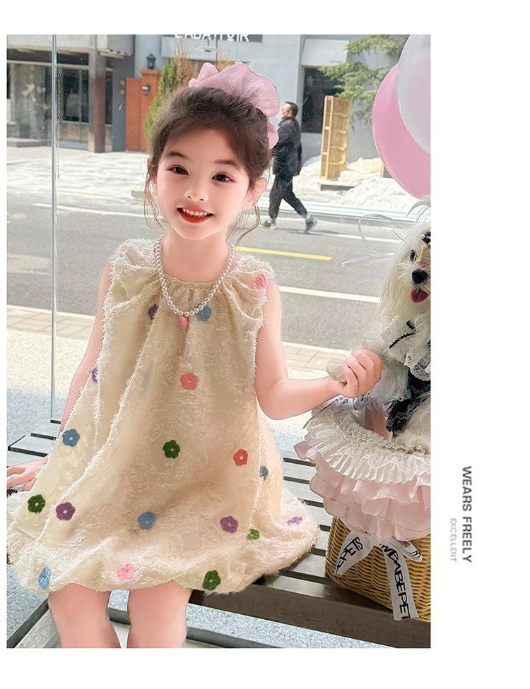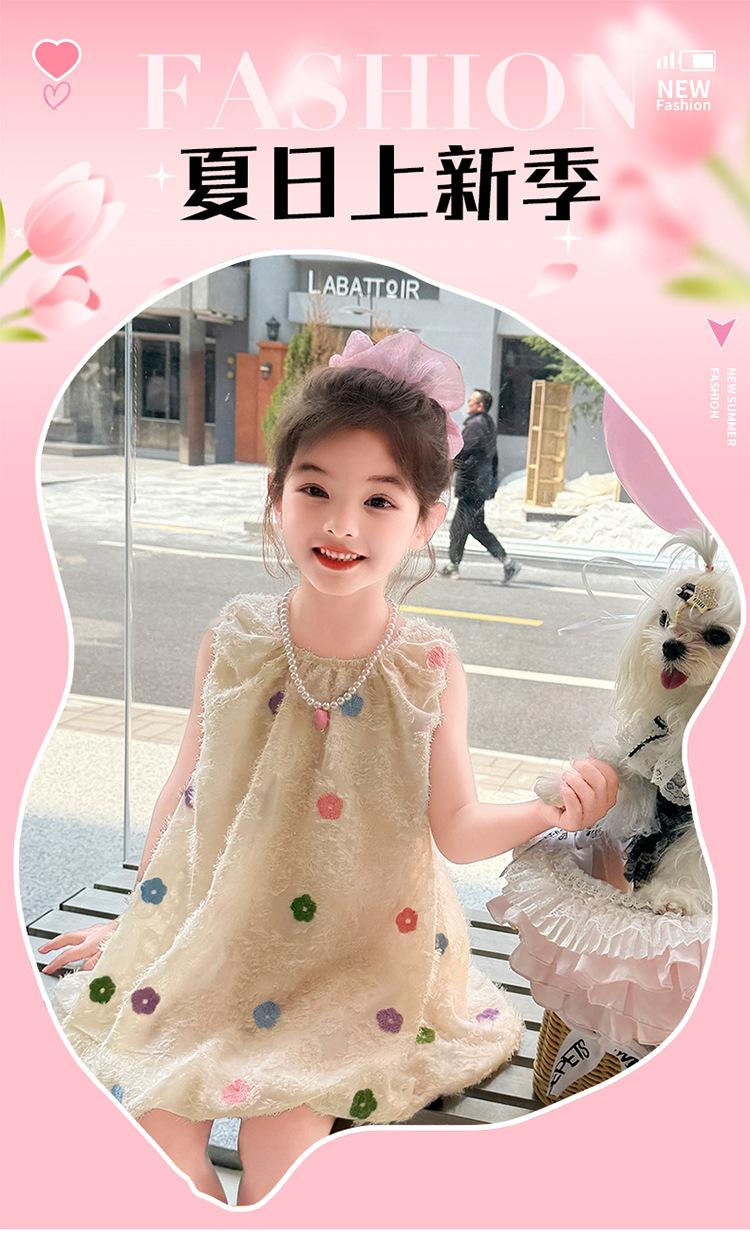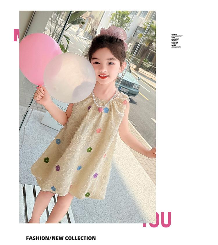 Vestido Colorido de Menina 2025 Verão Nova Moda Vestido de Princesa Estiloso de Menina Vestido de Flor Infantil