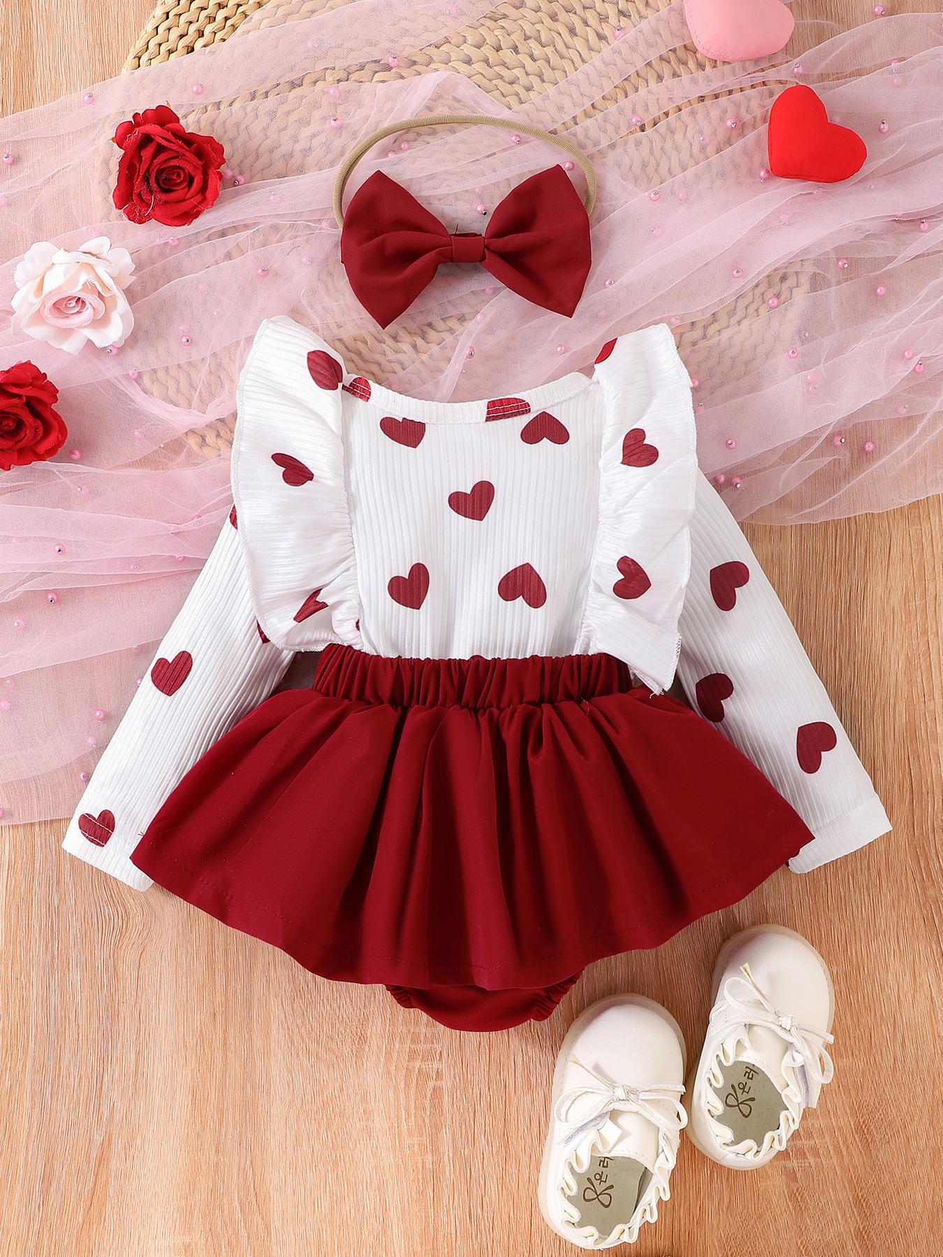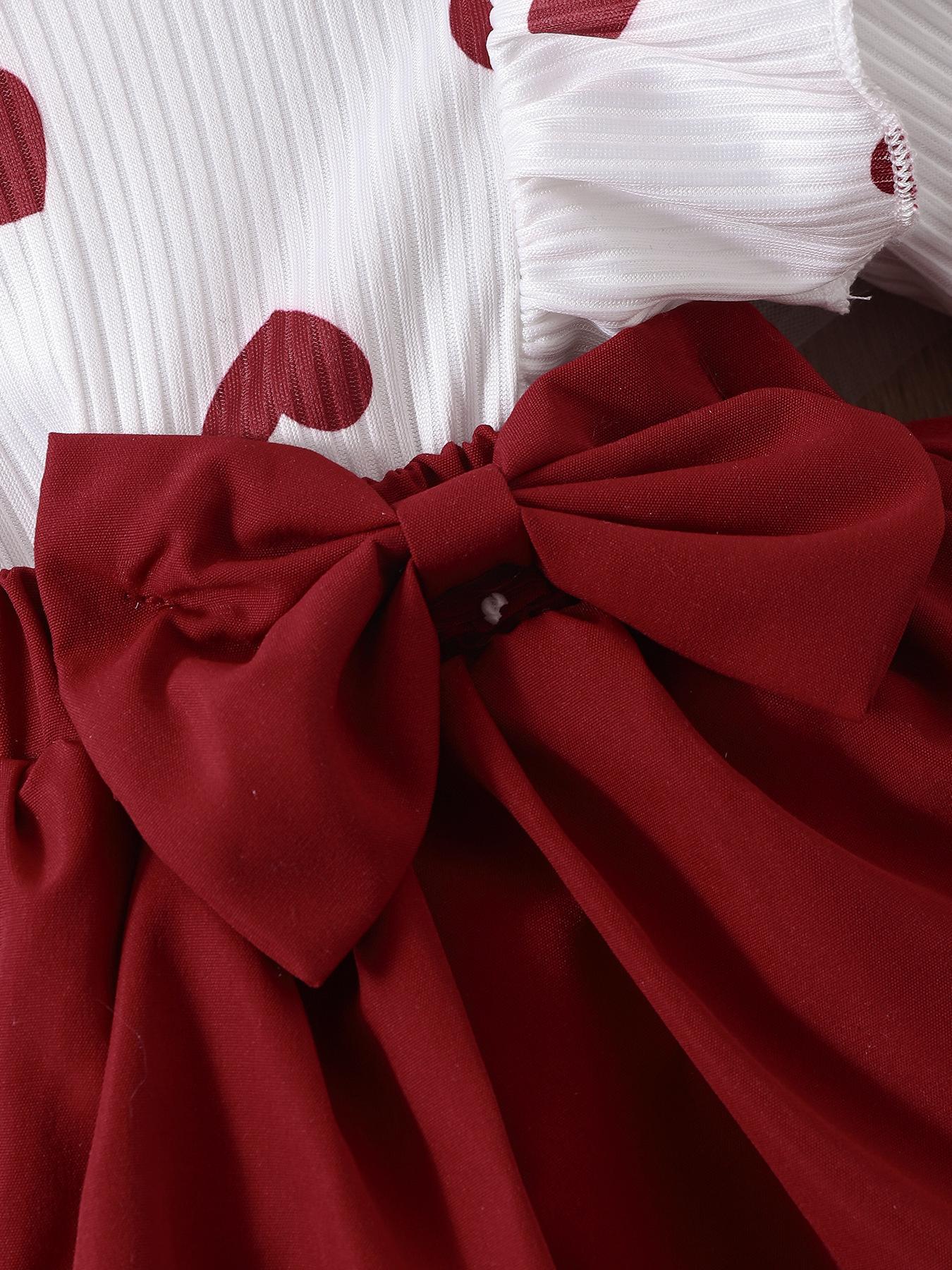 Comércio Exterior Transfronteiriço Vestido de Manga Comprida para Bebê Menina Bebê Infantil Manga Comprida Laço de Amor Saia Primavera & Outono Doce e Fashion