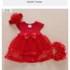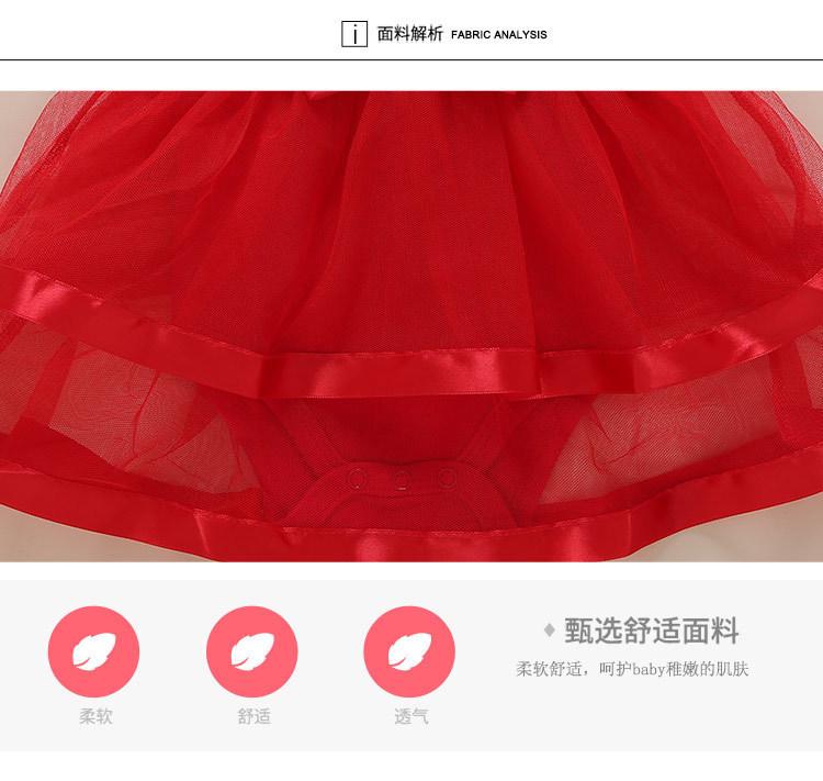 Vestido de Verão para Bebê Menina, Estilo Princesa, Vestido de Lua Cheia para Bebê Menina, Vestido Vermelho para 100 Dias e Um Ano de Idade
